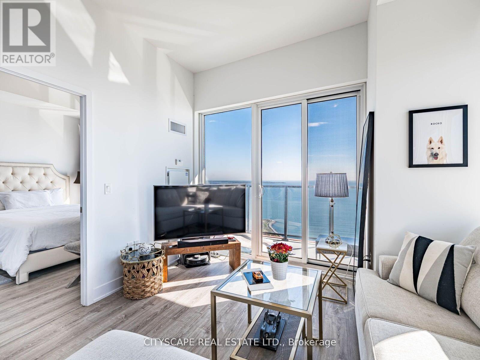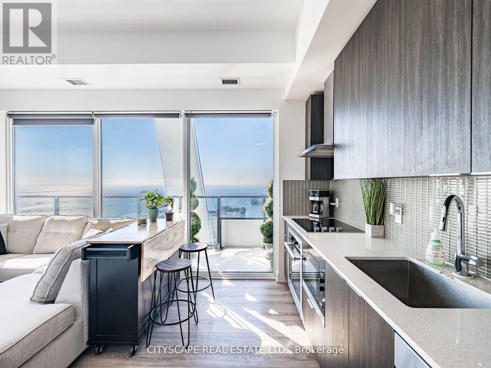 Welcome to Unit 4410 at Eau Du Soleil - a stunning 2 Bed, 2 Bath corner suite with breathtaking views of Lake Ontario, the Toronto Skyline, and CN Tower. Enjoy floor-to-ceiling windows, soaring ceilings, and a bright, open-concept layout designed to maximize natural light and the unmatched vistas. Modern kitchen with sleek finishes and built-in appliances flows into a spacious living/dining area and walk-out to your private balcony in the sky. Primary bedroom features large windows, closet, and a spa-like ensuite.Includes 1 parking, 1 locker, bike storage, a private cigar humidor locker & wine locker - rare and premium extras. Residents on the 44th floor and above enjoy exclusive access to a private party room/sky lounge with even more incredible views.Building offers 5-star amenities: saltwater pool, full gym, yoga studio, rooftop terrace, guest suites, 24-hr concierge & more. Steps to waterfront trails, parks, TTC, and minutes to downtown.Luxury Living Above the Clouds - This View Will Never Be Obstructed! (id:4555)