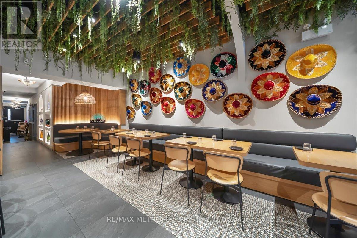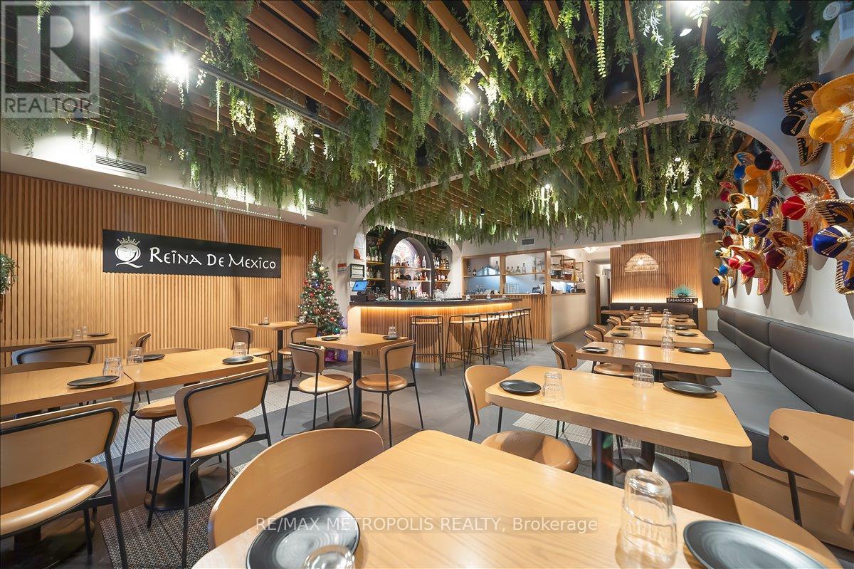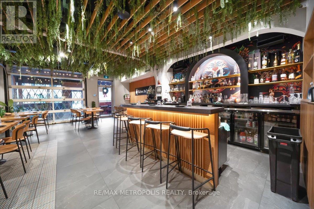 Welcome to Toronto's newest culinary gem! Nestled in the heart of the bustling King Street West and walking distance to BMO Field (Great opportunity as FIFA CUP around the corner ) this vibrant restaurant is now available for sale, offering a rare opportunity to own a thriving business in one of the city's most sought-after locations. Boasting a recent and complete renovation, this establishment exudes modernity and style. Step inside to discover a space meticulously designed with attention to detail, featuring contemporary décor and top-of-the-line equipment throughout. Recognized by esteemed platforms such as Taste Toronto, Blog TO, and Curio City, this restaurant has quickly gained acclaim for its innovative approach to Latin street food. Conveniently situated on King Street West, this locale benefits from high visibility and substantial foottraffic, ensuring a steady stream of patrons throughout the day and into the evening hours. Whether it's locals seeking a memorable dining experience or tourists eager to explore Toronto's culinary scene, this establishment captures the attention of all who pass by. Don't miss your chance to own a piece of Toronto's culinary landscape. Take advantage of this rare opportunity to acquire a thriving restaurant in a prime location. You can start your own concept restaurant as well!! VERY LOW RENT $6893 including TMI and HST. Lease available until year 2030plus option to renew. (id:4555)