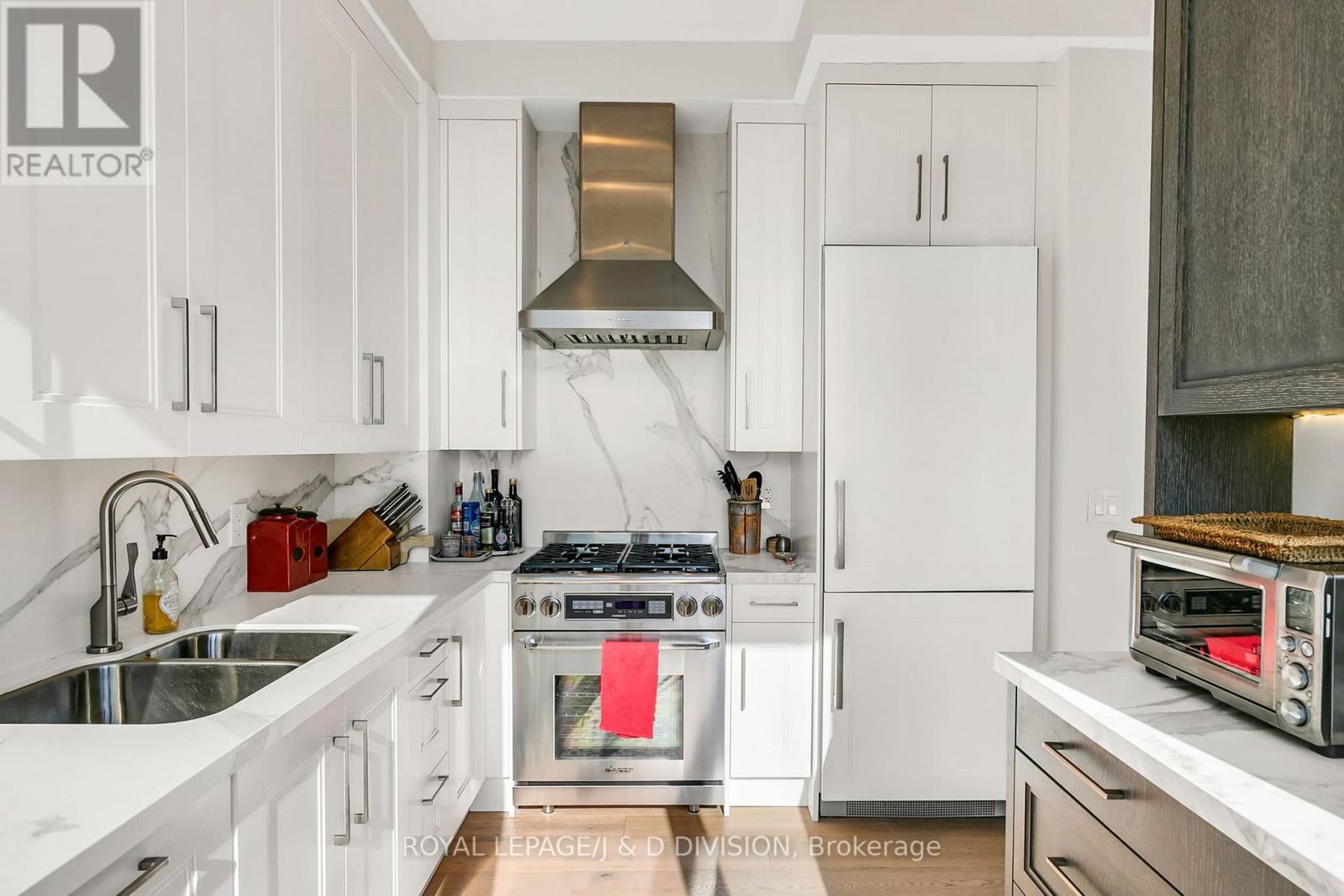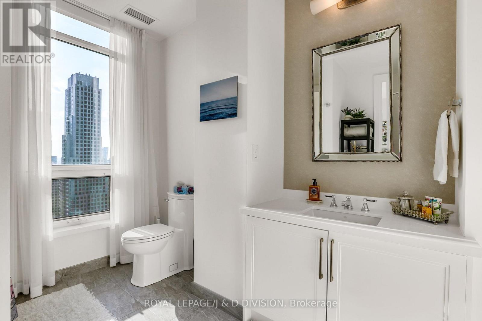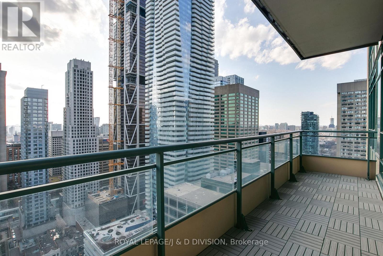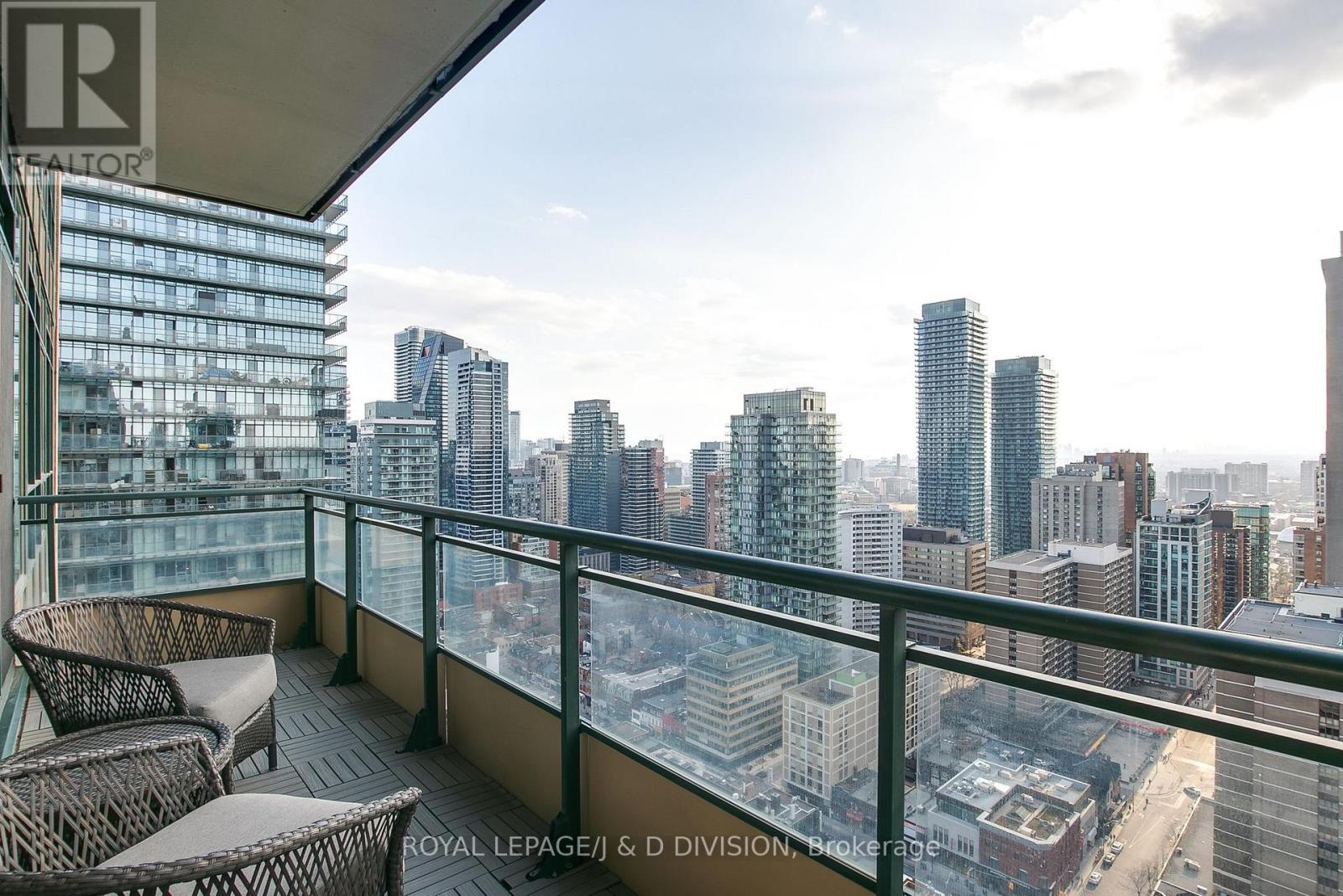Experience the pinnacle of urban luxury in this expansive 1,954 sq. ft. sub-penthouse residence, offering a rare bungalow-in-the-sky lifestyle on the edge of prestigious Yorkville. Shared with only one other suite on the floor, this home spans the entire westerly side of the building, providing a front-row seat to stunning daily sunsets. Bathed in epic natural light from floor-to-ceiling windows and soaring 10-foot ceilings throughout, the interior is finished with stunning wide-plank white oak hardwood and elegant porcelain flooring.The heart of the home is an open-concept living and dining area anchored by a cozy gas fireplace, a custom porcelain-clad waterfall island, and a strategic pantry/bar area with a full-size wine fridge and abundant storage. The chef-inspired kitchen is a standout, featuring custom-designed cabinetry by the renowned Downsview Kitchens, premium appliances, and a gas range. Truly extraordinary for city living, this residence boasts five sets of patio doors leading to a spacious south-facing terrace and two west-facing balconies-totalling 371 sq. ft. of private outdoor space. The main terrace features a rare built-in gas line for BBQs, which are permitted. For added convenience, gas service for the BBQ, fireplace, and cooktop is included in the monthly maintenance fee.Unique to this home are two separate entrances: a formal main entry and a highly functional secondary mudroom with a custom built-in bench. The primary suite is a true retreat featuring a 5-piece spa-like ensuite, four closets, and private balcony access. Includes two-car parking and an owned locker. Residents enjoy premium amenities including a 24-hour concierge, exercise room, pool, a 17th-floor garden, and two available guest suites for visiting family and friends.This dog-friendly building welcomes pets of all shapes and sizes. Steps from the subway, Eataly, and world-class shopping, this is a rare opportunity for refined city living with flexible possession available. (id:4555)