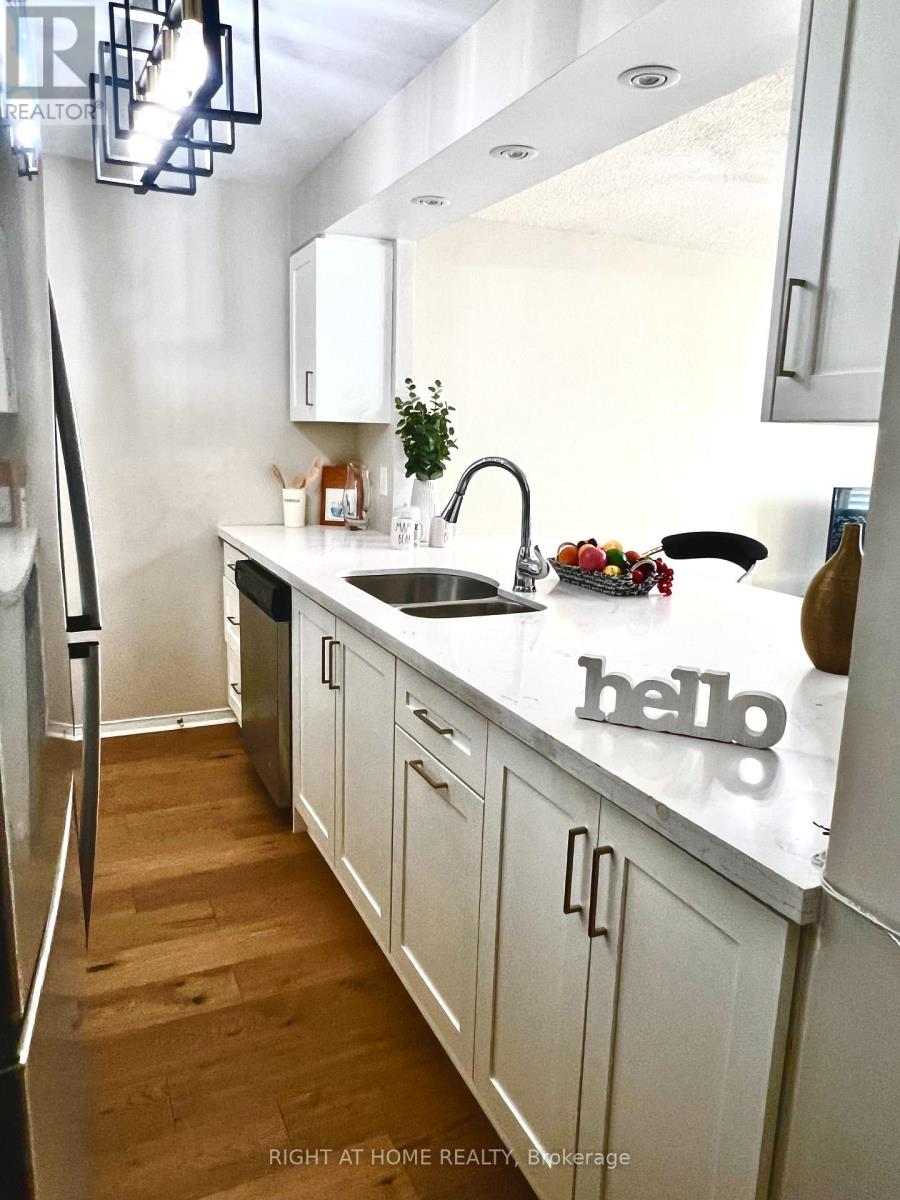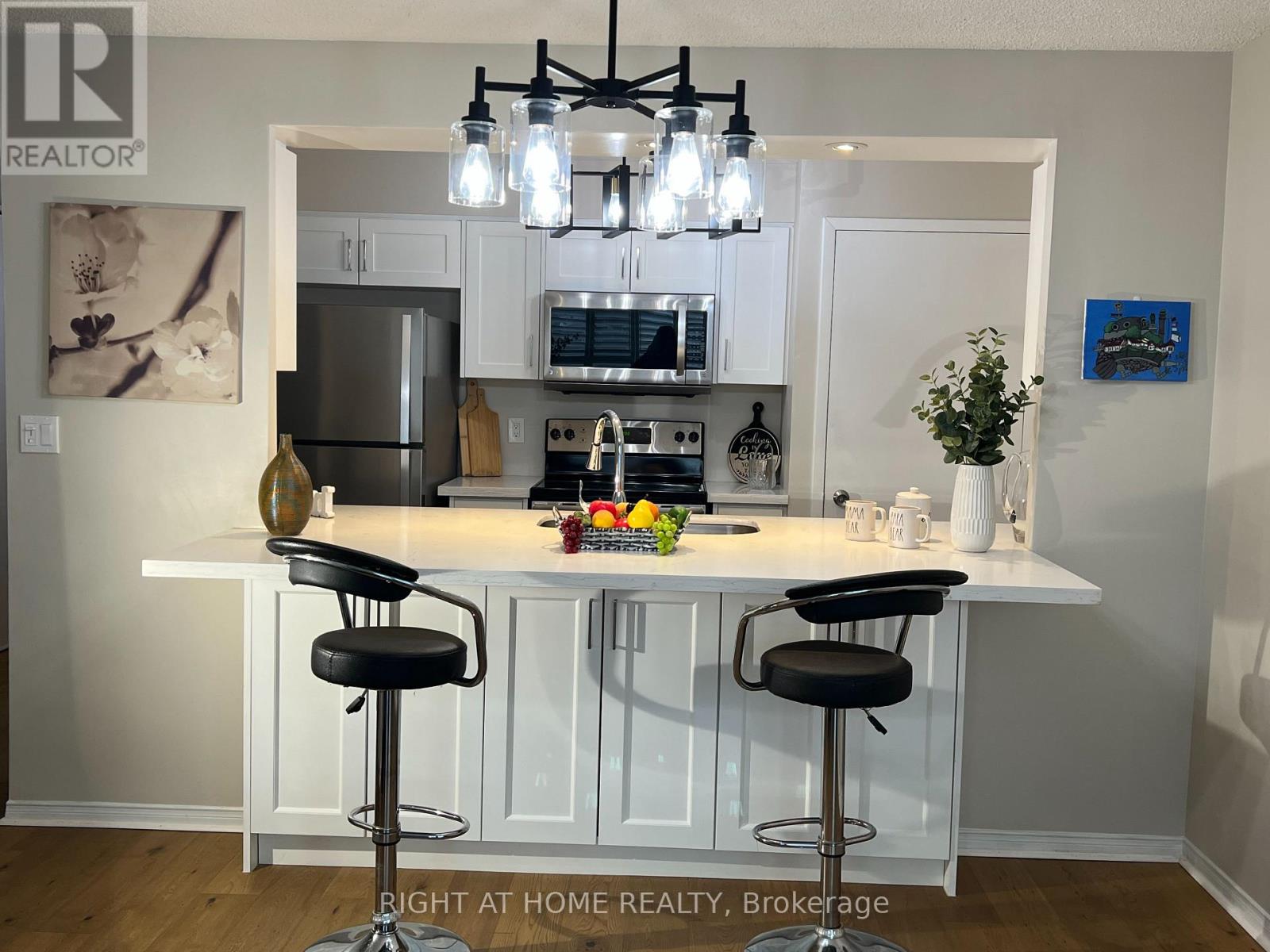 Great condo living near the prestigious Guildwood neighbourhood. Step into 1,100 sq. ft. of bright, renovated condo living in this spacious 2-bedroom, 2-bath suite, with a well-designed open-concept layout. Floor-to-ceiling windows and south-facing, tree-lined views fill the living and dining area with natural light. The modern kitchen features ample cabinetry and functional counter space that is complemented by a new in-suite laundry for turn-key convenience. The condo is a spacious 2 bedroom, 2 bath with recently renovated hardwood floors throughout, stainless steel appliances, and an extra large quartz breakfast bar overlooking the living room. There is a huge ensuite storage room and laundry! The living room features floor to ceiling windows with new coverings to bring in a lot of natural light. The generous primary bedroom easily fits a king-sized bed, includes a large walk through double closet, and a private 3 pc ensuite. The second bedroom is ideal for guests or a home office. The condo includes one owned underground parking space. The furnace was updated in 2025. Perfect for first-time buyers, investors, or downsizers. This building features amenities such as concierge, indoor pool, gym, party room, and games room. The building also has plenty of visitor parking. Walking distance to the TTC and GO train. Close to the hospital, parks, Scarborough Golf & Country Club, Scarborough Bluffs, schools, and shopping. Ideally located minutes from Guildwood GO Station, Lake Ontario, trails, transit, shopping, and everyday amenities. This is a must-see opportunity. (id:4555)