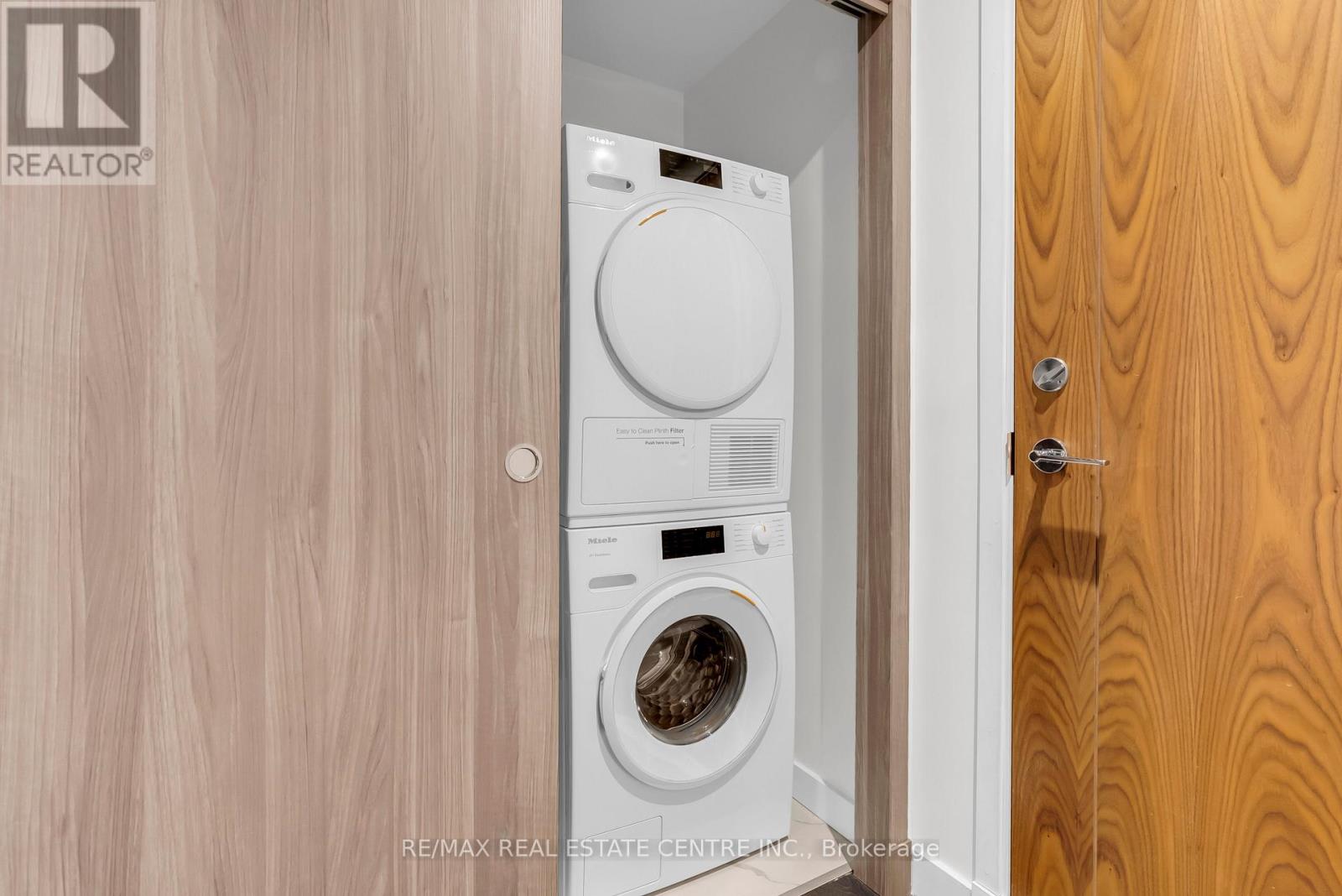 Exquisite and stunning 988 sq. ft. 'Saison' condominium featuring 2+1 bedrooms and 3 modern full bathrooms. **The den is generously sized and can easily serve as a third bedroom or home office** Enjoy 9 ft. ceilings and expansive floor-to-ceiling windows that fill the space with natural light. The modern kitchen is equipped with premium Miele built-in refrigerator, Miele Built-in electric stove, Panasonic Built-in microwave, and in-suite Miele washer and dryer. Residents have privilege to access an exceptional array of ***world class amenities*** including a multi-lane indoor swimming pool, kids' splash pool, sauna, whirlpool, hot stone lounges, and a fully equipped fitness center. Sports and recreation options abound with basketball/badminton, tennis court, indoor bowling, and a golf putting green. Relax and entertain in elegant spaces such as the billiards lounge, piano lounge, wine tasting room, formal banquet hall, tea room, and BBQ patio, or unwind in the beautifully landscaped English garden. Additional conveniences include a yoga studio, large bike storage, dog wash station, car wash, and 24-hour concierge service. Perfectly located just steps from Bessarion and Leslie subway stations, and state-of the art Ethennonnhawahstihnen' Community Recreation Centre, the Toronto Public Library, North York General Hospital, IKEA, major highways (401 & 404), grocery stores, restaurants, Fairview Mall and much more. A rare opportunity to enjoy luxury, space, and convenience in one exceptional home. Primary bedroom features double closets and 4 pc ensuite upgraded bathroom. There are two more fully upgraded 4pc. bathrooms for the other households. Ensuite Miele laundry. Ample of visitor parking at P1. The unit comes with one u/g parking at P3, and one owned locker. The living room has a walk out to an open balcony. **priced for quick sale** STATUS CERTIFICATE ALREADY IN HAND. (id:4555)
