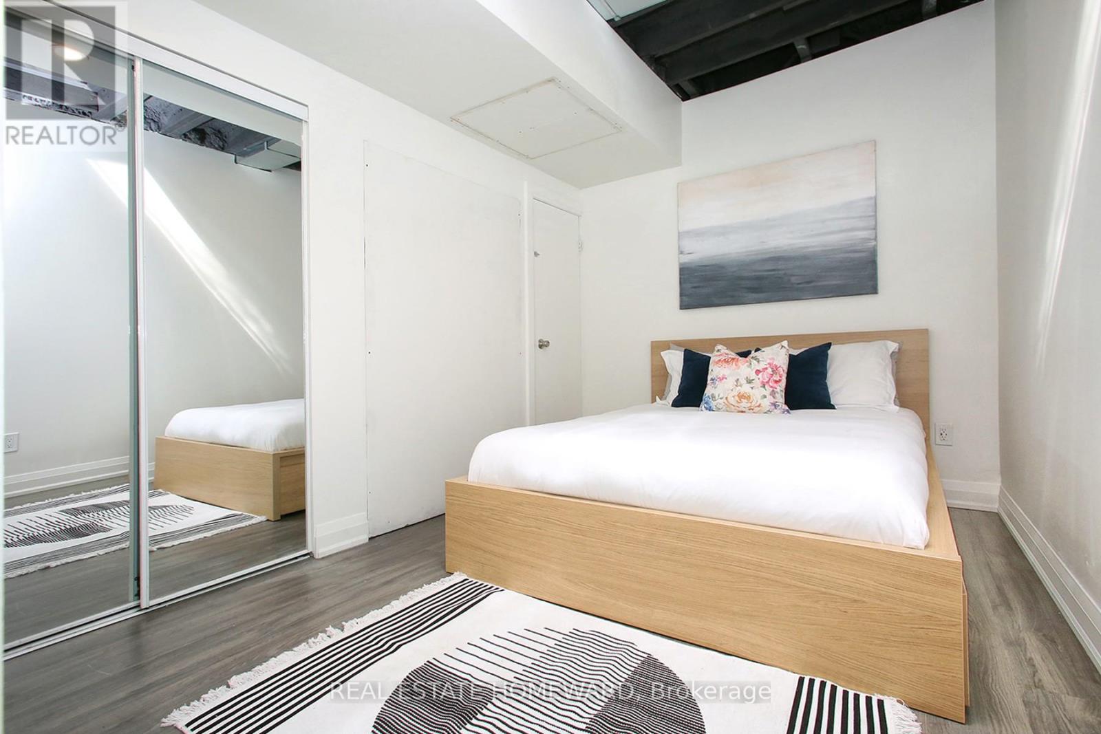 Rare Leslieville Loft-Style Bungalow | Ground Level | Parking | Rooftop Deck. FULLY FURNISHED (availalbe for short or long term. 1 month to 1 year+). A truly one-of-a-kind offering in the heart of Leslieville-this loft-inspired, ground-level bungalow blends industrial character with effortless living. No stairs. No neighbours above or below. Just your own private, light-filled urban retreat. Showcasing striking exposed brick, soaring beam ceilings, visible ductwork, and architectural I-beam details, this home delivers authentic loft vibes with the comfort of a bungalow layout. Skylights flood the space with natural light, enhancing the open-concept design and highlighting every curated detail.The versatile exposed brick feature bar offers the perfect flex space-ideal as a home office, entertaining hub, or creative studio. Both bedrooms are thoughtfully designed with queen beds and generous storage, while the seamless layout maximizes both function and flow. Step outside and enjoy your private rooftop deck-a rare extension of living space perfect for lounging, entertaining, or unwinding above the city. Located just steps to Dundas & Carlaw, you're surrounded by Leslieville's best cafés, boutiques, and restaurants-urban living at its finest. Features Include: Ground-level living - no stairs No neighbours above or below Private rooftop deck Exposed brick, beams, and industrial details Skylights with abundant natural light Open-concept layout with flexible living spaces In-suite laundry 1 assigned parking space. Fully Furnished & Turnkey: Includes all furnishings, linens, kitchenware, and more. All Utilities Included: Heat, A/C, Hydro, Water & High-Speed Internet. A rare opportunity to live in a true Leslieville loft with bungalow ease-this is not your typical rental. (id:4555)