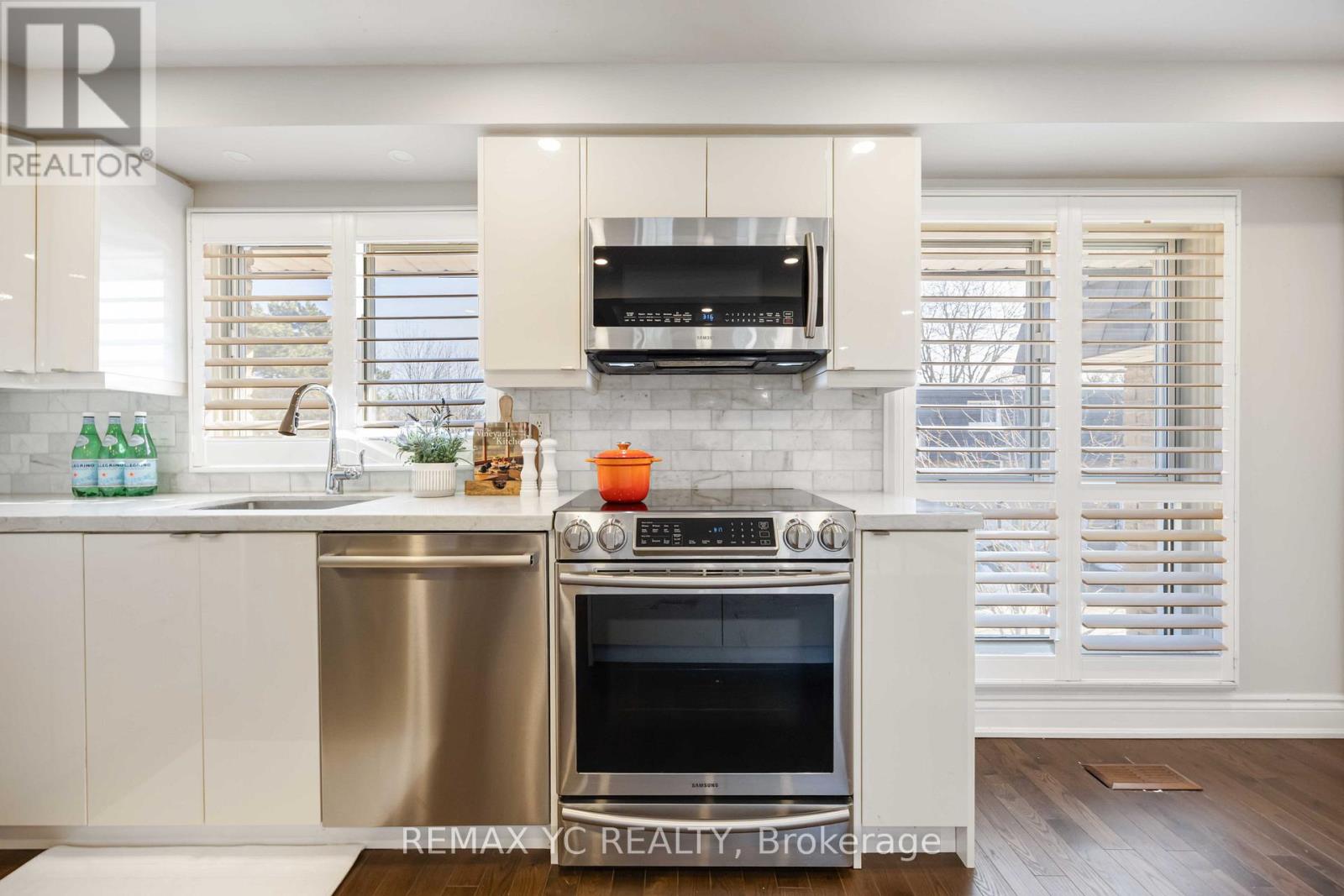 A rare opportunity to own one of the best end-unit townhomes in the complex. Fully renovated with refined finishesthroughout and freshly painted throughout, this home oers the perfect balance of style, comfort and functionality. The kitchen is designedfor both everyday living and entertaining, seamlessly flowing into the dining area and overlooking a rare, open backyard framed by maturetrees. The unobstructed view and added privacy truly set this home apart. The living room impresses with soaring ceilings and a customfeature wall complete with a sleek electric fireplace, built-in shelving and integrated TV space. Spacious layout. Thoughtful upgrades.Exceptional value. Ideally located close to highways, shopping, schools, parks and all major amenities. Move-in ready and exceptionally wellcared for. A standout opportunity within the community. (id:4555)