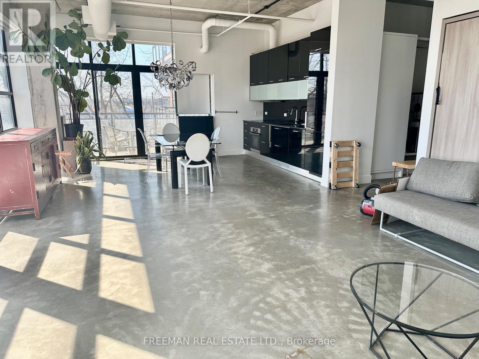 Step into this iconic Broadview loft, originally the historic Rexall warehouse from the turn of the century, where character meets contemporary comfort. This all-inclusive, fully furnished 820 sq. ft. suite offers effortless living with parking and in-unit laundry included. Bathed in natural light, the open-concept space features soaring 10-foot ceilings and sleek polished concrete floors throughout. A cleverly designed Murphy bed folds away to reveal a comfortable sofa, maximizing both space and functionality. The stylish Scavolini kitchen is equipped with granite countertops and stainless steel appliances-perfect for cooking and entertaining. Enjoy meals at a full-sized dining area or step out onto your private southeast- facing balcony for a breath of fresh air. Designed with both function and comfort in mind, the loft offers expansive wall-to-wall closets with built-in organizers, providing exceptional storage. The newly renovated bathroom features a spacious walk-in shower and modern finishes. Additional highlights include remote-controlled window coverings with both light-filtering and blackout options for ultimate convenience and privacy. Residents also enjoy access to a stunning rooftop lounge complete with BBQs-ideal for relaxing or hosting guests. (id:4555)