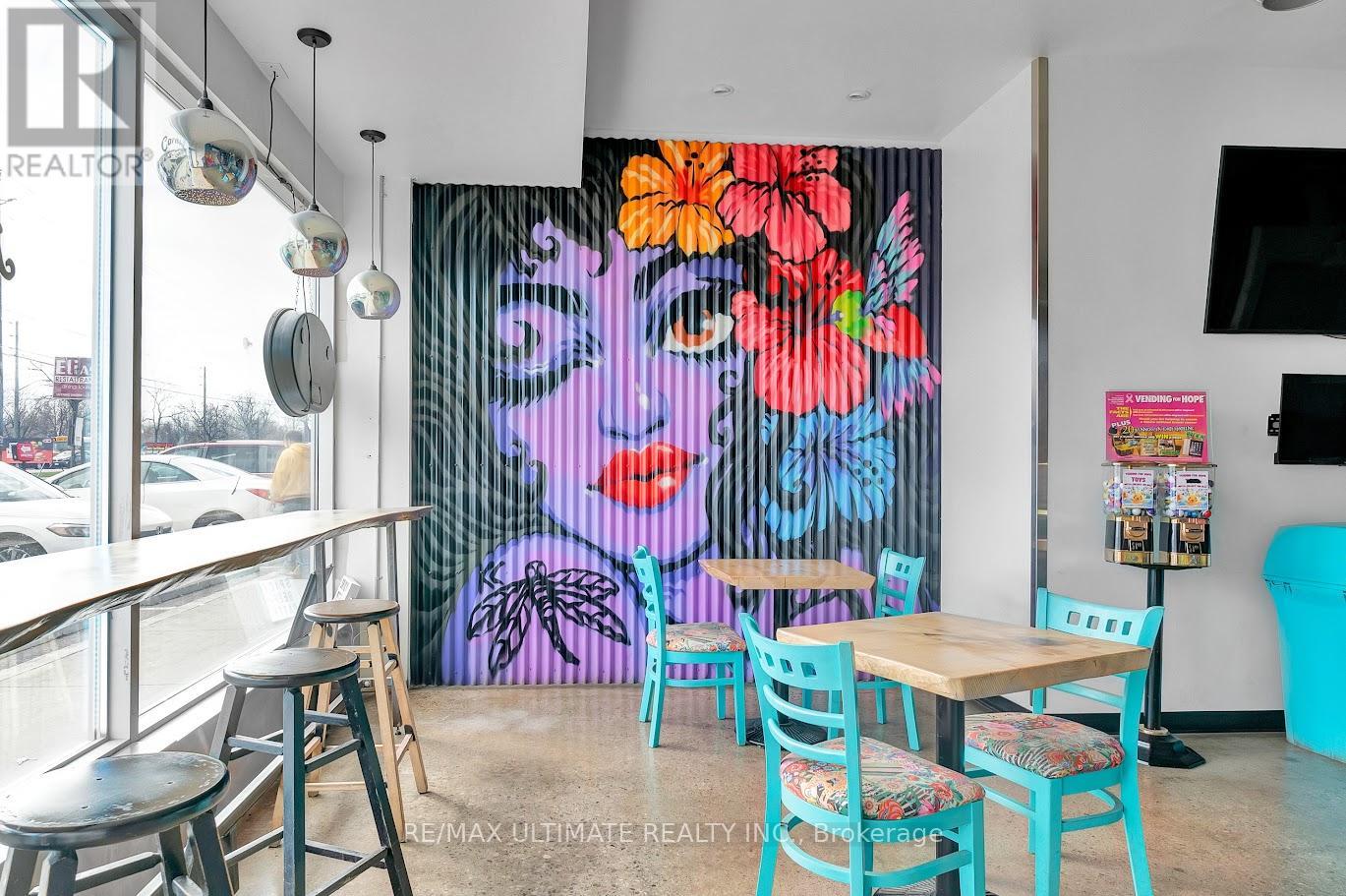 Excellent opportunity to own a fully operational restaurant in one of the area's busiest andmost desirable plazas. This well-established location offers tremendous foot traffic,consistent visibility, and high potential for growth - perfect for a new owner, investor, orentrepreneur ready to step into!Basement can be used as manufacturing/food processing area. Completely renovated, new ventingsystem , 200 amp system, fully air conditioned, custom lights, physically handicapped equippedwashroom, artwork, LOW RENT for the area and so much more! (id:4555)