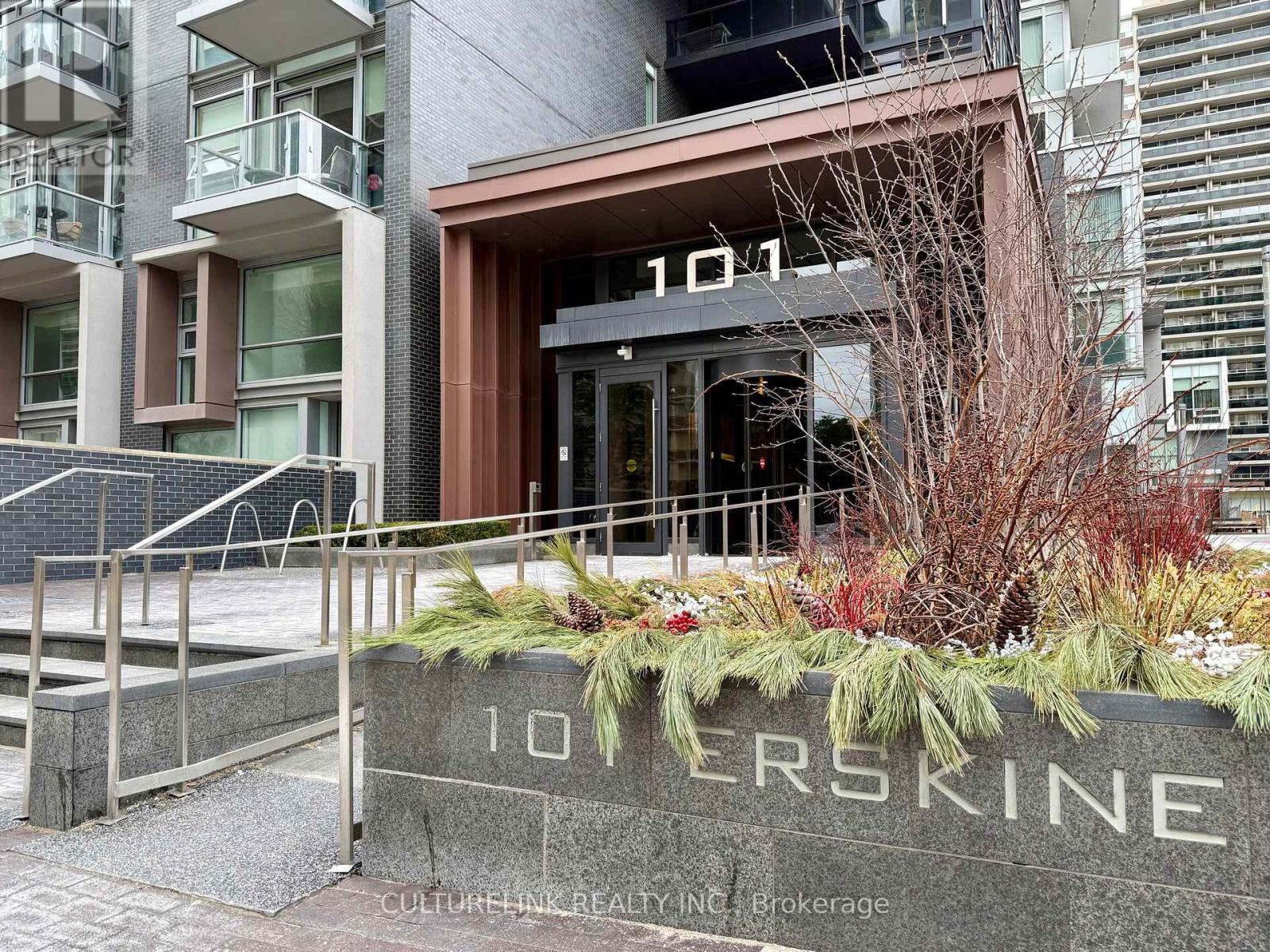 Luxurious Tridel-built condo at Yonge & Eglinton - "101 Erskine." This bright and spacious 1-bedroom plus den suite offers an ideal blend of comfort and style, featuring large windows that fill the space with natural light, soaring 9-ft ceilings, and sleek laminate flooring throughout. The thoughtfully designed layout includes a den and a modern kitchen with quality finishes, seamlessly flowing into the open-concept living area. Step out onto your private balcony to enjoy fresh air and city views. Perfectly situated just steps to Eglinton subway station, as well as an array of restaurants, cafes, banks, and shops, tis location offers unmatched convenience in one of Toronto's most vibrant neighbourhoods. Residents enjoy access to premium building amenities, including an outdoor pool - ideal for the upcoming summer season - an equipped fitness room, theatre room, and ample visitor parking. ONE (1) parking space is included, making this an exceptional opportunity for comfortable urban living. (id:4555)