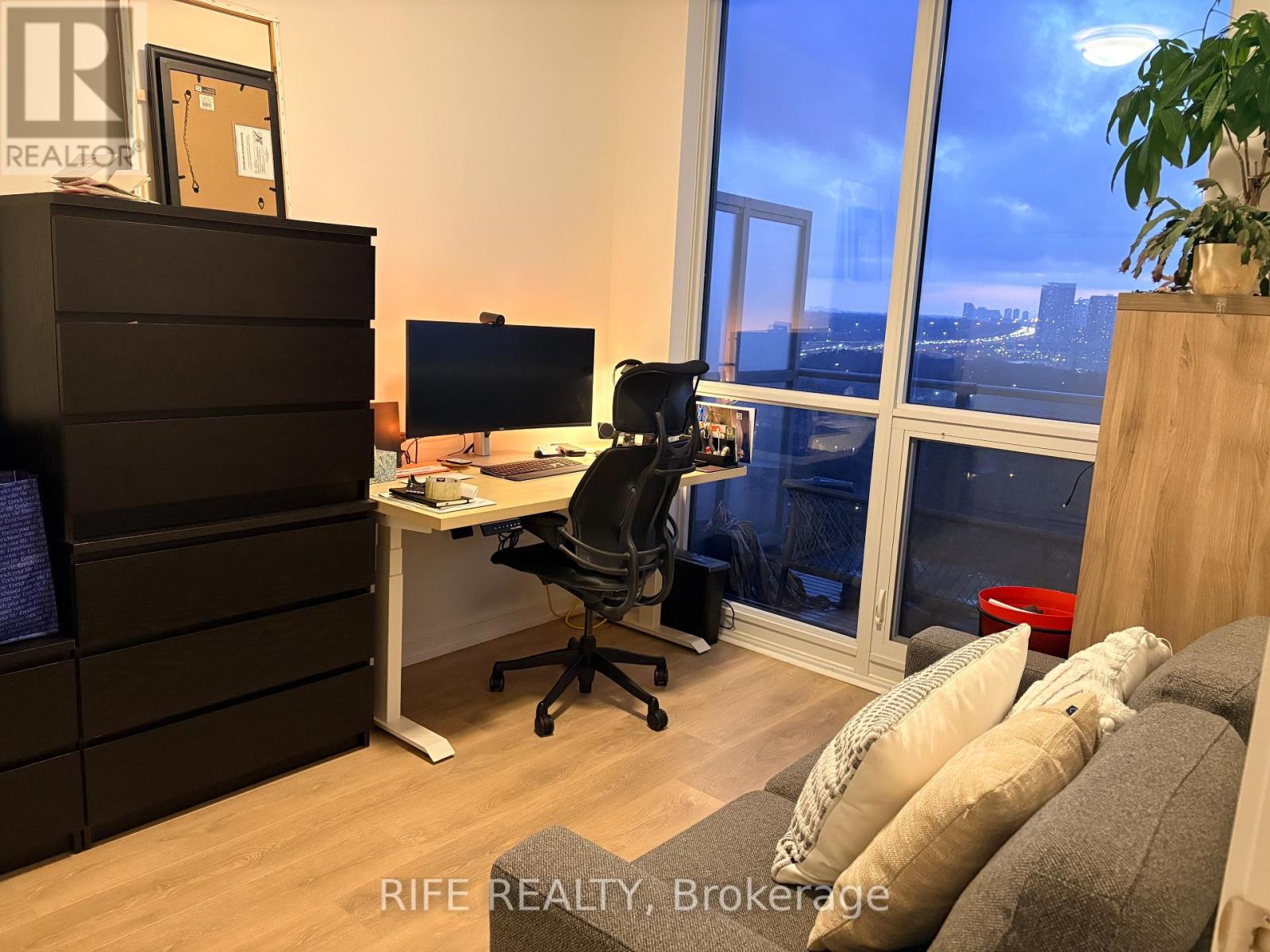 Enjoy a Penthouse-Like Living Experience! This spacious 1 Bed + Den, 2 Washroom unit comes with 1 Parking and 1 Locker, featuring 9' ceilings and a modern open-concept kitchen.Located on a top floor with no unit above, this home offers a quiet, penthouse-like living experience. The den is exceptionally large, complete with a door, and can easily function as a second bedroom. Enjoy unobstructed views with no buildings blocking your sight-perfect for taking in beautiful daily sunsets right from your home.For added convenience, both the parking space and locker are located close to the elevator. Although the parking is registered as P4, it is actually just one level down, offering easy and quick access.Prime location just steps to the subway station, Fairview Mall, parks, and community centre. Close to Hwy 404 & 401, restaurants, supermarkets, and schools. Building amenities include 24-hour concierge, indoor swimming pool, party room, fitness centre, and more. (id:4555)