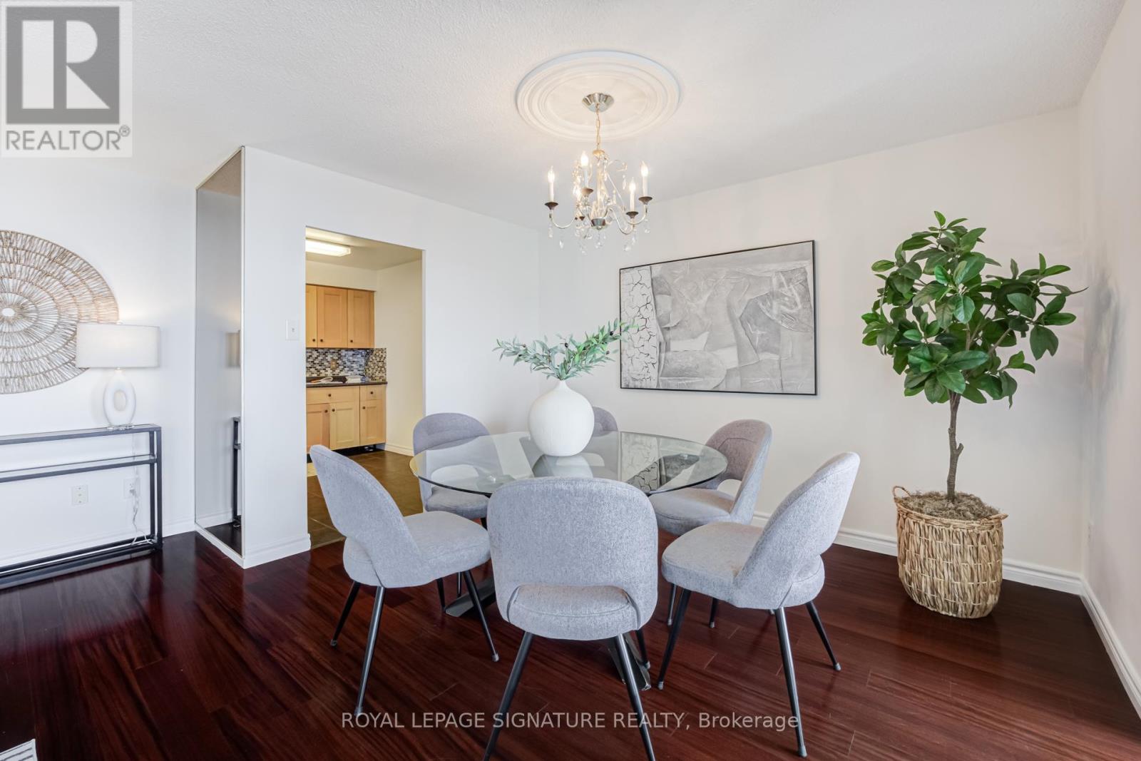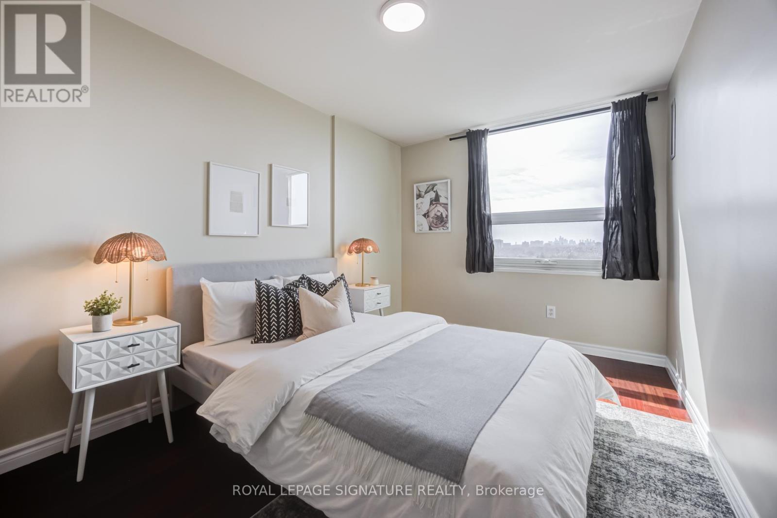 Spacious and well-maintained 3-bedroom plus den, 2-bathroom suite in a sought-after Etobicoke community! This bright, west-facing unit features a sunny private balcony and a functional layout with separate living and dining rooms, perfect for entertaining or comfortable family living. The eat-in kitchen offers plenty of space for everyday meals, while the versatile den can serve as a home office, playroom, or guest space. Recent updates include A/C and heating units installed in June 2025, two renovated bathrooms, and a large in-suite laundry room with ample storage. Maintenance fees include many utilities and cable, adding exceptional value. This family-friendly, secure building features cameras in every corridor for added peace of mind. The unit also includes a parking space and a 4 x 10 ft locker, conveniently located on the same parking level and close to the elevator. Residents enjoy outstanding amenities, including indoor and seasonal outdoor pools, a large gym with cardio, weight and yoga rooms, newly renovated private tennis and basketball courts (key access only), a private park with gazebo and BBQs, an off-leash dog park, and a seasonal community garden where residents can grow fruits and vegetables. Conveniently located close to parks, shopping, transit, and major highways, this home offers the perfect balance of space, lifestyle, and location. (id:4555)