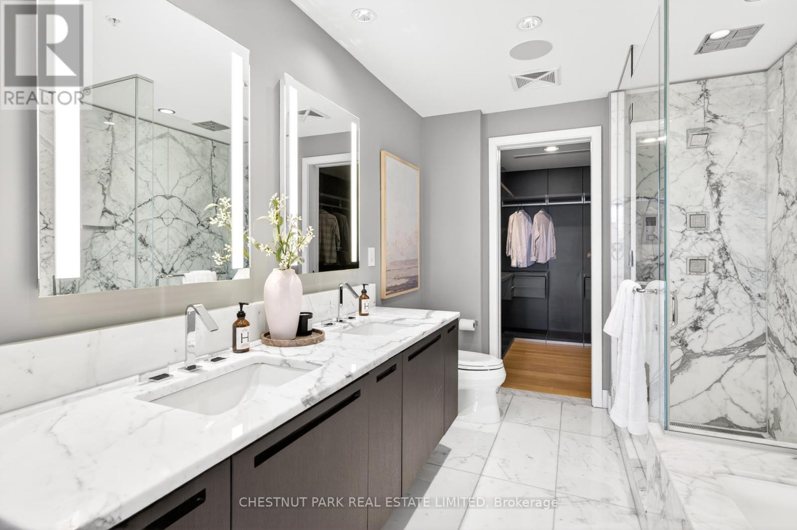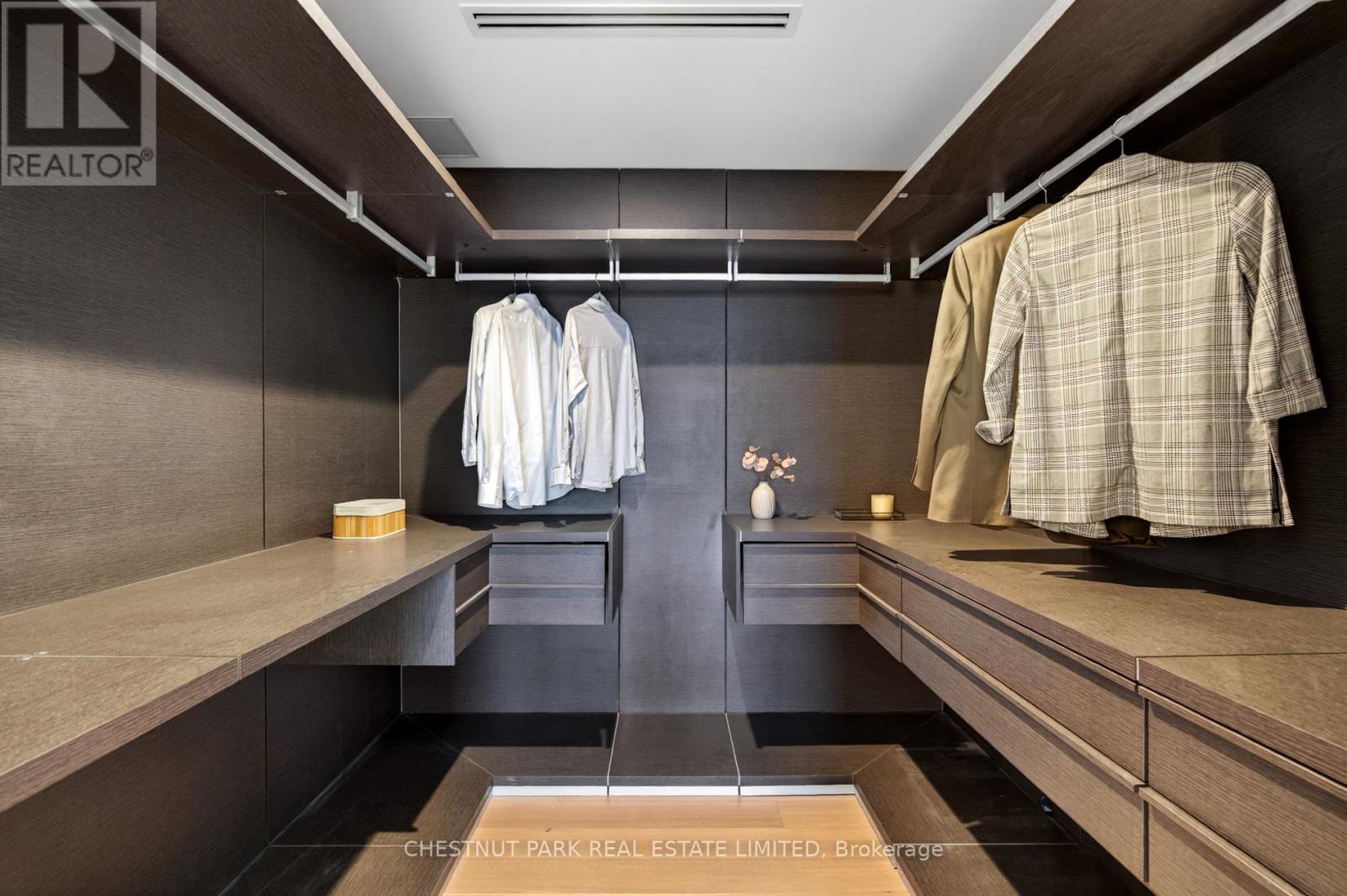 Situated above the iconic Shangri-La Toronto, this exceptional corner suite offers nearly 1,800 square feet of refined living with two bedrooms, a private den, and breathtaking north-facing views. Floor-to-ceiling wraparound windows frame unobstructed views up University Avenue, over Osgoode Hall, and all the way to Queen's Park. The open-concept living and dining areas connect seamlessly to the Boffi-designed kitchen, complete with Miele and Sub-Zero appliances, excellent storage and ample room to entertain.The primary bedroom features stunning city views, a large walk-in closet, and a five-piece marble-clad ensuite with a deep soaker tub, Kohler DTV shower, and dual vanities. The second bedroom offers double closets and its own private three-piece ensuite. A separate den provides flexibility for a home office, media room, or potential third bedroom. The suite also features a large balcony taking in the city views. Included with the suite is one parking with EV charging and a large locker. Residents enjoy access to Shangri-La's exceptional amenities, including 24-hour concierge, valet parking (pay per use), a 24-hour fitness centre, indoor pool, hot tub, sauna, steam rooms, Bosk Restaurant, and The Lobby Lounge. Moments from the Financial District, King West, and Toronto's best dining and entertainment. (id:4555)