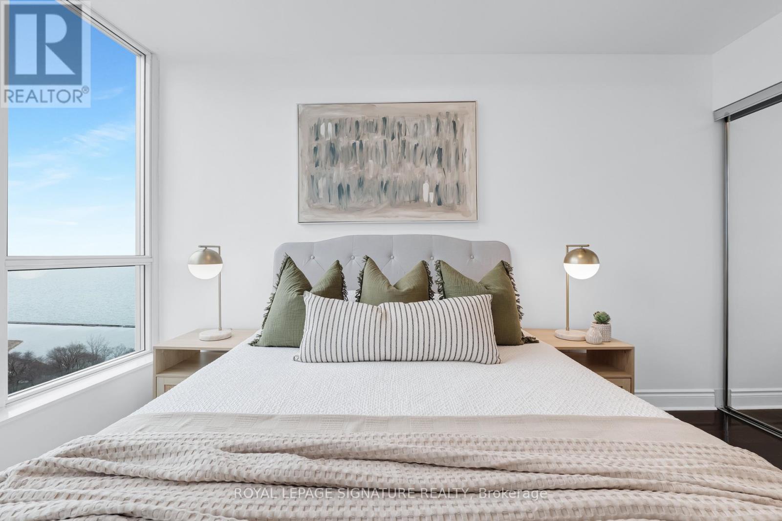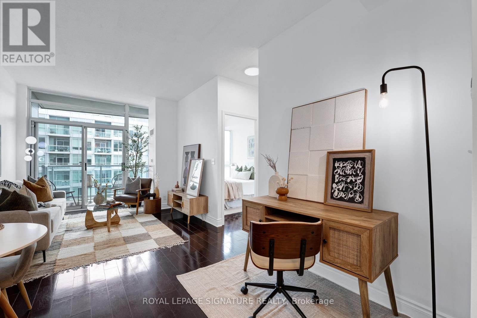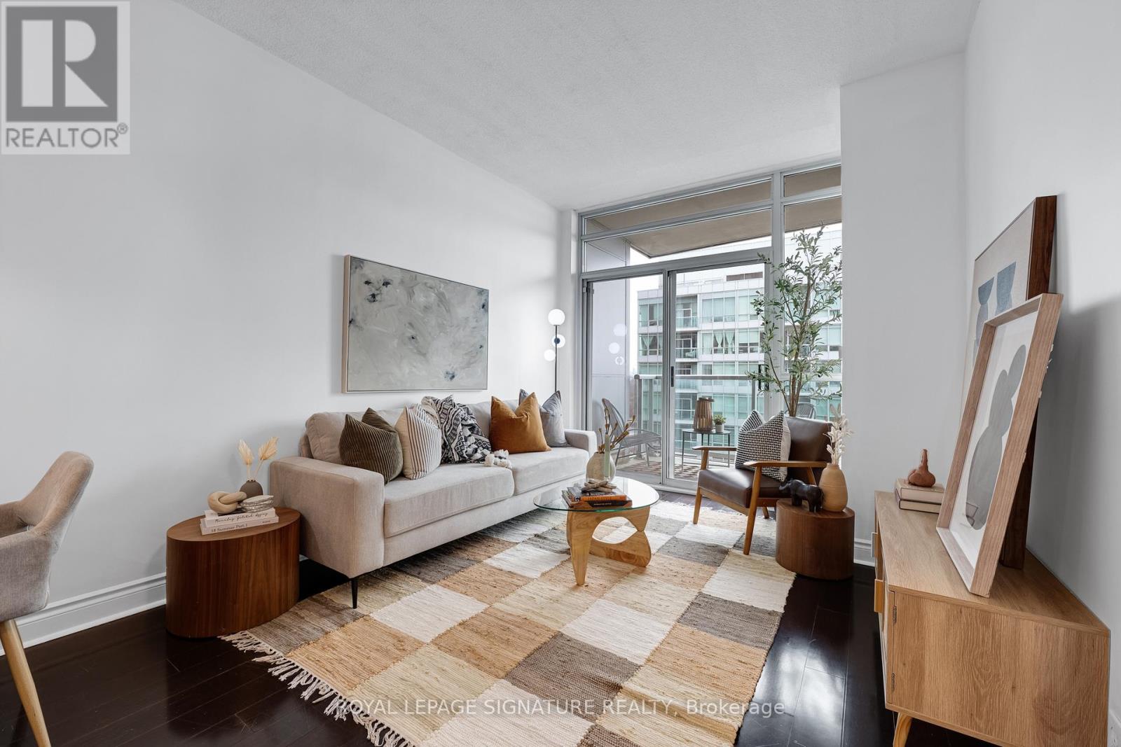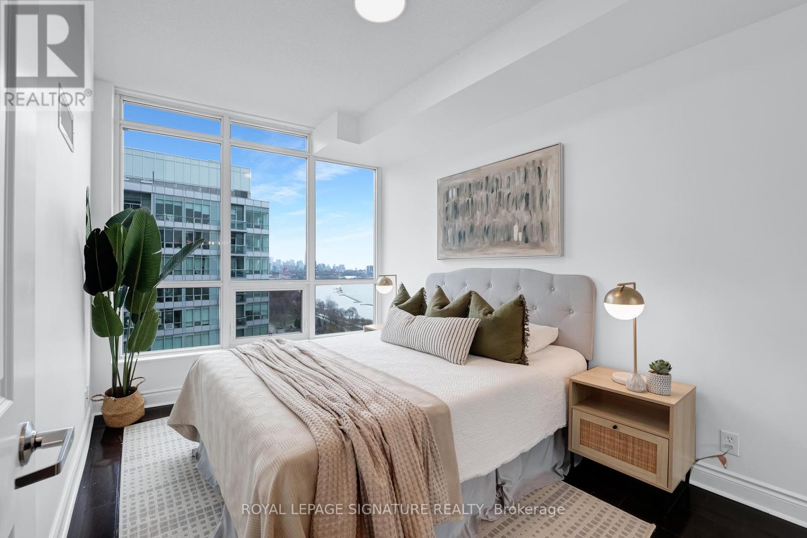 Welcome to this bright and airy lower penthouse one bedroom, one bathroom suite offering a highly functional, open-concept layout with no wasted space. Soaring 10-foot ceilings and floor-to-ceiling windows with southeast views in both the living room and bedroom flood the space with natural light. Take in a stunning blend of views, city skyline to the east, sparkling lake vistas to the south, and the serene greenery of High Park to the north. The modern upgraded kitchen is designed for both style and function, featuring stainless steel appliances, stone countertops, and ample cupboards for storage. Rich dark hardwood floors add warmth and sophistication throughout with space for a dining area, a work from home set-up, and a comfortable living room. A true move-in-ready home, offering the perfect canvas for your personal touches! Ideally located just steps from Sunnyside Beach, High Park, and the Martin Goodman Trail, this address delivers the best of nature and urban convenience. Enjoy easy access to multiple TTC routes, including the 24-hour Queen streetcar, or a quick 15-minute drive to Union Station. Residents benefit from premium amenities including a 24-hour concierge, fitness centre, yoga and ping-pong room, cards and billiards lounge, meeting and party rooms, and a rooftop serenity garden complete with BBQs, picnic areas, and visitor parking. (id:4555)