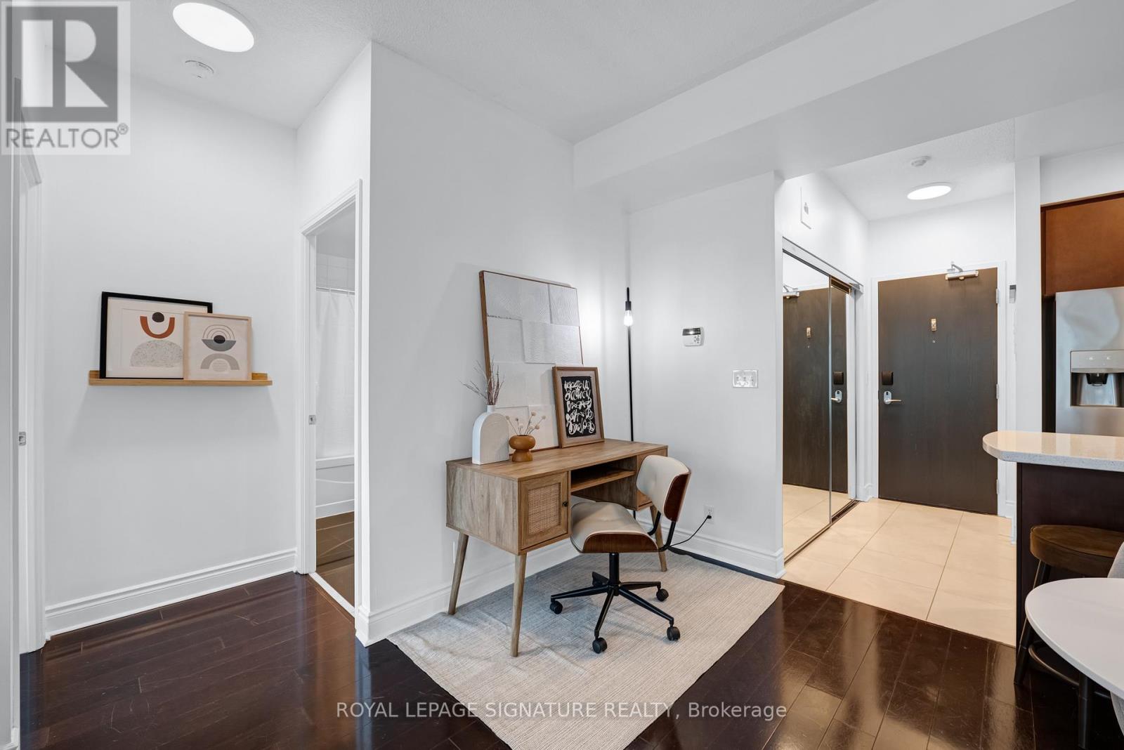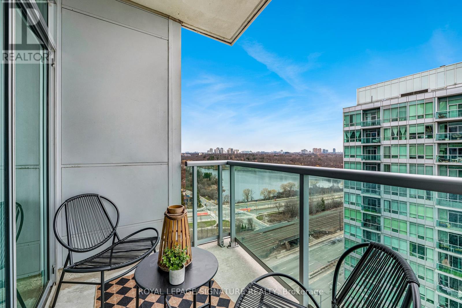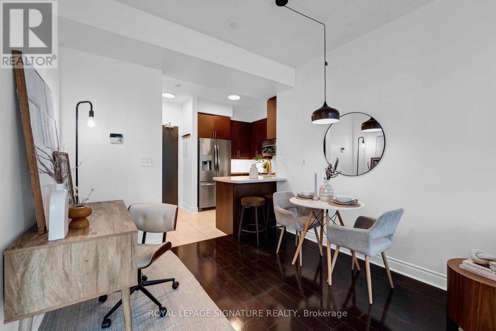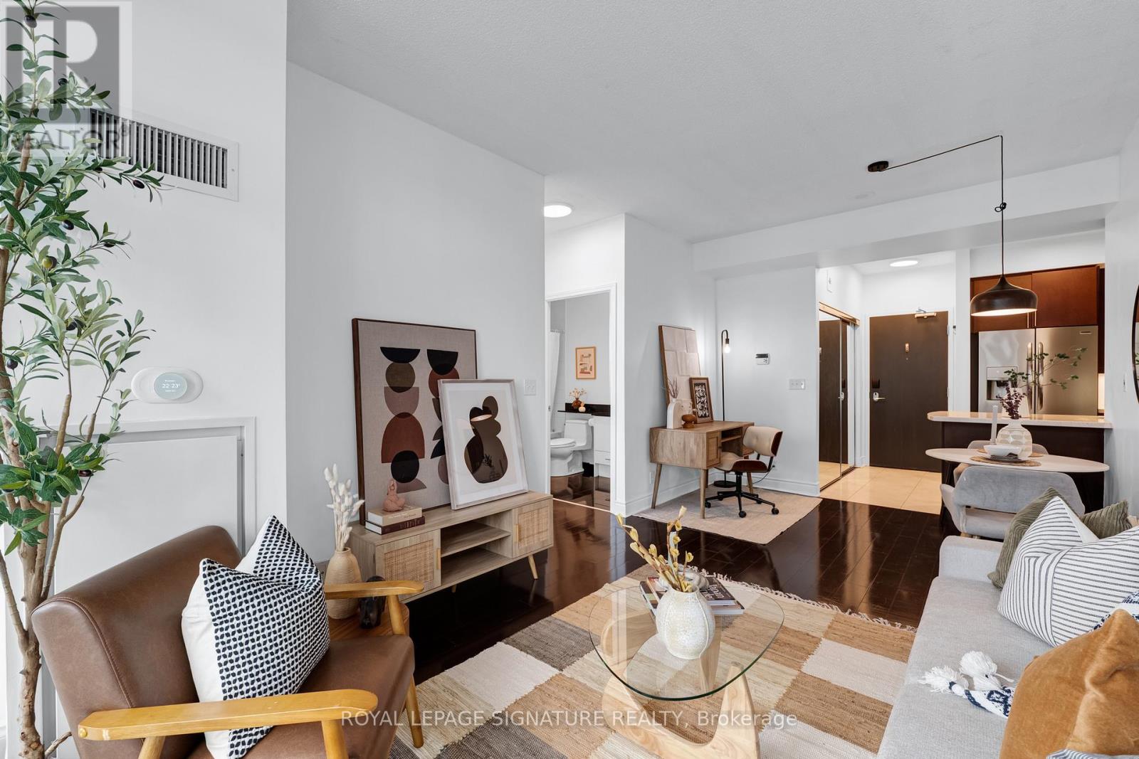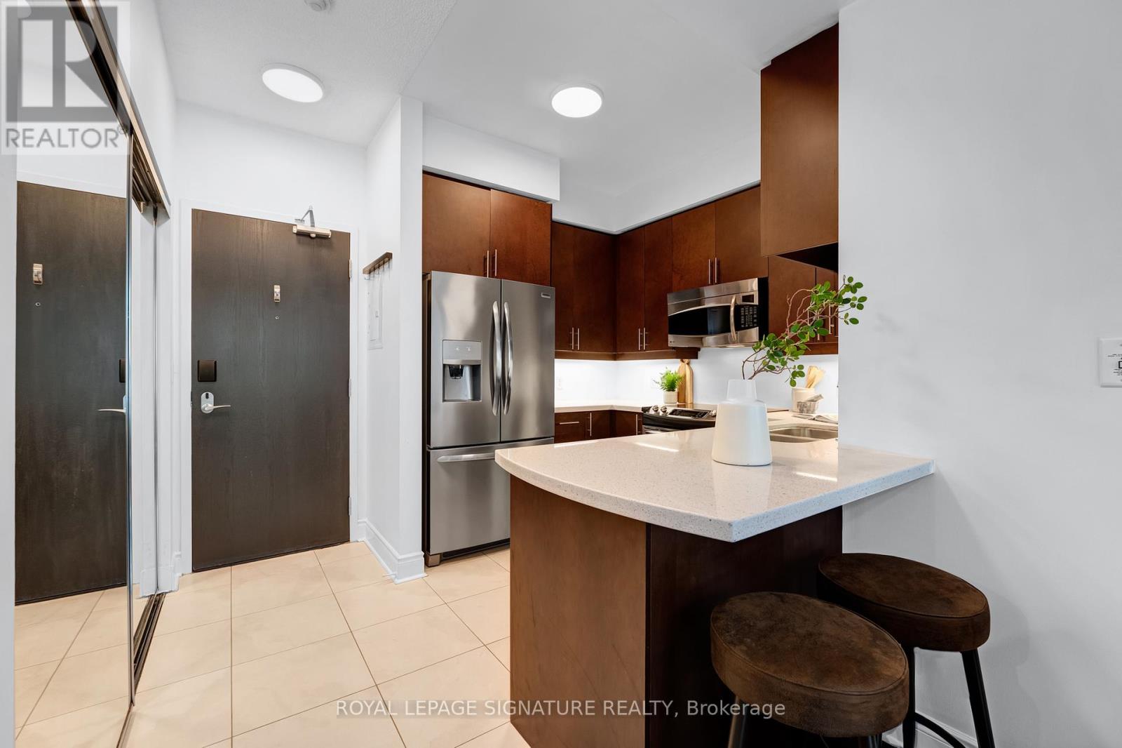 Welcome to this bright and airy lower penthouse one bedroom, one bathroom suite offering a highly functional, open-concept layout with no wasted space. Soaring 10-foot ceilings and floor-to-ceiling windows with southeast views in both the living room and bedroom flood the space with natural light. Take in a stunning blend of views, city skyline to the east, sparkling lake vistas to the south, and the serene greenery of High Park to the north. The modern upgraded kitchen is designed for both style and function, featuring stainless steel appliances, stone countertops, and ample cupboards for storage. Rich dark hardwood floors add warmth and sophistication throughout with space for a dining area, a work from home set-up, and a comfortable living room. A true move-in-ready home, offering the perfect canvas for your personal touches! Ideally located just steps from Sunnyside Beach, High Park, and the Martin Goodman Trail, this address delivers the best of nature and urban convenience. Enjoy easy access to multiple TTC routes, including the 24-hour Queen streetcar, or a quick 15-minute drive to Union Station. Residents benefit from premium amenities including a 24-hour concierge, fitness centre, yoga and ping-pong room, cards and billiards lounge, meeting and party rooms, and a rooftop serenity garden complete with BBQs, picnic areas, and visitor parking. (id:4555)