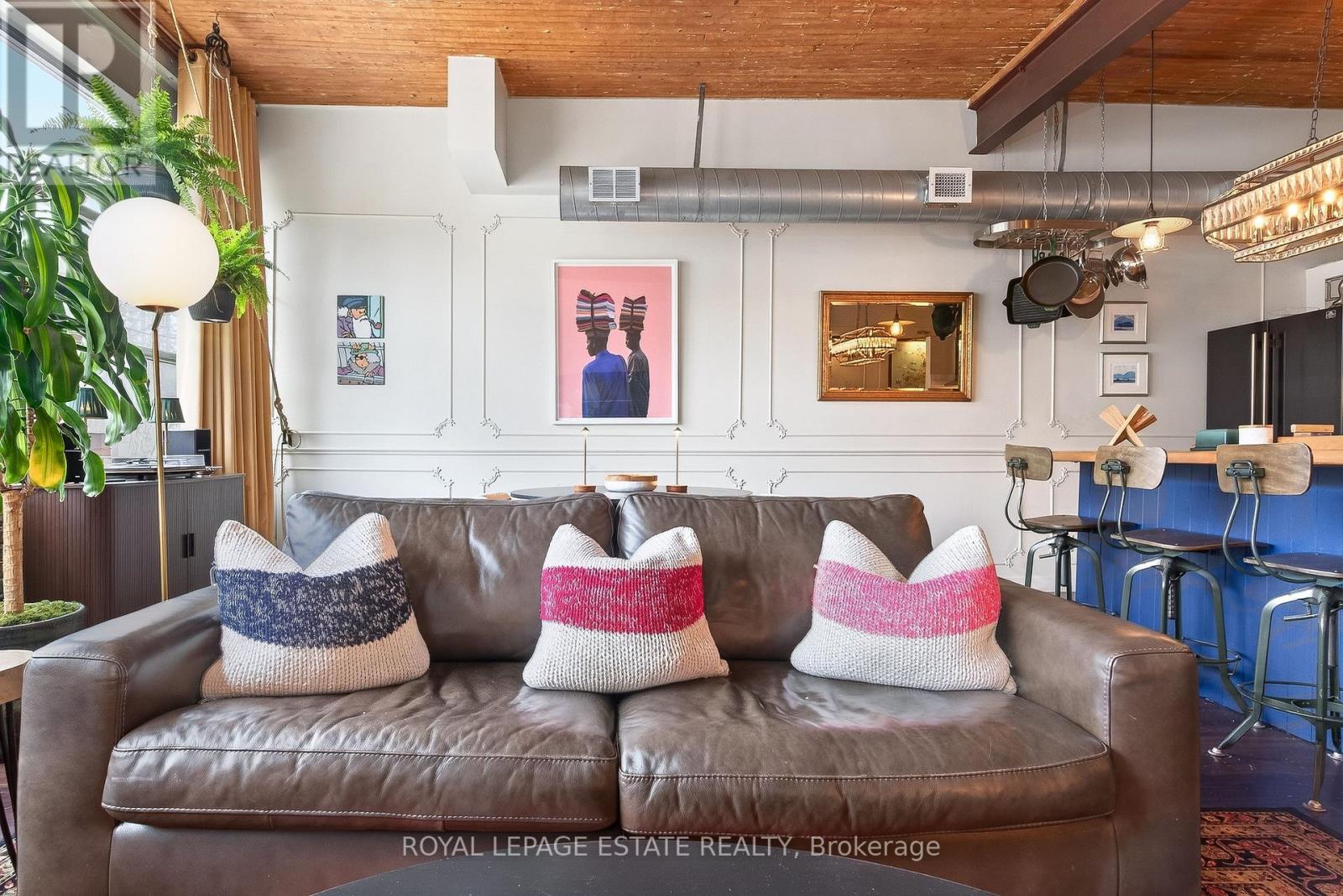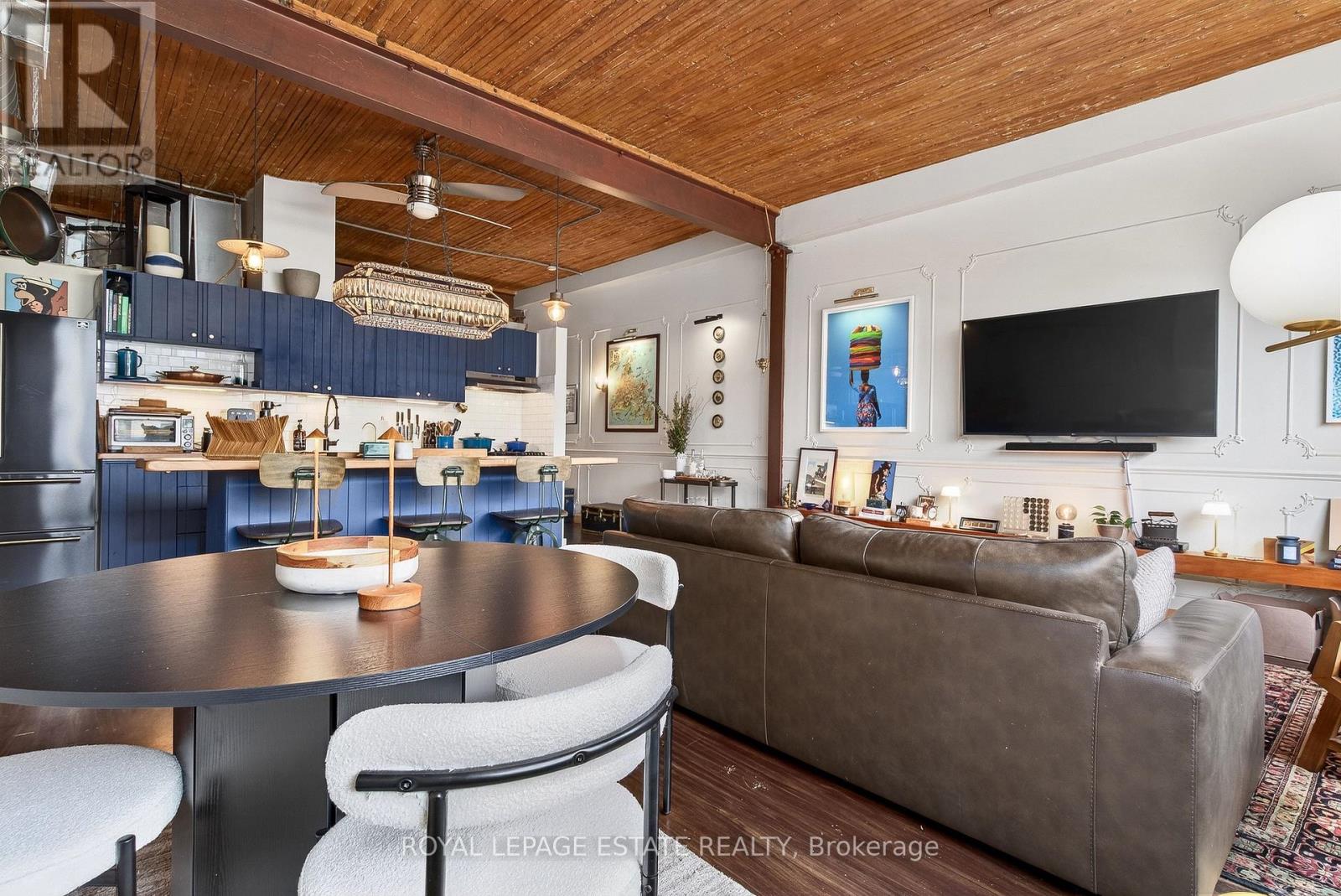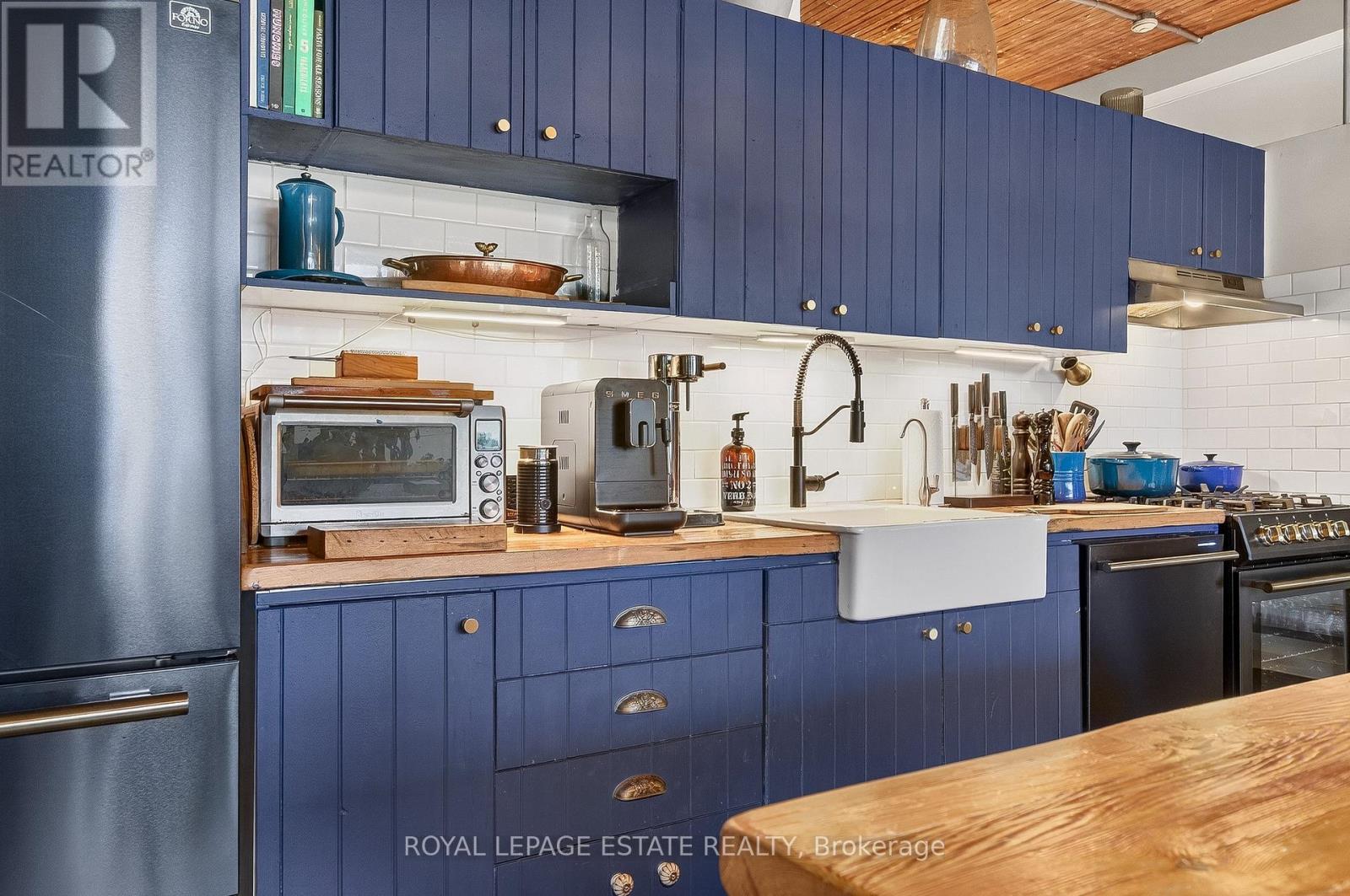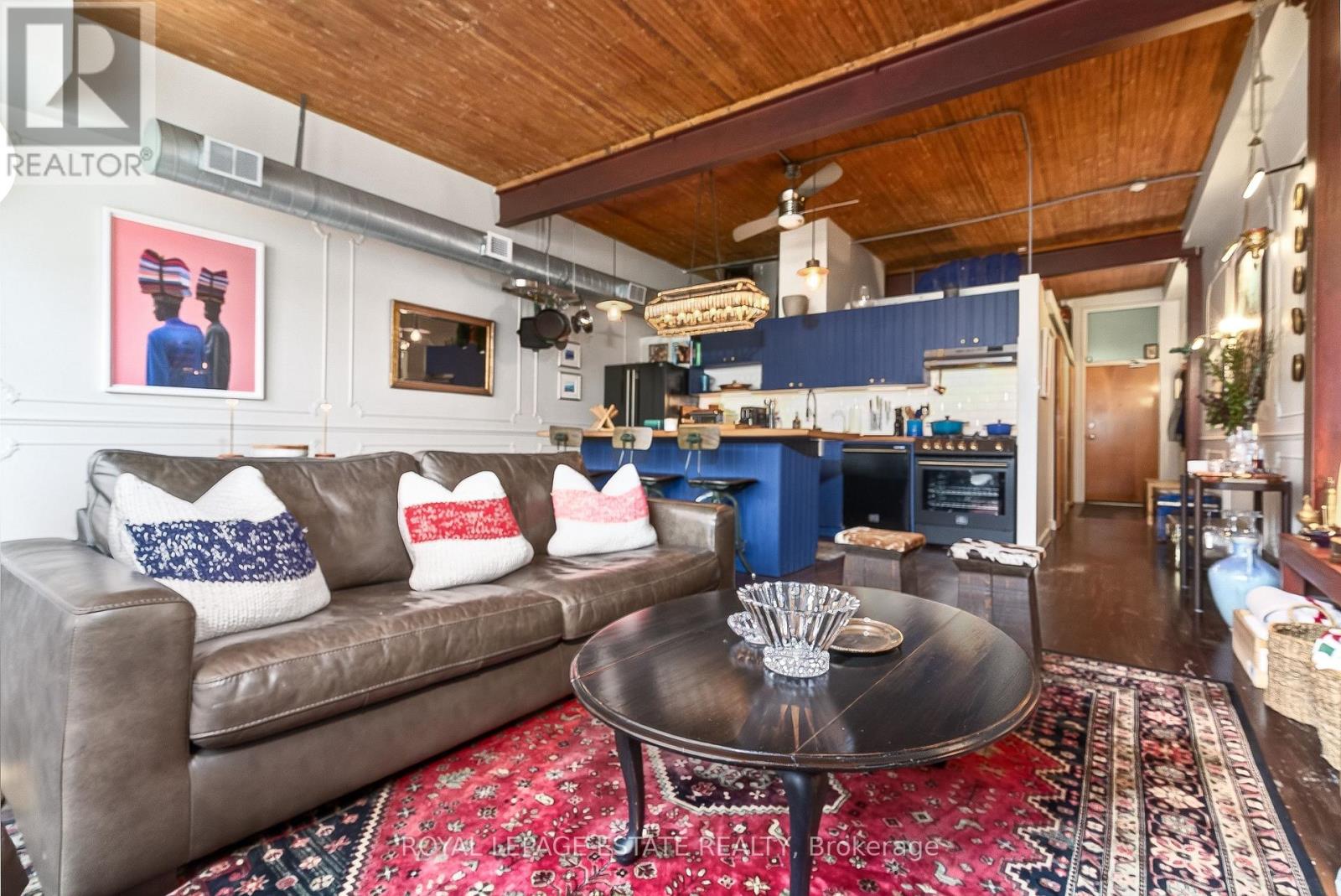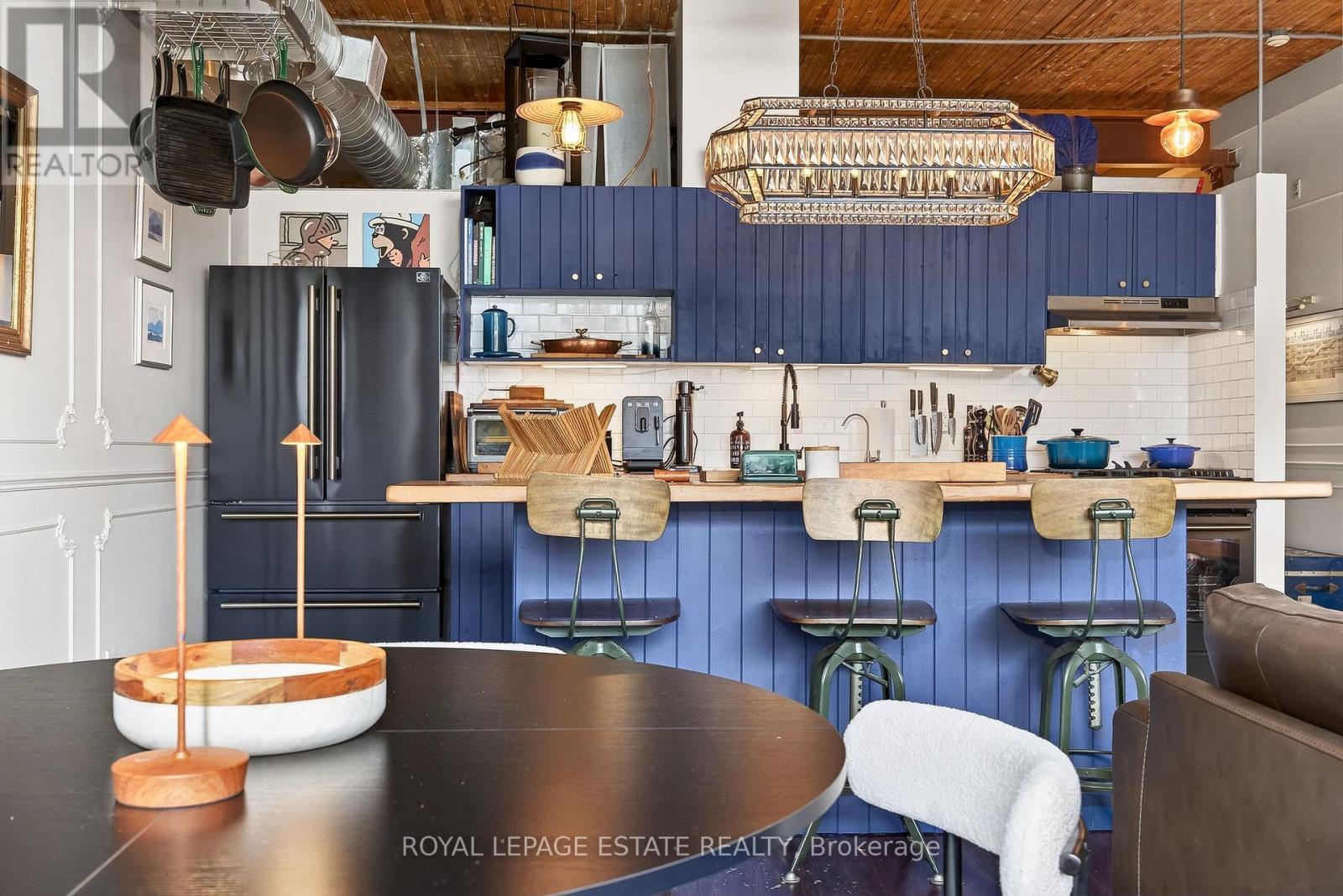 Is there anything more Toronto than a hard loft?This 1 bedroom, 1 bathroom suite at Century Lofts offers 841 sqft of open-concept space in a boutique, converted building built in 2000. Framed by oversized warehouse-style windows, the space is filled with natural light, while polished concrete floors with a subtle wood grain finish bring warmth to the industrial feel.The open layout is anchored by an updated kitchen featuring blue cabinetry, butcher block countertops, and a full suite of brand new Forno appliances. A newly added gas line allows for a proper gas range with cast iron details, making the kitchen as functional as it is striking.Open, flexible, and easy to live in, the space adapts to whatever your day looks like, whether that's a quiet night in or having people over.Major system upgrades have all been taken care of, including a new furnace (2026), owned tankless water heater (2026), water softener (2026), reverse osmosis system (2026), and air conditioning (2022).Century Lofts is a well-maintained boutique building with updated amenities, including a rooftop terrace with BBQs, gym, and party/meeting room. Located in the heart of downtown, just steps to TTC, cafés, restaurants, and everyday essentials.Includes 1 parking space and 1 locker. (id:4555)