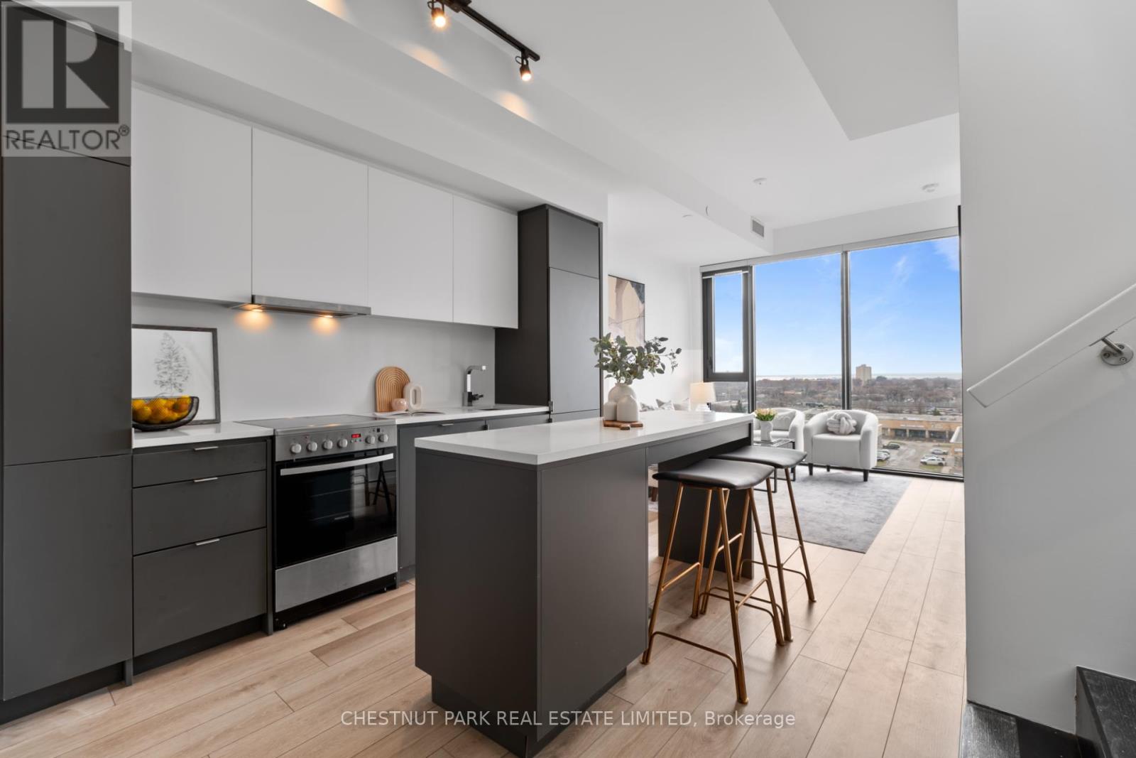PH13 - 817 sq ft + 240 sq ft terrace. Parking & Locker. Welcome to this exceptional two-bedroom plus den residence at Queensway Park-offering the perfect alternative to a condo townhouse. With a unique two-level layout, soaring 10-foot ceilings, and a private rooftop terrace, this home delivers the space, separation, and lifestyle of a townhome with the ease of condo living. Short bus ride to Royal York Station & Mimico Go. Easy Access To Lake Shore & Gardiner. (id:4555)