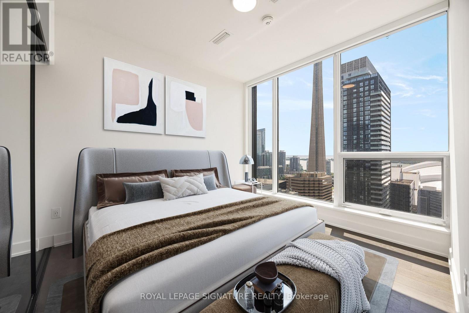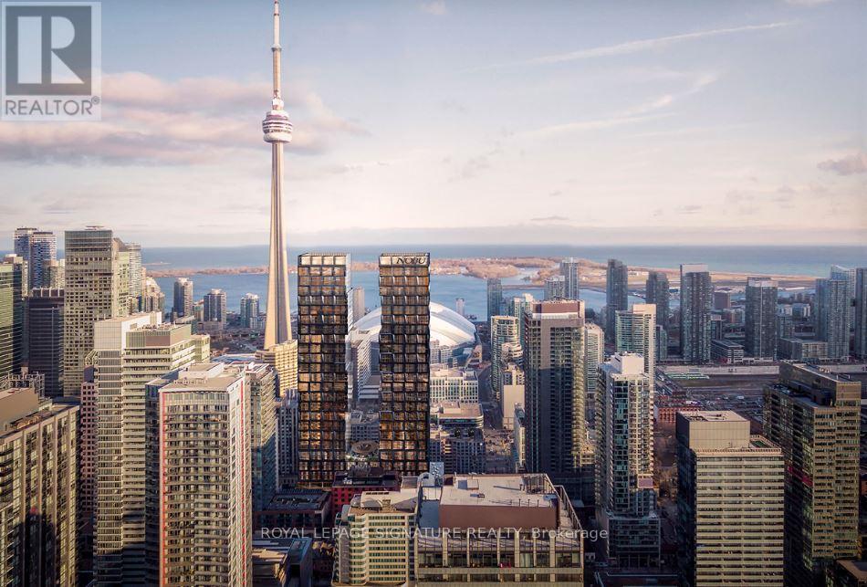 Welcome to the prestigious Nobu Residences, where luxury, design, and lifestyle come together in the heart of downtown.This exceptional 2 bedroom + den, 2 bathroom suite offers an unparalleled blend of sophistication and comfort. Tons of upgrades throughout, the residence features an expansive open concept layout with dramatic floor to ceiling windows that flood the space with natural light and showcase breathtaking, unobstructed views of the Rogers Centre and the iconic CN Tower, a true Toronto skyline experience. This isn't just a view, it's a statement.The sleek, modern kitchen is a showpiece, complete with top of the line built in appliances, premium finishes, and a large island perfect for entertaining. The spacious primary bedroom offers custom closet organizers and a spa inspired ensuite adorned with designer fixtures and elegant detailing. A versatile den provides the ideal space for a home office or additional living area. Residents of Nobu Residences enjoy world-class amenities, including a state of the art fitness centre, stunning outdoor terrace, 24-hour concierge service, and exclusive lifestyle offerings designed for elevated urban living. Perfectly situated steps from premier shopping, fine dining, entertainment, and transit, this remarkable suite delivers the ultimate downtown lifestyle. Property is digitally staged. (id:4555)