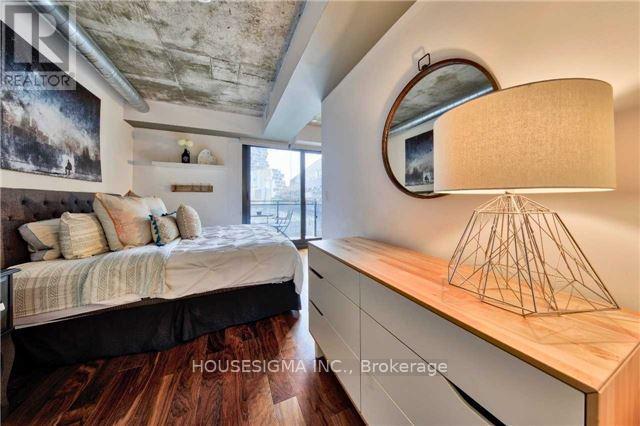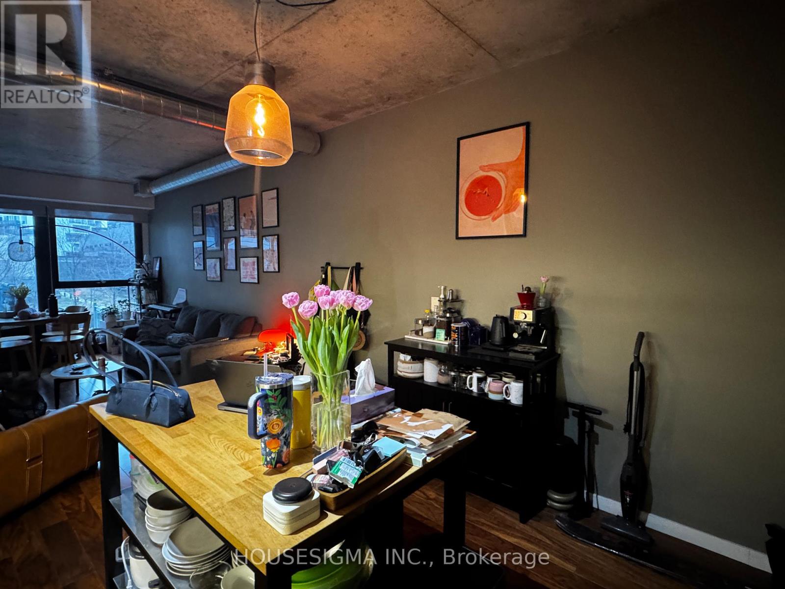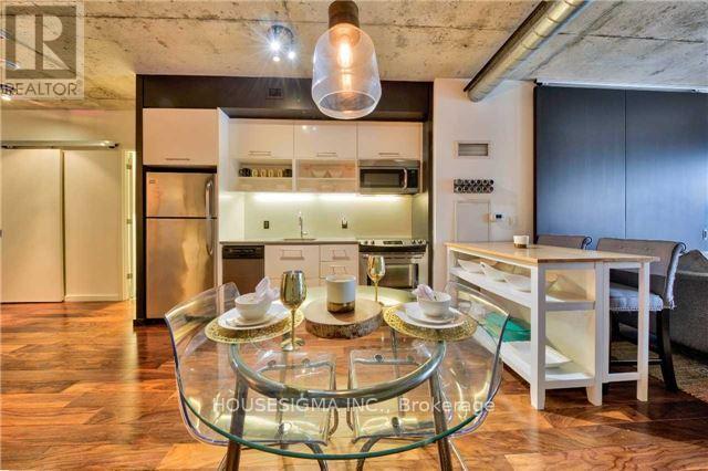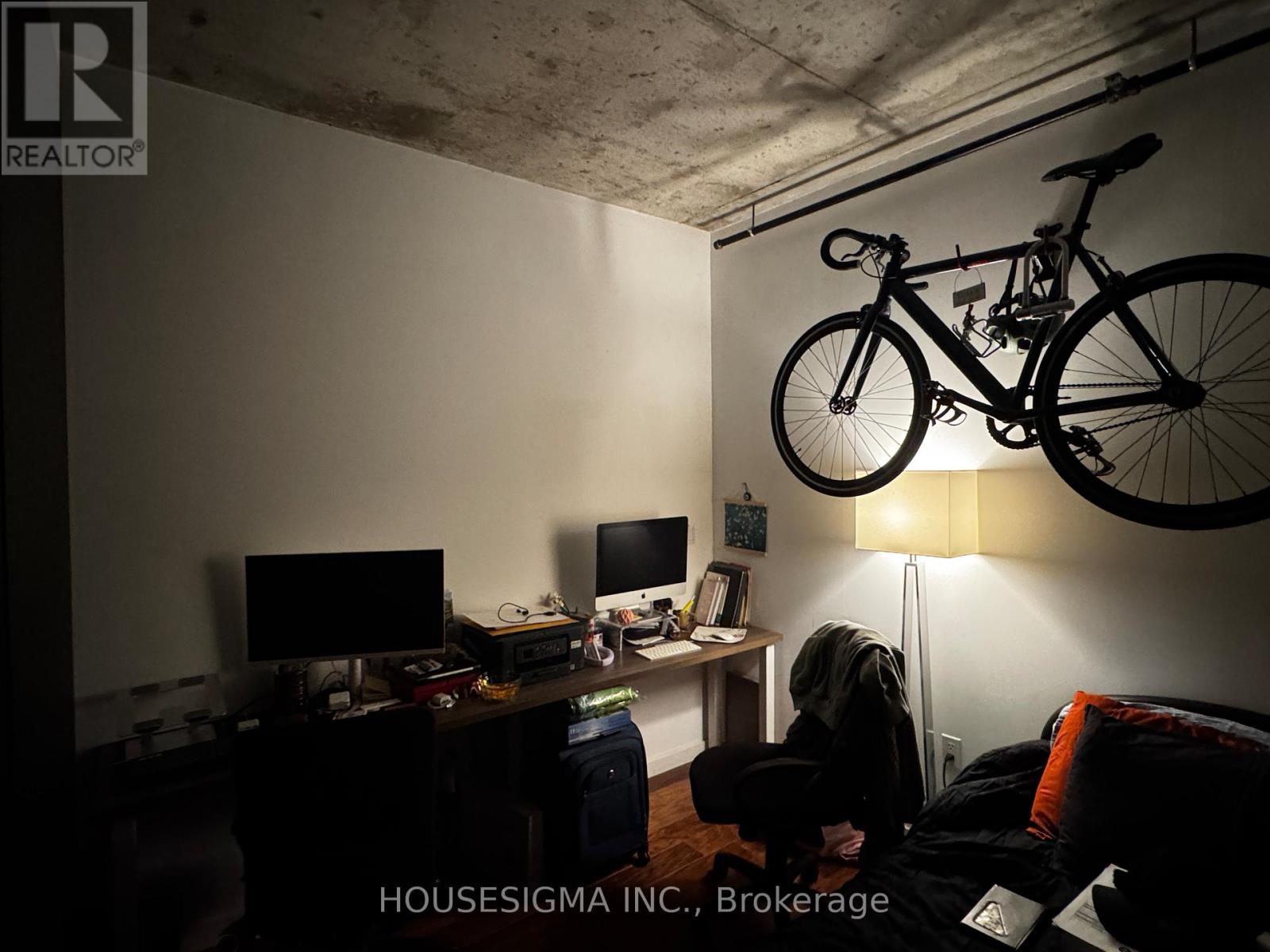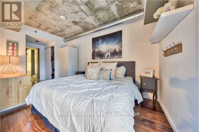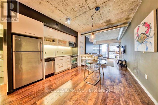 Rarely offered, spacious 1+den condo with one underground parking spot ideal for couples or individuals that work from home! This beautifully designed suite offers 784 sq ft of functional interior space plus a 54 sq ft private balcony. The open-concept layout is anchored by 9' exposed concrete ceilings, creating a modern, industrial-chic feel with an abundance of natural light. The oversized den adds incredible flexibility, easily functioning as a private second bedroom, dedicated home office, or creative studio. Enjoy access to premium building amenities such as gym and rooftop pool, and just steps to transit with seamless access to the DVP. (id:4555)