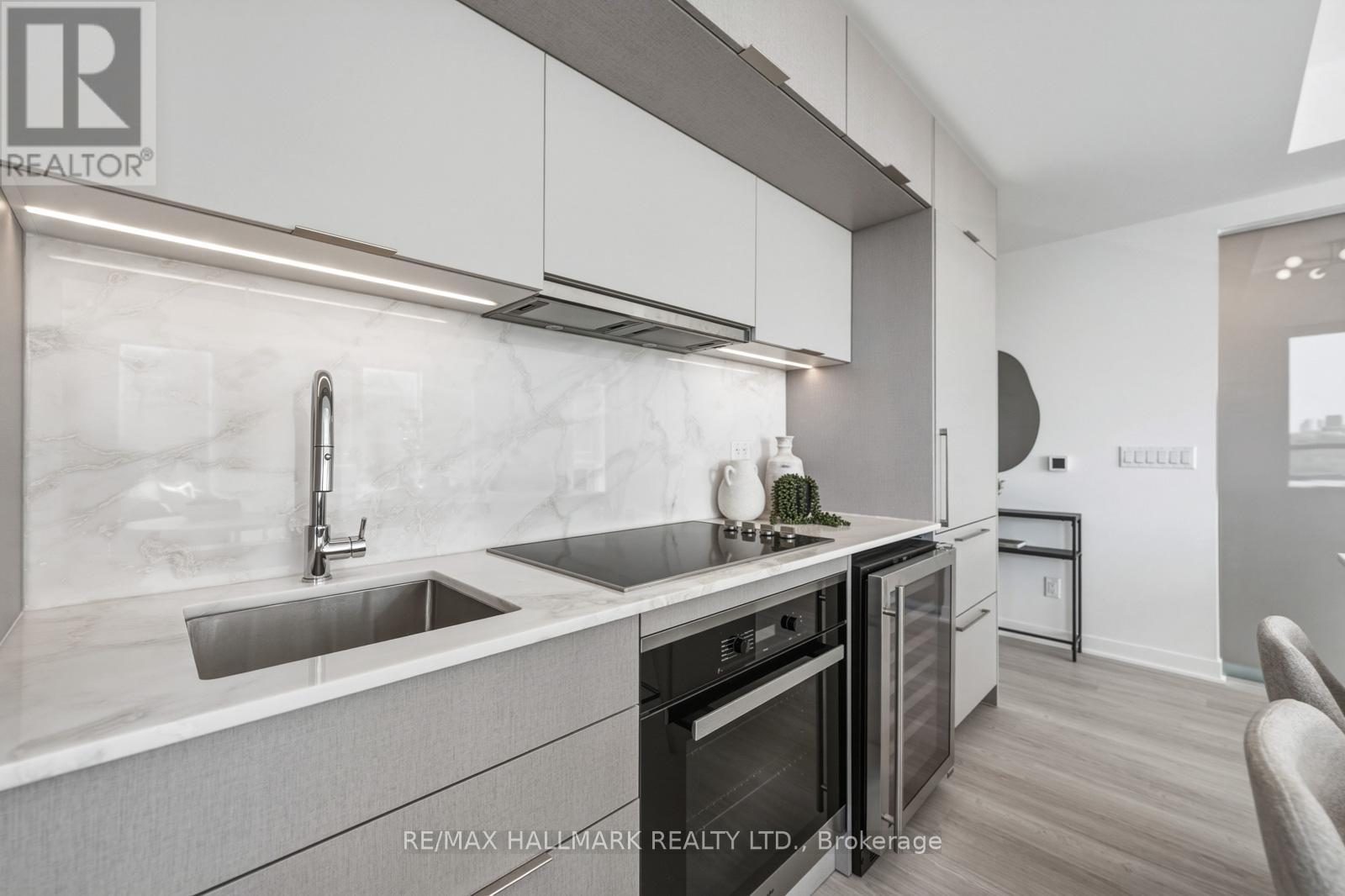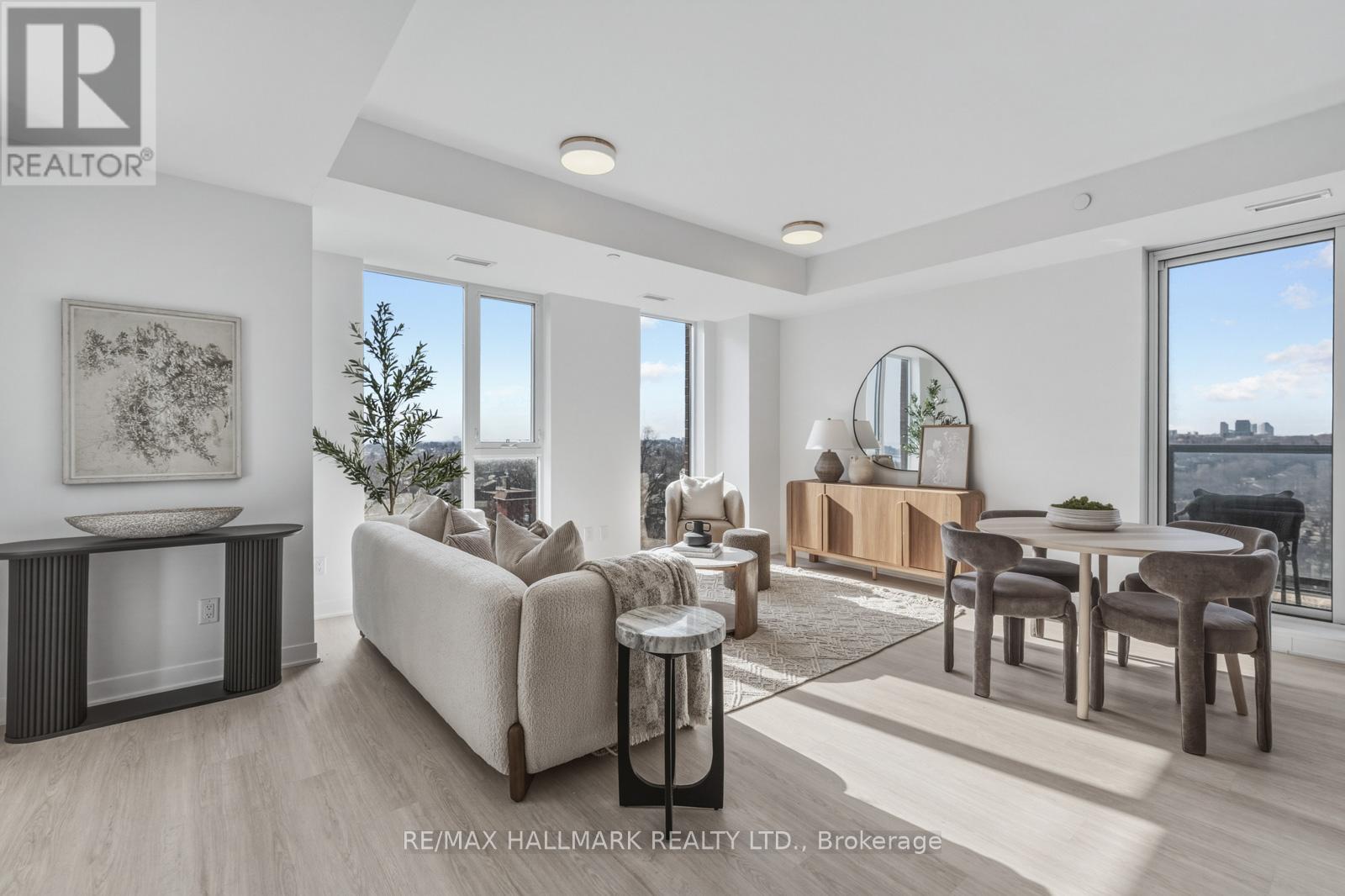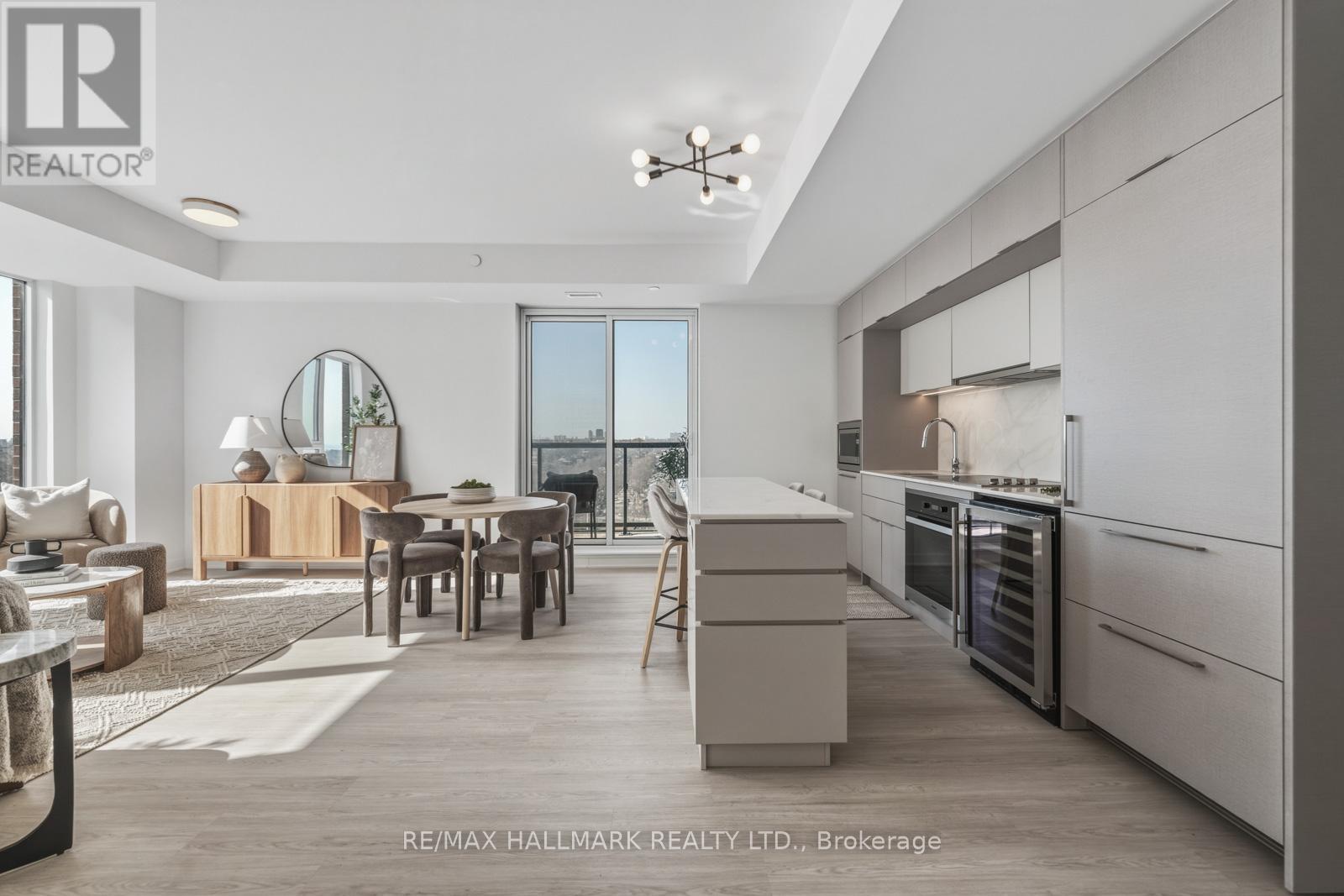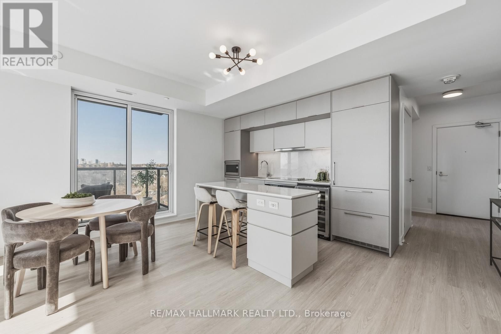 Welcome to Suite 1001, a beautifully appointed 2-bedroom plus den condo offering approximately 1,054 square feet of thoughtfully designed interior living space plus a private balcony. This well-proportioned suite features an open-concept layout with spacious principal rooms, wide-plank engineered hardwood flooring throughout, and a seamless flow ideal for both everyday living and entertaining. The modern kitchen is elegantly finished with integrated Miele appliances, a large centre island, and sleek contemporary design. The sun-filled living and dining area extends to a private balcony with gas line-perfect for outdoor dining and relaxation. The generous primary bedroom offers two closets and a private 3-piece ensuite. A well-sized second bedroom with a Juliette balcony and double closet provides added comfort, while the separate den with sliding frosted glass doors is ideal for a home office or flexible living space. Two full bathrooms feature clean, modern finishes. Additional highlights include in-suite laundry with a stacked Blomberg washer and dryer, ample storage throughout and an underground parking space. Residents enjoy premium building amenities including a 24-hour concierge, fully equipped fitness centre, elegant lobby with fireplace, co-working and social lounges, and a beautifully landscaped rooftop terrace with sweeping skyline views. Secure building access and underground parking provide peace of mind. Ideally located at 900 St. Clair Ave W, in the vibrant St. Clair West neighbourhood, this midtown address offers the perfect blend of urban convenience and neighbourhood charm. Steps to cafés, restaurants, shops, parks, and transit, including the dedicated St. Clair streetcar and easy access to the subway. An exceptional opportunity to own in one of Toronto's most dynamic and community-focused neighbourhoods. (id:4555)