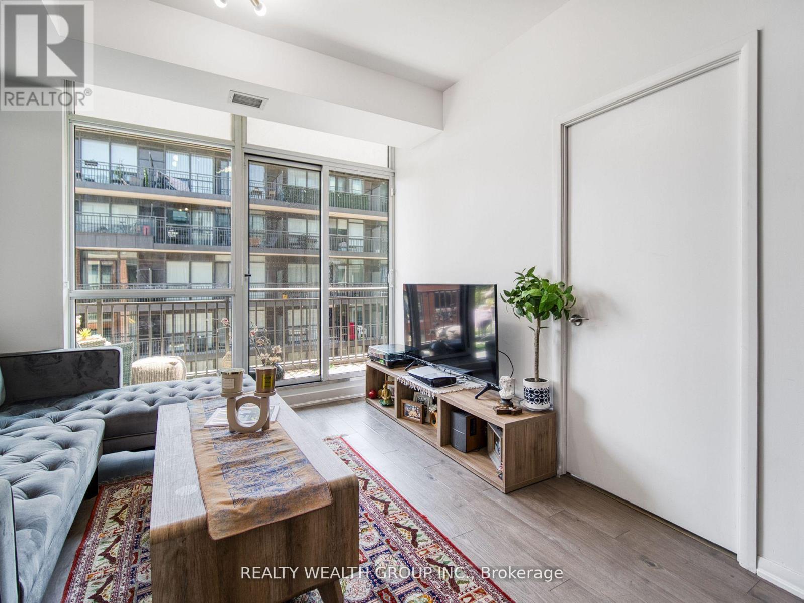 ***PRICED TO SELL*** Welcome to RESIDENZE PALAZZO at TREVISO III, where timeless European-inspired architecture blends with the comfort of modern city living. This well-maintained 1+Den suite features 9-foot ceilings, an airy open-concept layout, and a spacious balcony overlooking a quiet courtyard. The contemporary kitchen is equipped with stainless steel appliances and a sleek backsplash. The separate den offers flexibility as a home office, guest room, or cozy reading nook, while the primary bedroom boasts floor-to-ceiling windows and a mirrored closet. The bathroom showcases clean, modern finishes. Enjoy your spacious private balcony, ideal for morning coffee, unwinding in the sun, or hosting casual meals. Includes one parking spot and a storage locker for your convenience. Located in a family-friendly community with parks just steps away, including Caledonia Park and Dane Parkette, and close to a daycare centre, schools, Yorkdale Mall, Lawrence Allen Mall, places of worship, and everyday essentials. Lawrence West Subway Station is just minutes away, offering direct access to downtown and across the city. Enjoy access to resort-style amenities: rooftop and indoor pools, a fully equipped gym, sauna, media and party rooms, games room, movie theatre, pet spa, guest suites, bike storage, visitor parking, and 24-hour concierge service. An ideal home for first-time buyers, professionals, couples, or small families looking for style, convenience, and a vibrant lifestyle. (id:4555)