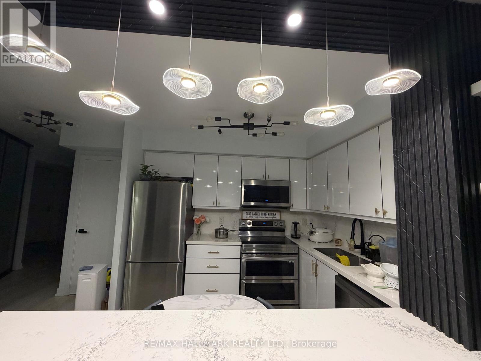 Welcome to this stunning, sun-drenched South West facing Condo suite in the Heart of North York. Absolutely fully reno'ed from top to bottom, every square inch of this home was done to the 10ths, spent over $60K in reno budget. This home features new light laminate floors, bright custom lighting throughout, artsy focal point wall as one of the highlight of this home along with a large mirror around the hallway area great feature to maximize projection on the space. Oh ohhh.. the Living/Dining/ Kitchen kept the home cozy and inviting, there are many different mood lights throughout the space, it is best to experience it at night. The Kitchen itself is an absolute must to spend time cooking like a chef, bright and airy, white cabinetry with a stone countertop and backsplash, a custom built in Island/ Eating space anchored by a custom floating light fixtures enhances the ambiance of it all, extra shelves and coffee/bar area, newer stainless steel appliances, high end washer and dryer combo and so much more. The Primary Bedroom has tremendous upgrades includes all built in Custom closet organizers, spa like master bathroom with rain shower and a two thousand dollar Japanese toilet with heated and water massage seat, auto clean functionality and so much more. The second bedroom is an absolute delight drench with all natural lights and built in closet organizers. This home is an extension of the home owners personality full of life and happy experiences and you can truly make this space so uniquely top not in every square inch of this home for the new well deserving homeowner today.Step out onto your private two balconies and unwind with a glass of wine while enjoying breathtaking sunset views and your gardening needs. Steps to TTC, GO Station, and the YRT bus terminal (only 200 meters away), with quick access to Highways 401, 404, 407, and Hwy 7. If you are a serious about finding the perfect home for you at Yonge and Finch corridor... This is a must-see! (id:4555)