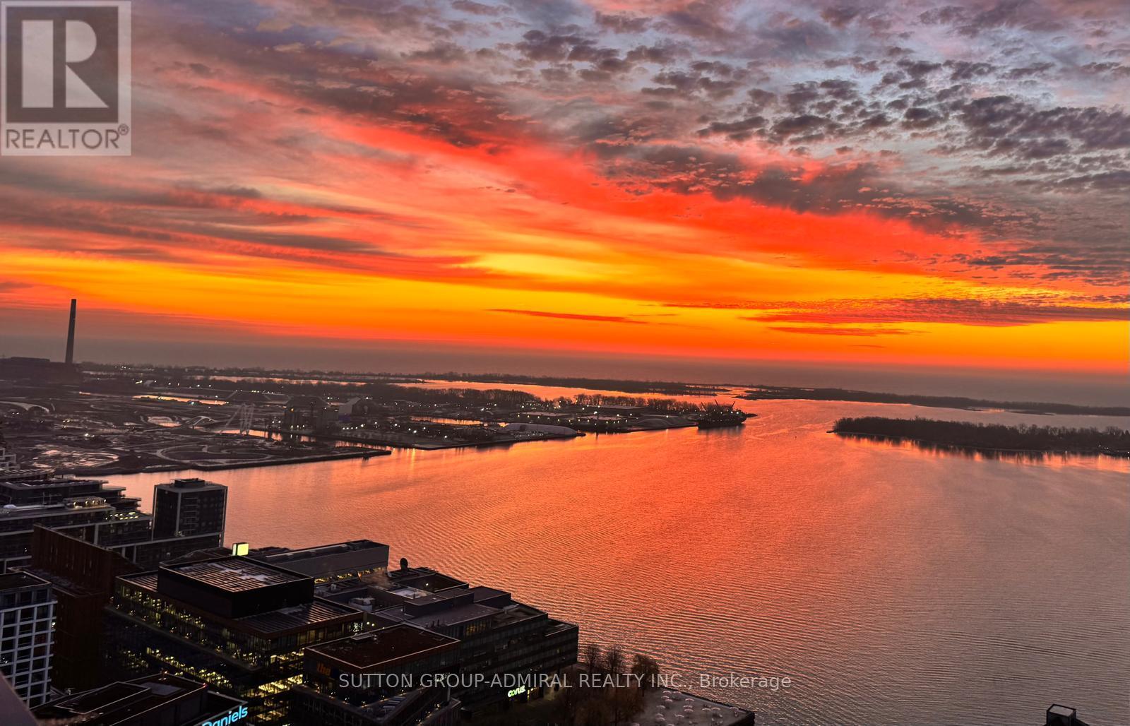 Welcome to Sugar Wharf, one of Toronto's most prestigious waterfront addresses, developed by Menkes and designed by architects Alliance. Built just three years ago, this beautifully appointed studio suite sits on a high floor with clear, unobstructed south-facing views of Lake Ontario and soaring 10'10" ceilings. Wake up to the lake every morning and come home to one of the most breathtaking skylines in the city.The suite is thoughtfully designed for modern living, featuring floor-to-ceiling windows that flood the space with natural light, a chef-inspired kitchen, and a private balcony with open lake views. What truly sets this unit apart is the oversized, spa-calibre bathroom, generously proportioned well beyond what you'd expect in a studio, it functions as a genuine retreat within the home. The unit comes partially furnished and move-in ready, including a bed (convertible Murphy bed or standard, your choice, we have both!), a dining table with two chairs, and a chair on the balcony. Everything you need to simply arrive and start living.This is not your average condo building. Sugar Wharf's amenity offering is genuinely in a class of its own, see attachment for the full list. Steps to Sugar Beach, Loblaws and Farm Boy for groceries, and some of the city's best waterfront dining and cafes. Union Station, the TTC, and the GO Train are minutes away. Walk score of 94, a true walker's paradise. Whether you're cycling the waterfront trail, grabbing a coffee at the water's edge, or heading into the core, everything is at your door.Sugar Wharf has attracted a discerning, professionally established resident community, the building carries an energy that reflects its location and calibre. (id:4555)