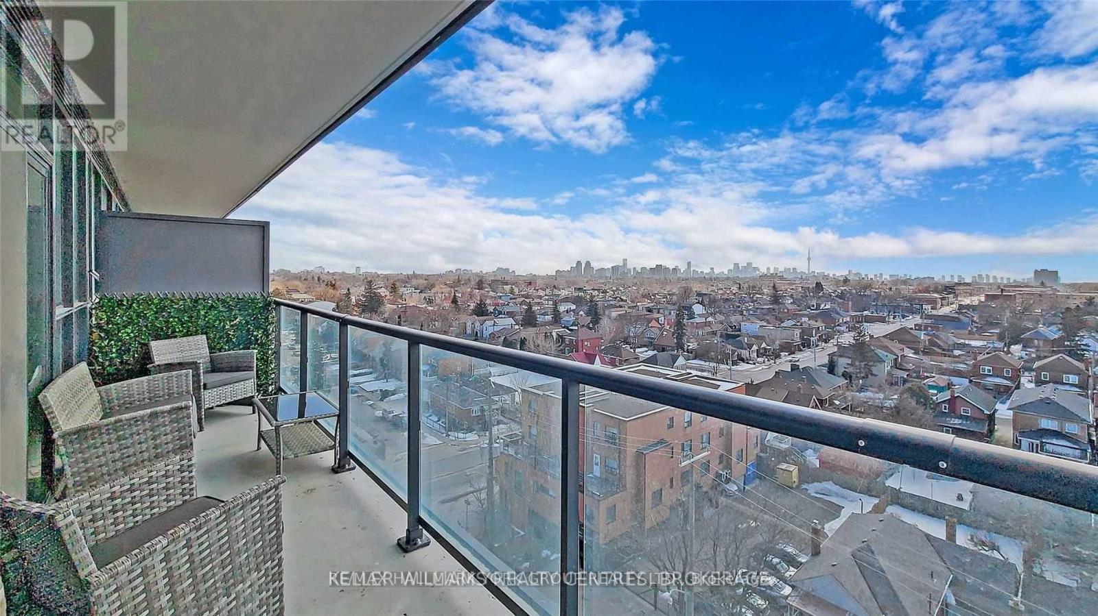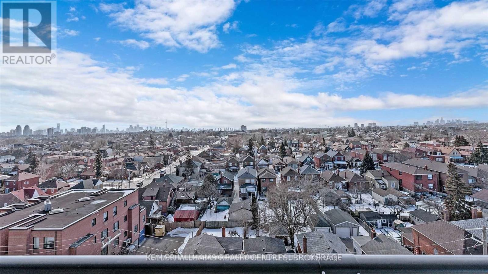 Experience refined urban living in this exceptional executive corner suite at Empire Midtown Condos, where style, space, and skyline views come together effortlessly. This beautifully appointed 2-bedroom plus den residence is filled with natural light and showcases unobstructed south-west views stretching to the iconic CN Tower and Lake Ontario.Designed for both everyday comfort and entertaining, the suite features an expansive wrap-around terrace that extends your living space outdoors-perfect for relaxing, hosting, or enjoying the city's sunsets. Inside, the open-concept layout is anchored by a sleek modern kitchen with stainless steel appliances, flowing into spacious living and dining areas. Two stylish bathrooms and a versatile den offer flexibility for a home office, guest space, or creative use, while well-proportioned principal rooms enhance the overall sense of comfort and livability.Ideally located in a rapidly evolving Midtown neighbourhood, this residence offers unmatched connectivity with the newly opened Oakwood LRT Station at your doorstep and just minutes to Eglinton West subway on the University line. Enjoy easy access to the vibrant Oakwood and Eglinton West corridor, known for its diverse dining, cafés, bakeries, local shops, parks, schools, and everyday conveniences that continue to elevate the area's appeal.Residents of Empire Midtown enjoy premium amenities including a 24-hour concierge, fitness and yoga studios, a party lounge with fireplace and a rooftop terrace with BBQs and lounge areas. Guest suites, pet wash/bath room and a bike repair room add further convenience and functionality for residents and visitors alike. Includes one underground parking space (near the elevators) and a locker. A rare opportunity to own in one of Midtown Toronto's most connected and dynamic communities, offering an ideal blend of lifestyle, comfort, and long-term value in a growing urban hub. Some rooms virtually staged. (id:4555)