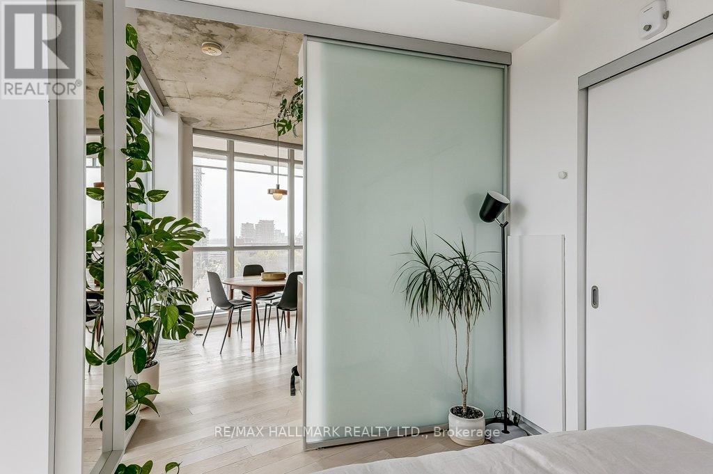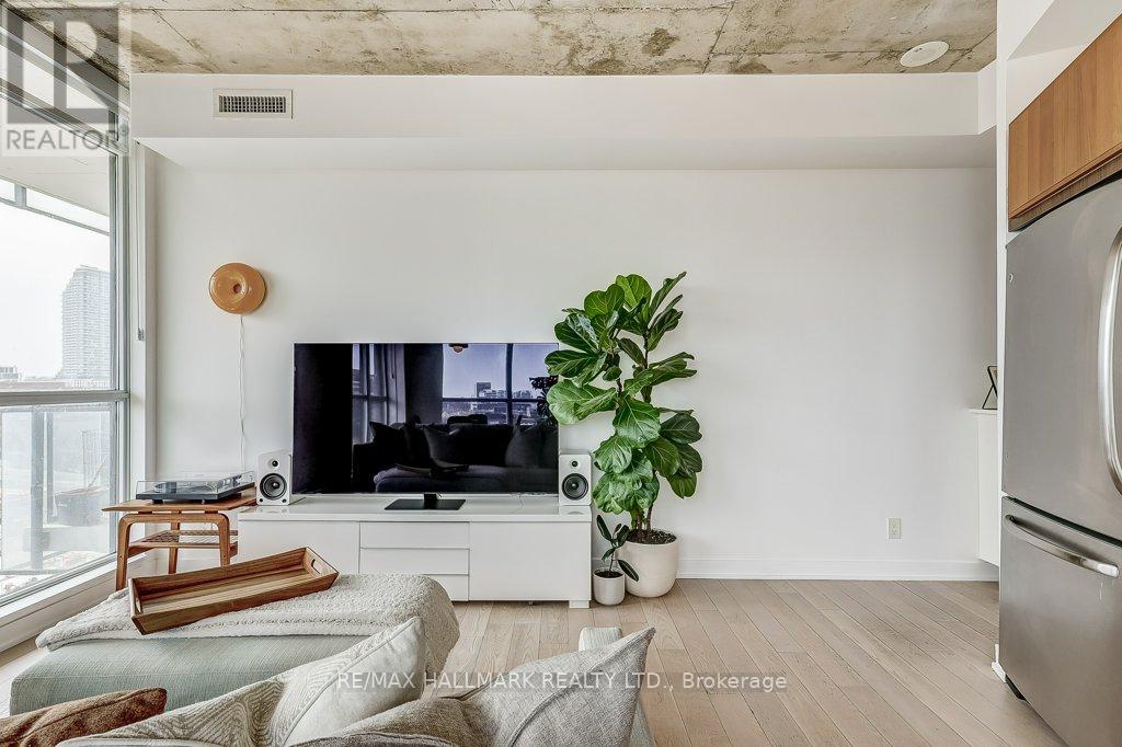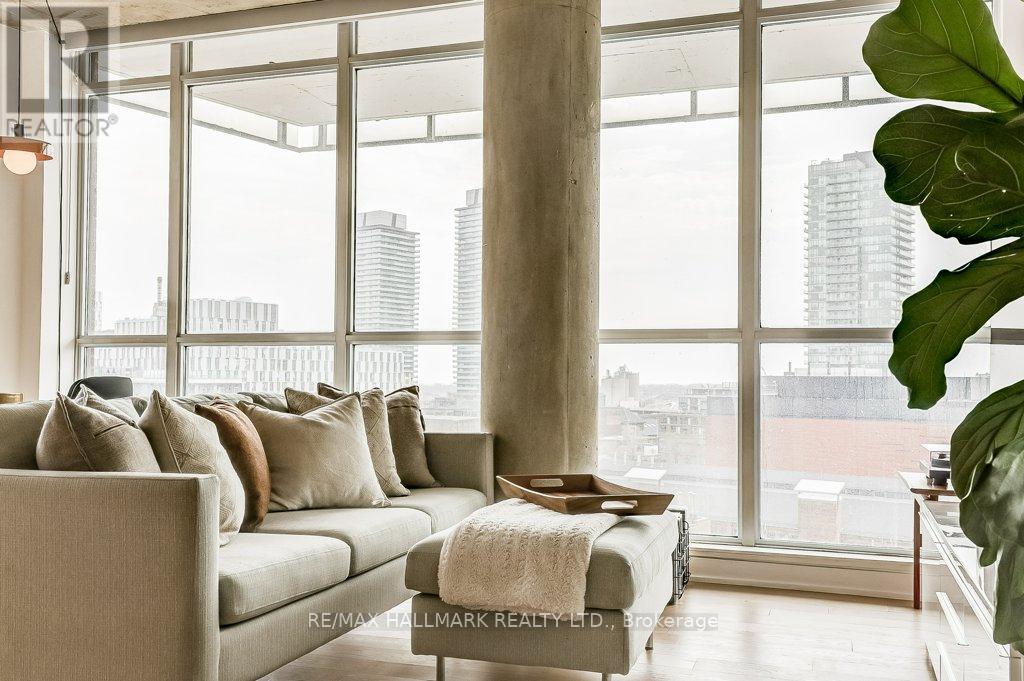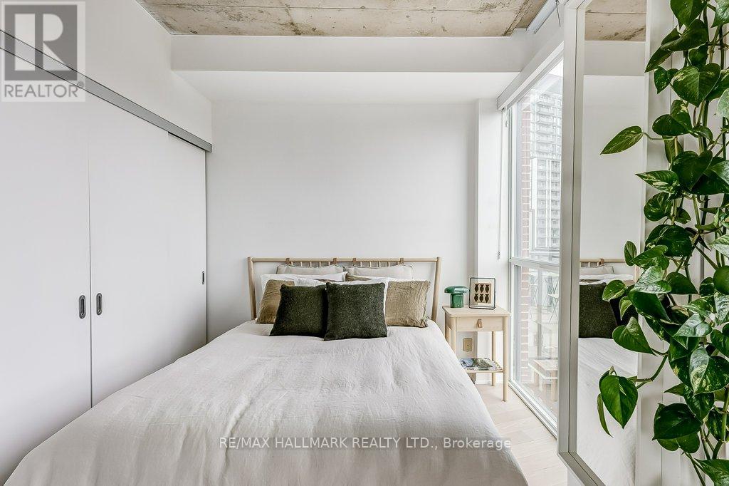 Experience stylish city living in this bright and beautifully designed southeast corner loft, located in a sought-after boutique building. Flooded with natural light through floor-to-ceiling windows, the suite offers open city views and a glimpse of the water, creating an airy and inviting atmosphere throughout.The space features exposed concrete ceilings, hardwood floors, and a sleek modern kitchen equipped with stone countertops, stainless steel appliances, a gas cooktop, built-in dishwasher, and glass backsplash. The smart, open layout provides flexibility for everyday living, entertaining, and working from home. The bedroom includes generous wall-to-wall closet space, and the unit is complete with in-suite laundry for added convenience.upgrades include automated window blinds and a Smart Ecobee thermostat. The pet-friendly building offers bike storage, and a rental parking space is available if needed.Ideally situated steps from top restaurants, shops, St. Lawrence Market, the Distillery District, and the waterfront. Transit is at your doorstep with the King streetcar outside and a future Ontario Line station across the street. Union Station is just a 20-minute walk away. A fantastic opportunity to lease a sun-filled loft in one of the city's most vibrant and connected neighbourhoods (id:4555)