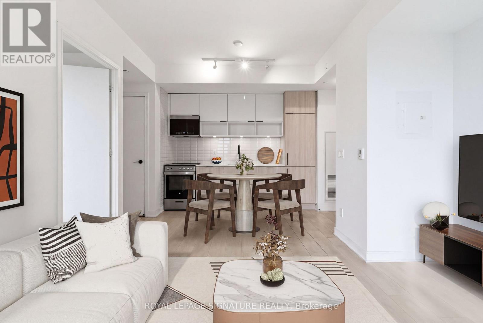 Welcome to Canary Commons, a 4 year new residence offering the perfect balance of vibrant city living and serene surroundings in the heart of the Canary District, one of Toronto's growing communities. This bright and spacious 2 bedroom, 2 bathroom suite features a functional open-concept layout filled with natural light, complemented by floor-to-ceiling windows, and light oak laminate flooring throughout. Freshly painted, the unit offers a modern, move-in-ready feel. The contemporary kitchen is both stylish and practical,seamlessly flowing into the combined living and dining area, ideal for everyday living and entertaining. Step out onto the oversized balcony, accessible from the living room, to enjoy your own outdoor space. The primary bedroom offers a versatile nook, perfect for a home office or sitting area, along with a walk-in closet and a private 3 piece ensuite with a glass shower.The second bedroom is conveniently located with double closet. Residents enjoy access to an impressive selection of amenities, including a fully equipped fitness centre, gym, theatre room, co-working space, children's playroom, party room, and outdoor terrace. Ideally located just steps to Corktown Common, the Distillery District, St. Lawrence Market, and Toronto's waterfront. Easy access to the Gardiner and DVP, with future Waterfront East LRT set to enhance connectivity even further. An exceptional opportunity for first-time buyers, young professionals, investors, or anyone seeking a well connected lifestyle in one of Toronto's most thoughtfully planned and evolving neighbourhoods. (id:4555)
