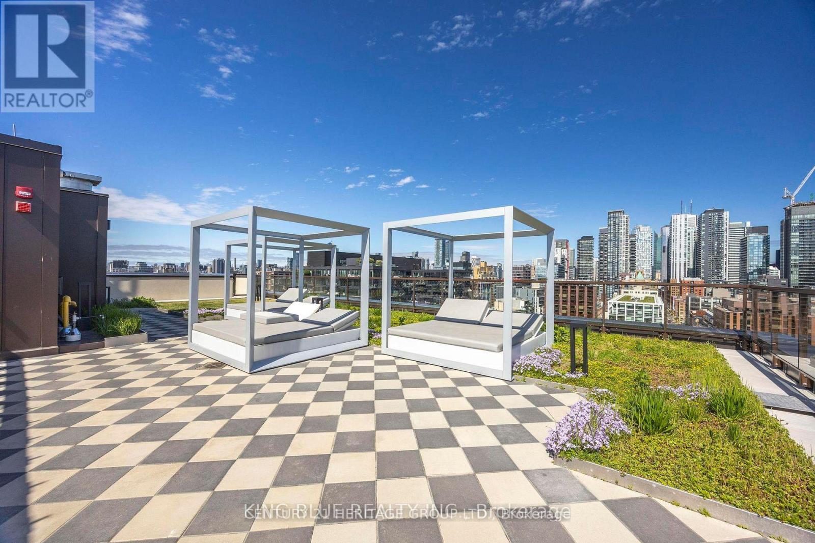 Step into luxury with this brand-new, professionally-managed condo located in the heart of Toronto's King West Fashion District. Enjoy nearby parks like St Andrews, Trinity Bellwoods, and Alexandra Park, and explore the waterfront with its stunning sunsets and vibrant festivals. This Parisian-inspired suite features an open-concept layout with 9 ft ceilings, hardwood floors, integrated Miele appliances, and upgraded kitchen and bathroom finishes. Includes a spacious den, a full bathroom with a deep soaker tub, large ensuite with a glass-enclosed shower, and a romantic Juliette balcony. Smart-home technology and keyless entry, while building amenities include Mid-Century Italian finishes, 24/7 security, a concierge, a state-of-the-art gym, rooftop terrace with city views, a kitchen bar, and a private dining area in the residents' lounge. (id:4555)