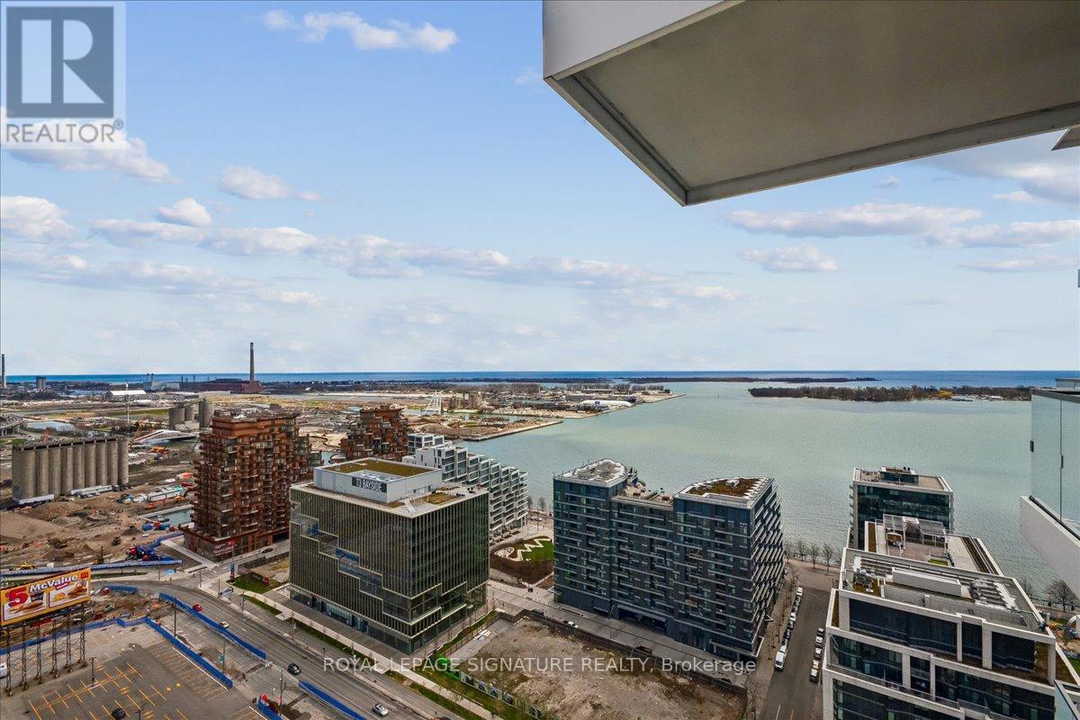 A southeast corner on the 27th floor of Monde is a specific kind of Toronto address. Morning light arrives early and the lake sits unobstructed in front of you. Internationally acclaimed architect Moshe Safdie designed this building with that view in mind; floor-to-ceiling windows, a large balcony, and glass pulled to the edge.This one-bedroom suite is well proportioned and move-in ready: 9-foot smooth ceilings, soft-close kitchen cabinetry, and a clean three-piece bath. The bedroom faces the water, so the lake is the first thing you see in the morning.Steps to Sherbourne Common, Sugar Beach, and the waterfront boardwalk. Loblaws and George Brown are around the corner. The Financial District is a short commute or an easy walk on a good day. Building amenities include a rooftop pool, fitness studio, concierge, and over 19,000 sq ft of indoor and outdoor resident space. (id:4555)
