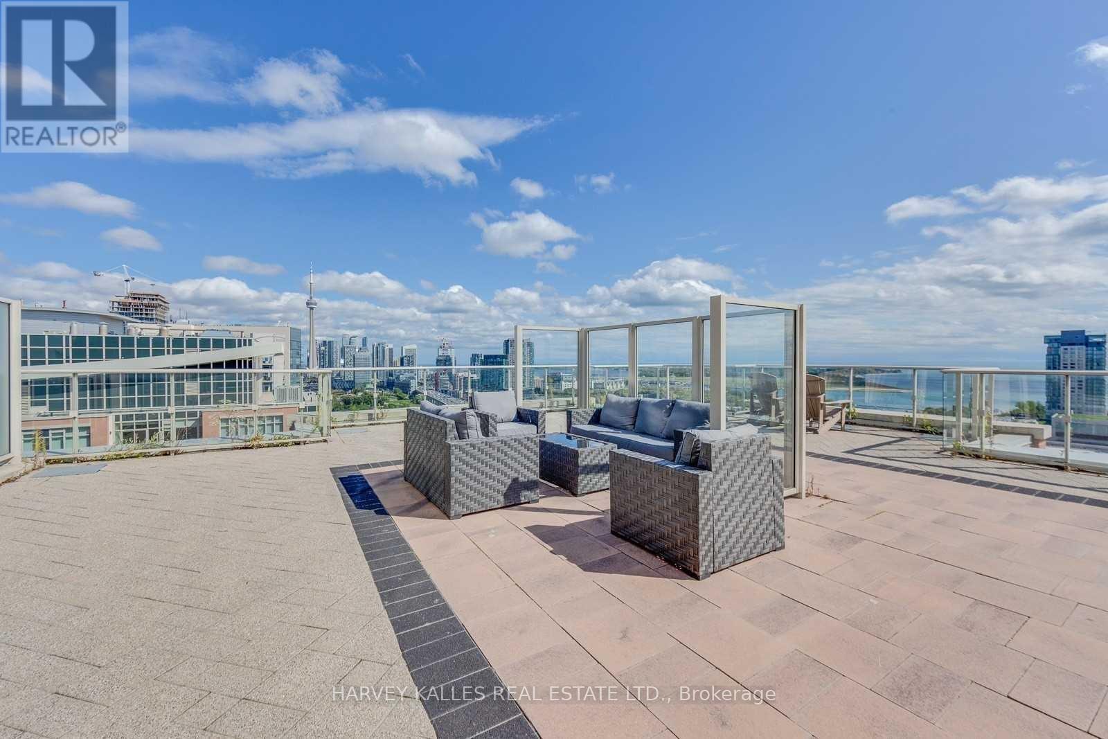 Bright 1-Bedroom + Den Suite with 2 washrooms and a rarely offered 3rd-floor patio, located in the highly sought-after Liberty Village neighbourhood. Discover the perfect blend of urban convenience and serene retreat in this beautiful suite, featuring a rare walk-out to a park-like patio with lush grass and seating-ideal for walking your dog or enjoying evening relaxation. Sunlight fills the open-concept, functional layout. The primary bedroom boasts a double glass-door closet, 4-piece ensuite, abundant windows, and direct access to the patio. The versatile den with a closet can serve as a home office or second bedroom. The kitchen is equipped with granite countertops, a breakfast bar, and stainless-steel appliances-perfect for both everyday living and entertaining. Building amenities include 24-hour concierge, indoor pool and sauna, fully equipped gym, party and media rooms, golf simulator, bowling alley, visitor parking, and more. Prime Liberty Village location steps from vibrant cafes, restaurants, TTC, GO Station, and waterfront parks. Enjoy the neighbourhood's green spaces and the perfect mix of historic charm with modern flair. This move-in ready condo with a unique outdoor space is a rare find in Toronto's Liberty Village. (id:4555)