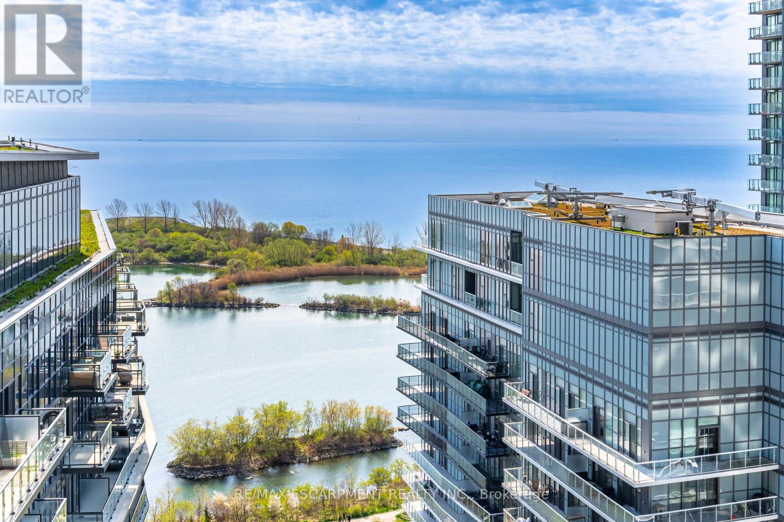 Welcome to Water's Edge! A stunning corner 2-bedroom, 1-bath suite with beautiful city & lake views. Features include 9 ft ceilings, floor-to-ceiling windows, laminate floors, quartz counters, stainless steel appliances, and a large wraparound balcony. Includes parking, locker, and ensuite laundry. Enjoy resort-style amenities: 24-hr concierge, fitness centre, pool & hot tub, sauna, billiards room, rooftop terrace, theatre, party room, and guest suites. Perfectly located steps to Humber Bay Shores Park, waterfront trails, shops, cafes, dining, transit, and just minutes to the Gardiner Expressway/QEW. A great opportunity to enjoy luxury waterfront living with urban convenience. (id:4555)