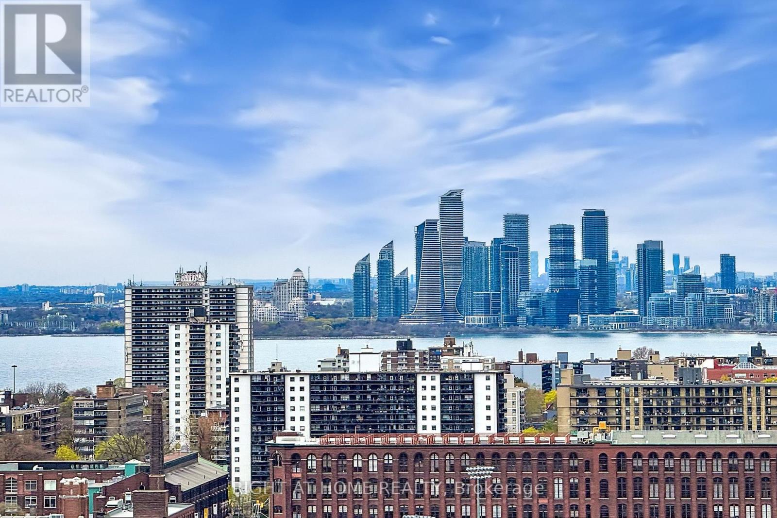 Welcome to this stunning 2-bedroom plus Den, 2-bath corner Suite in the heart of Liberty Village! This modern and bright suite offers 893 Sq Ft of living space on a high floor, providing breathtaking sunset views. The open concept living/dining area features a thoughtfully designed layout with floor-to-ceiling windows that fill the space with natural light. The gourmet kitchen has full-sized stainless steel appliances and a spacious island with a convenient breakfast bar. A stone wall and a cozy fireplace enhance the inviting living room, perfect for relaxation. The primary bedroom includes a large closet, a private balcony walkout, and a luxurious 4-piece ensuite. The second bedroom features a walk-in closet and easy access to a second bathroom with a generous walk-in shower. This vibrant location is just steps away from some of the best restaurants, bars, cafes, stores, parks, and waterfront trails. Convenient access to the nearby GO station and King Streetcar allows for a quick commute to downtown. Enjoy hotel-like building amenities including a concierge, gym, party room, and visitor parking. This property combines modern living with a vibrant community atmosphere, making it an ideal choice for your next home! Open house: 25/4, 26/4 - 1:00 PM - 3:00 PM. (id:4555)