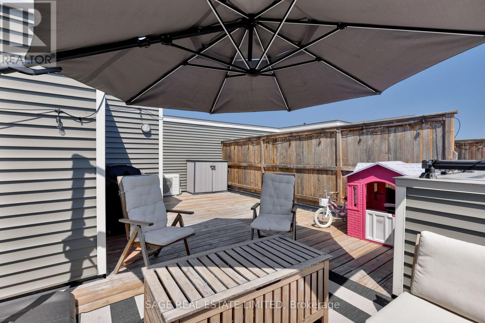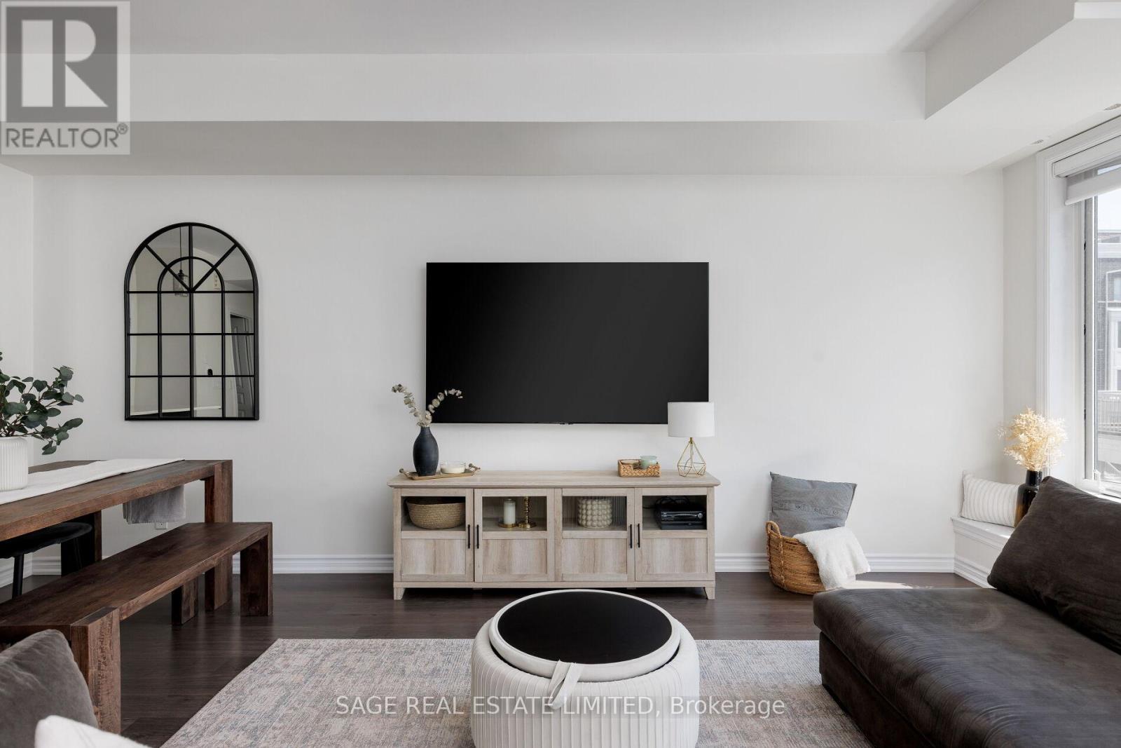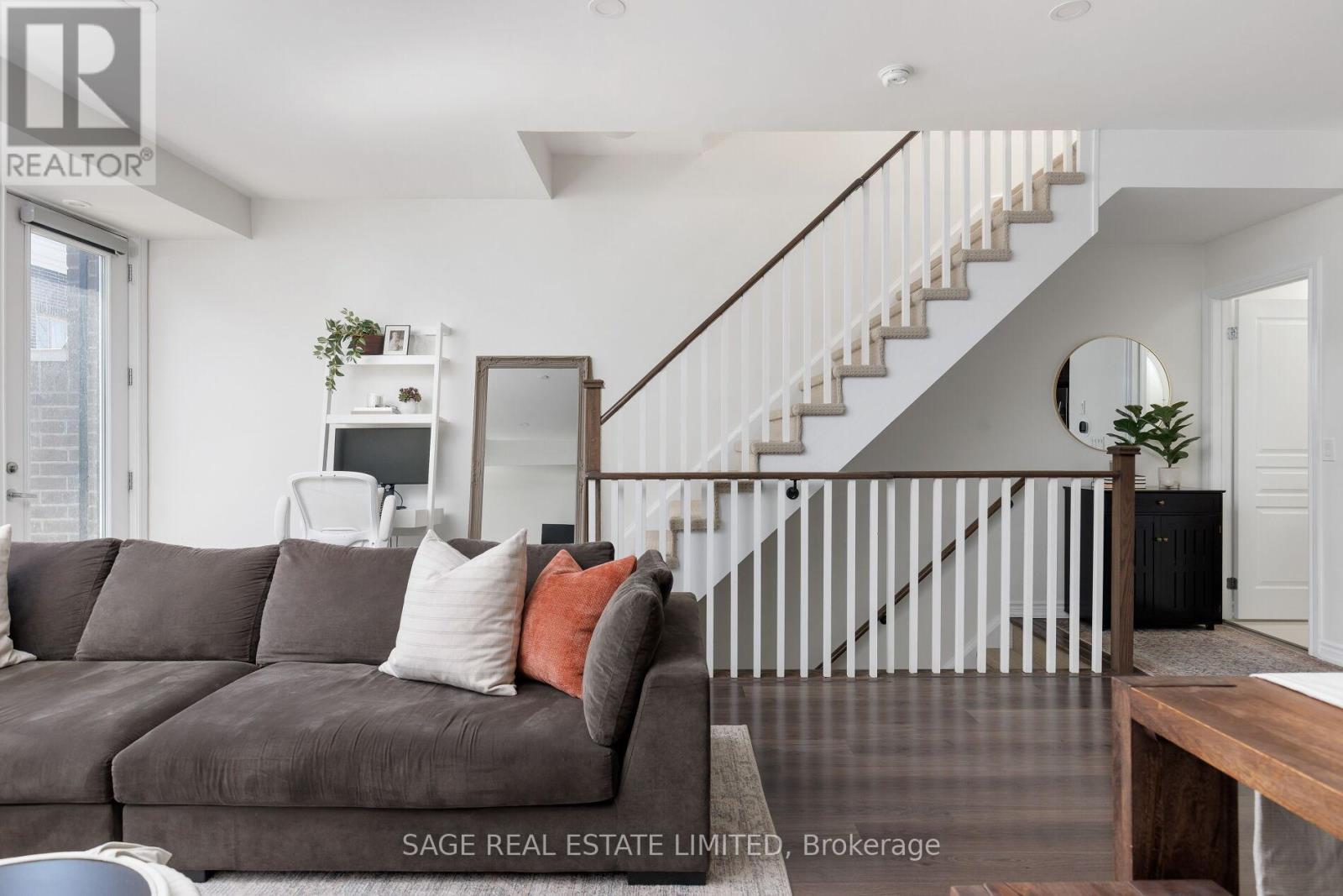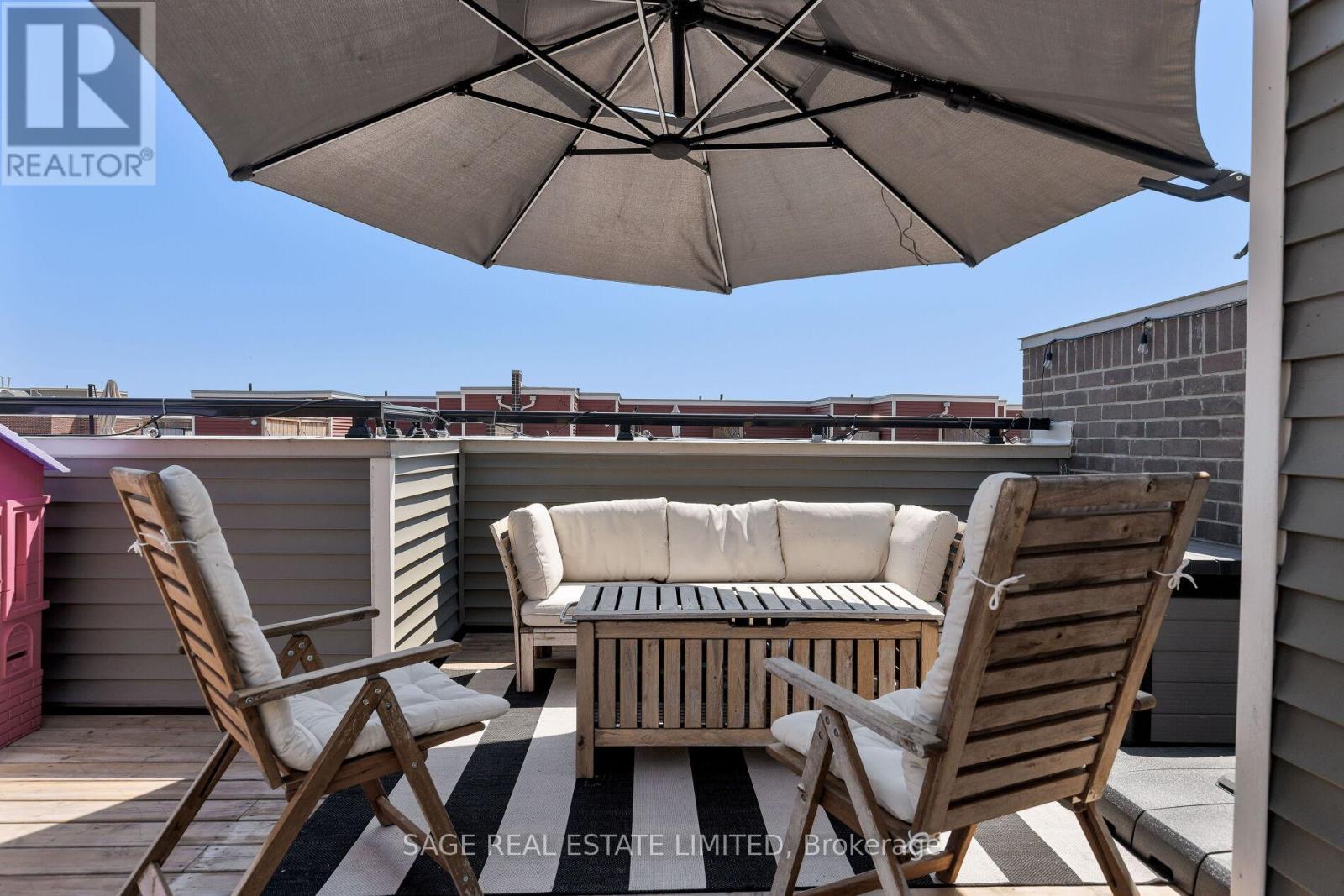 Why face anywhere but South? This stunning, move-in ready townhome hits allof the marks and checks all of the boxes. Featuring an open stairwell (no second entry door here!) that leads directly into the most functional of main floors. The beautiful kitchen with oversized breakfast bar and custom backsplash, a true dining room with enough space for each and every gathering, a large living room that fits the comfiest of sectional couches and the perfect little window bench to watch the world go by. Upstairs, you'll find upgraded hardwood floors leading to two lovely bedrooms bathed in all of that south-facing sunlight during the day and custom blackout blinds when it's time to hit the hay. The primary suite fits a King (we're not lying!), along with the perfect ensuite with upgraded vanity/lights/mirror and hardware and sunny juliette walkout. The cherry on top is the jaw-dropping rooftop terrace perfect for a family BBQ afternoon, a girls (or boys'!) night with your favourite cocktail, or a private solo retreat to escape life's stresses. This community is second to none- you have to experience it to believe it. The friendliest of neighbours willing to walk your dog if you're running late from work. A school bus stop at the corner of Long Branch Avenue and Eastwood Park Gardens so you're little ones always have buddies to walk home with. Waterfront living just doesn't get any better than this. Welcome home! (id:4555)