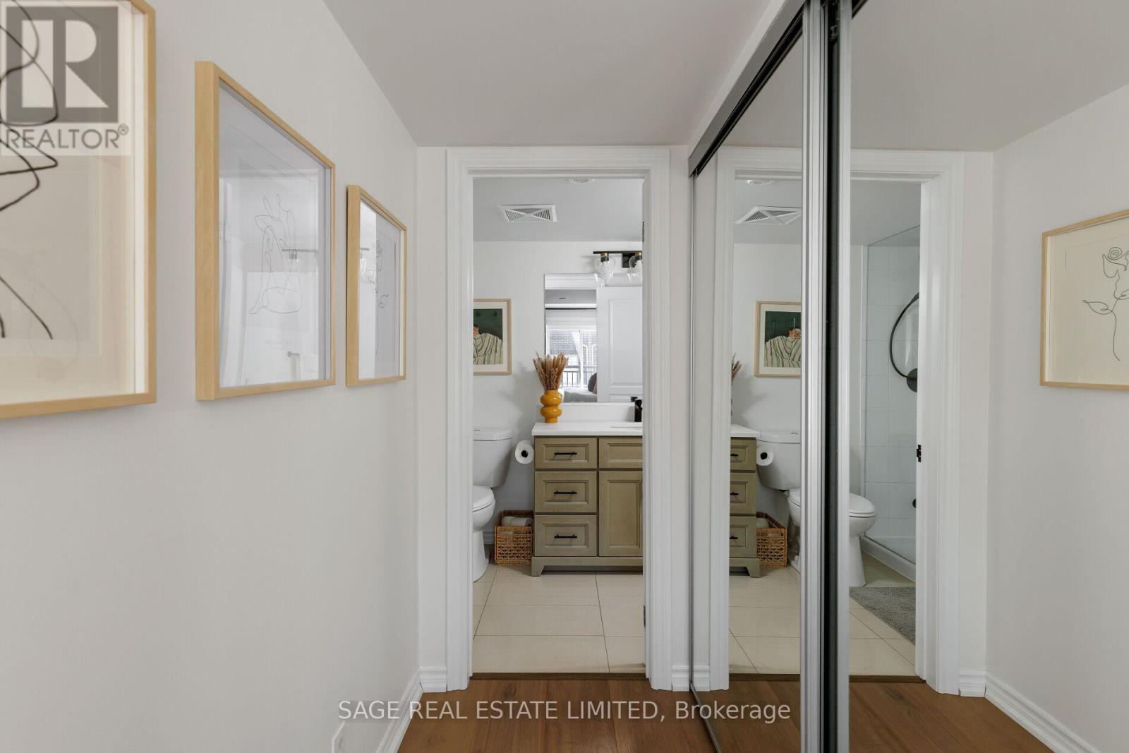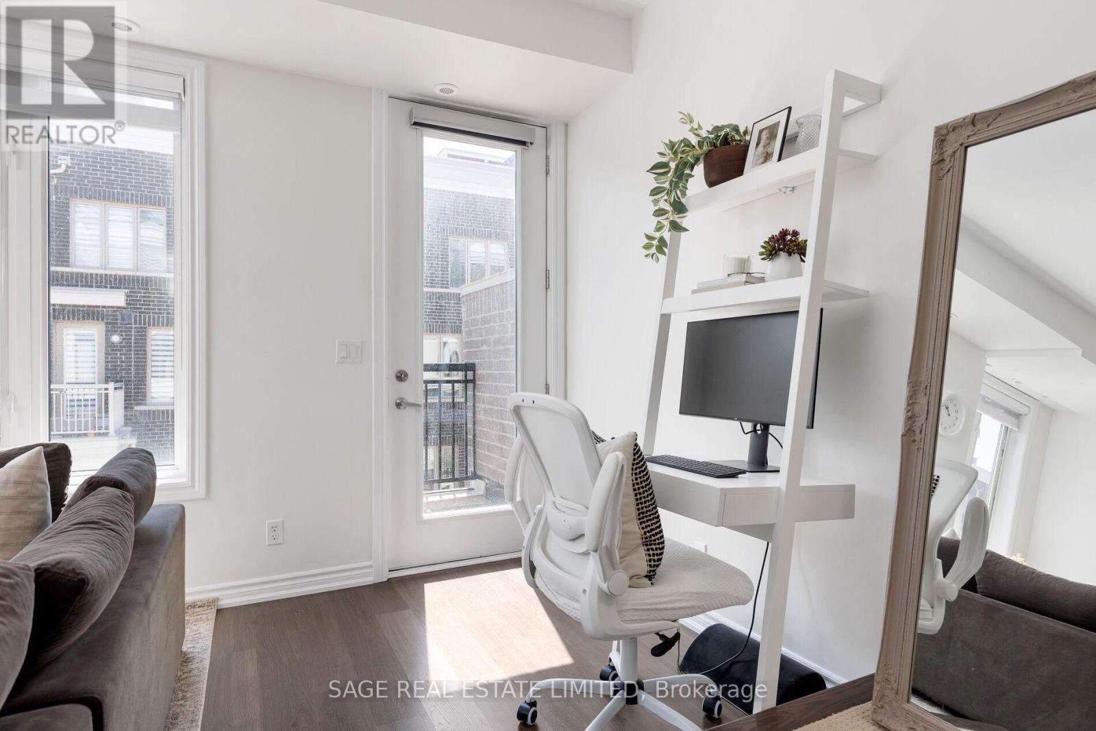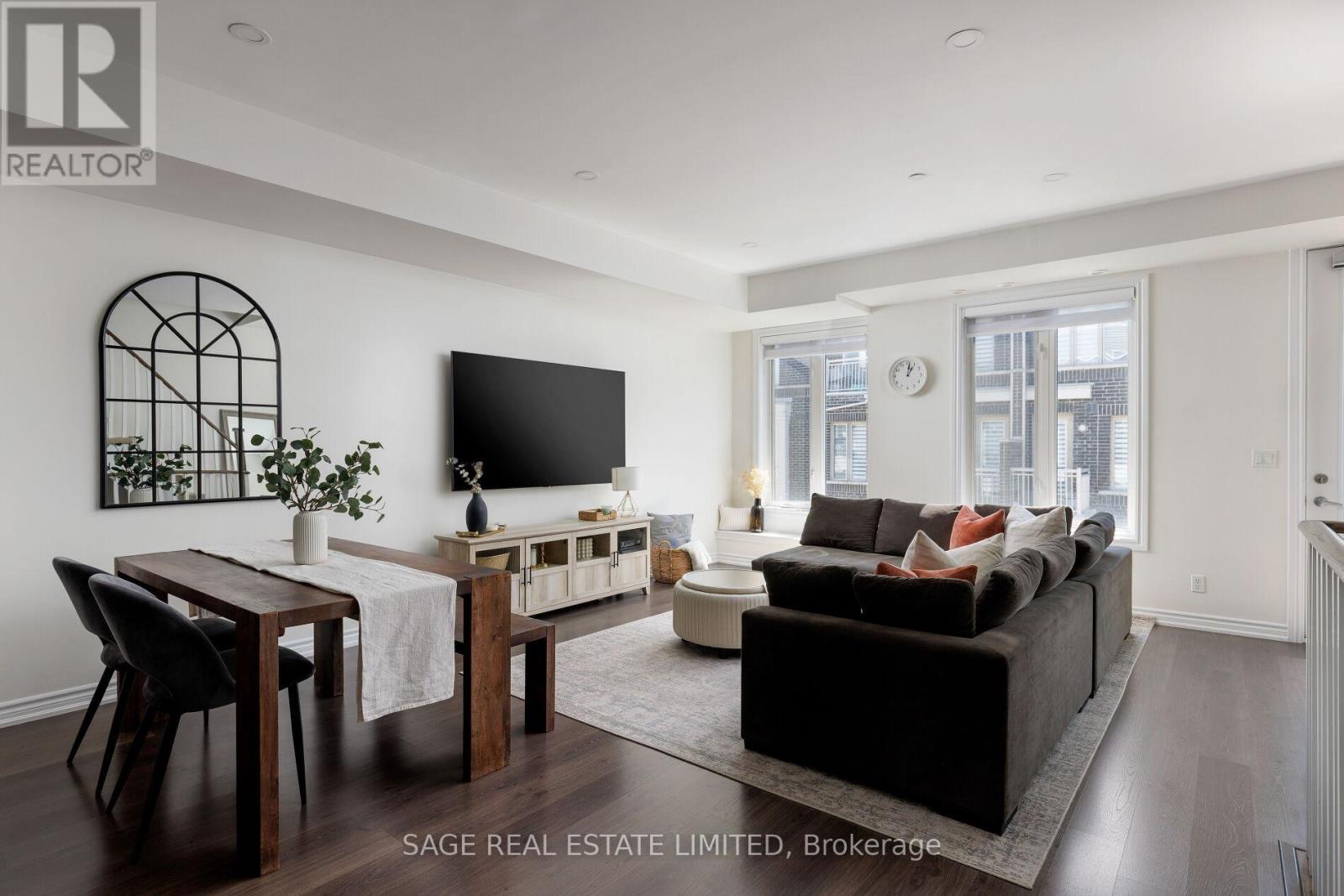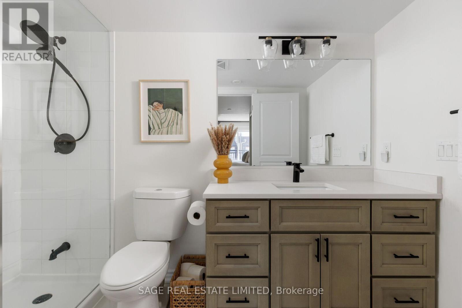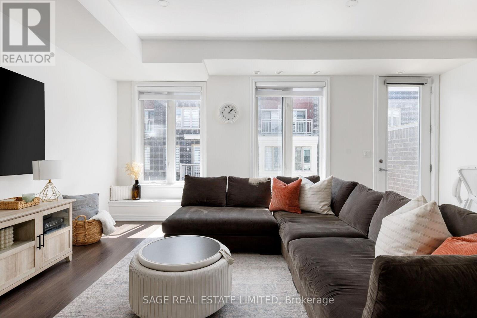 Why face anywhere but South? This stunning, move-in ready townhome hits allof the marks and checks all of the boxes. Featuring an open stairwell (no second entry door here!) that leads directly into the most functional of main floors. The beautiful kitchen with oversized breakfast bar and custom backsplash, a true dining room with enough space for each and every gathering, a large living room that fits the comfiest of sectional couches and the perfect little window bench to watch the world go by. Upstairs, you'll find upgraded hardwood floors leading to two lovely bedrooms bathed in all of that south-facing sunlight during the day and custom blackout blinds when it's time to hit the hay. The primary suite fits a King (we're not lying!), along with the perfect ensuite with upgraded vanity/lights/mirror and hardware and sunny juliette walkout. The cherry on top is the jaw-dropping rooftop terrace perfect for a family BBQ afternoon, a girls (or boys'!) night with your favourite cocktail, or a private solo retreat to escape life's stresses. This community is second to none- you have to experience it to believe it. The friendliest of neighbours willing to walk your dog if you're running late from work. A school bus stop at the corner of Long Branch Avenue and Eastwood Park Gardens so you're little ones always have buddies to walk home with. Waterfront living just doesn't get any better than this. Welcome home! (id:4555)