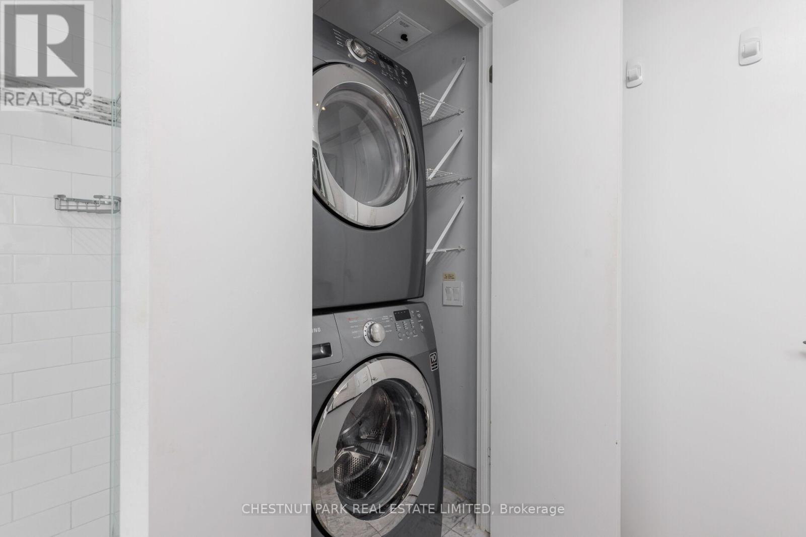 Welcome home to this fully renovated 2+1 bedroom, 2 bathroom condo situated in the heart of Toronto's Harbourfront neighbourhood. Featuring over 1300 square feet, this unit exceeds expectations in every way with an exceptionally functional floor plan and renovations throughout, including a fully upgraded chef's kitchen, new flooring and new appliances. Enter into a spacious foyer with double closet and easy access to a well-appointed 3-piece bathroom with ensuite laundry. The living/dining room is open concept with fabulous flow to the kitchen that features a built-in peninsula with seating and includes and a juliette balcony with south-facing lake views. The king-sized primary bedroom offers a spacious retreat complete with a 4-piece ensuite bathroom and walk-in closet while the second bedroom is also perfectly well appointed offering wonderful balance and tranquility. The den, currently used as an office, offers additional flexibility as a work from home space. 1 parking space and 1 locker are included. Enjoy all the best that this incredible neighbourhood has to offer with every amenity imaginable at your door including easy access to transit, restaurants, entertainment and shopping not to mention the incredible outdoor living and recreational opportunities that exist along the waterfront including the Martin Goodman Trail, Toronto Music Garden and more! Unit is also available partially furnished. (id:4555)