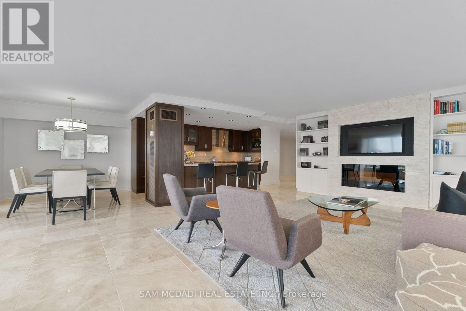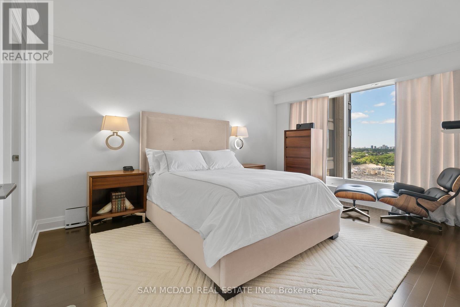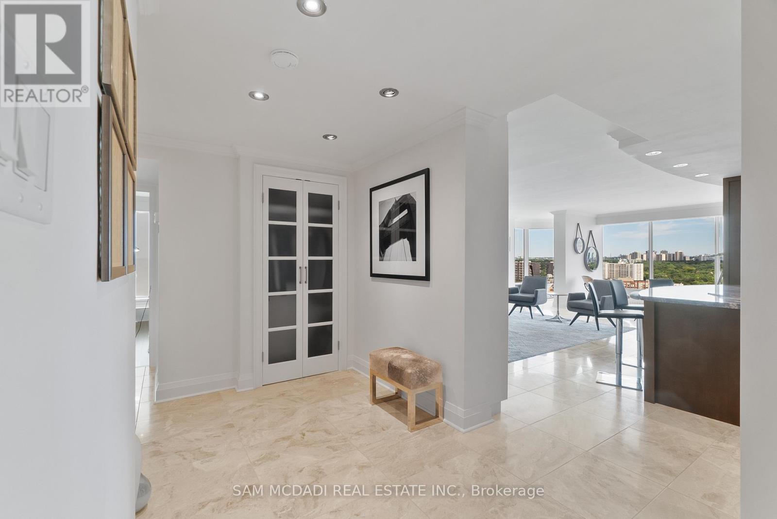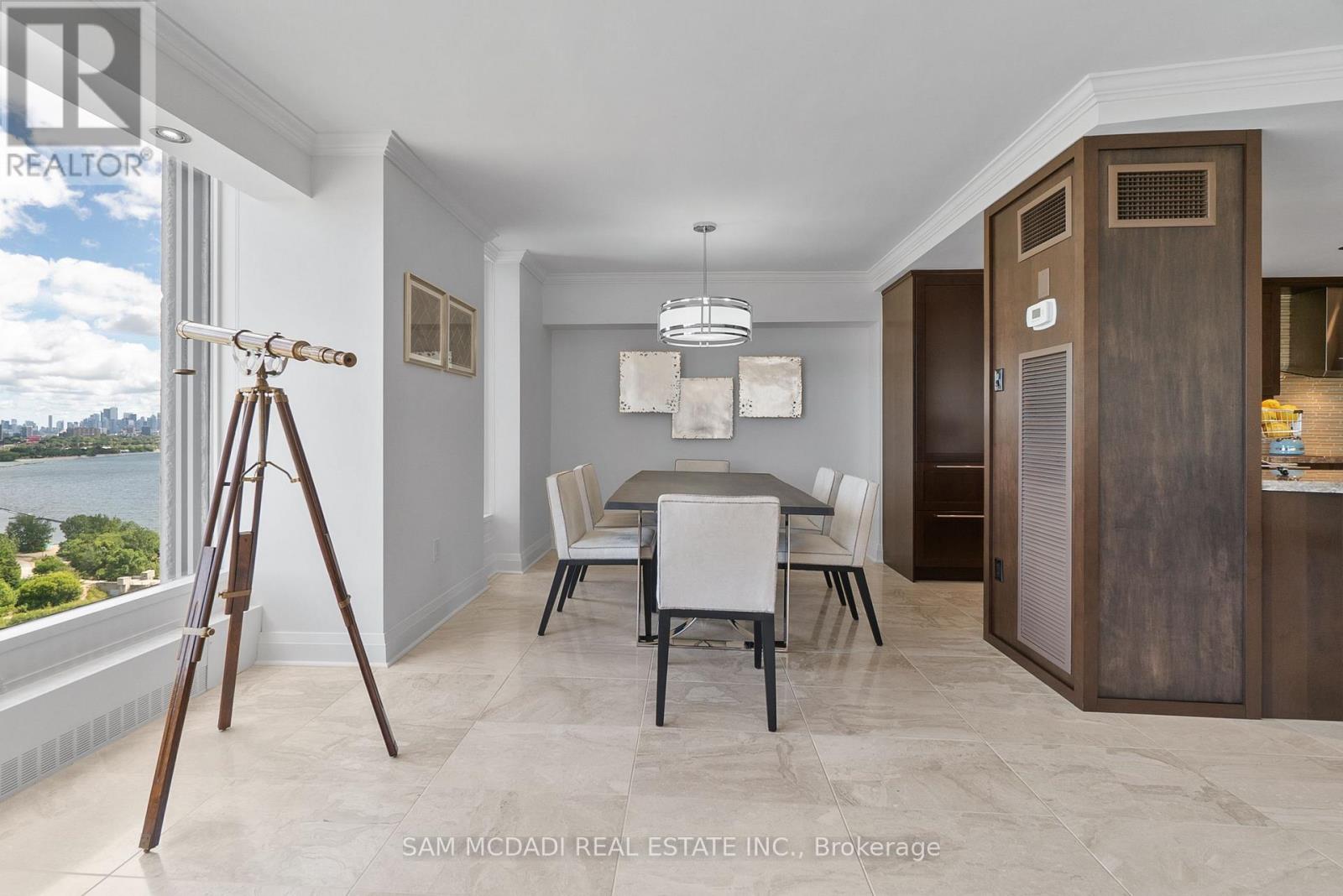 Welcome to Suite 2212 in the iconic Palace Pier. This stunning 2 Bed 2 Bath suite is meticulously renovated. It offers an uninterrupted, forever view, of the downtown skyline to the east and the natural beauty of High Park and the Humber River to the north. No detail was spared in the redesign, with custom millwork and cabinetry built specifically for the kitchen, living room, bathrooms, bedrooms, closets, and ensuite. High-end materials elevate every space, including marble floors, countertops and showers. Unique among the buildings stack is the open concept kitchen, dining room and living room layout. The chefs kitchen is outfitted with premium Miele appliances, including a 30 convection oven with temperature probe, induction cooktop, exhaust fan, dishwasher, and built-in coffee machine. A Sub-Zero fridge with an integrated icemaker adds to the high-performance setup. The laundry closet, relocated from the kitchen to the hallway to improve functionality and add storage to the suite, hosts a professional series Miele stainless steel washer and dryer. The bathrooms and kitchen feature Gingers plumbing fixtures, including high-end faucets and luxurious rain shower heads, and two Duravit WCs. The bathrooms also feature heated floors and the ensuite shower includes a built-in teak bench. Elte- lighting fixtures in the primary bedroom further reflect the homes exceptional quality. A 40-foot-long foyer offers a gallery-like entrance for displaying art or photography. (id:4555)