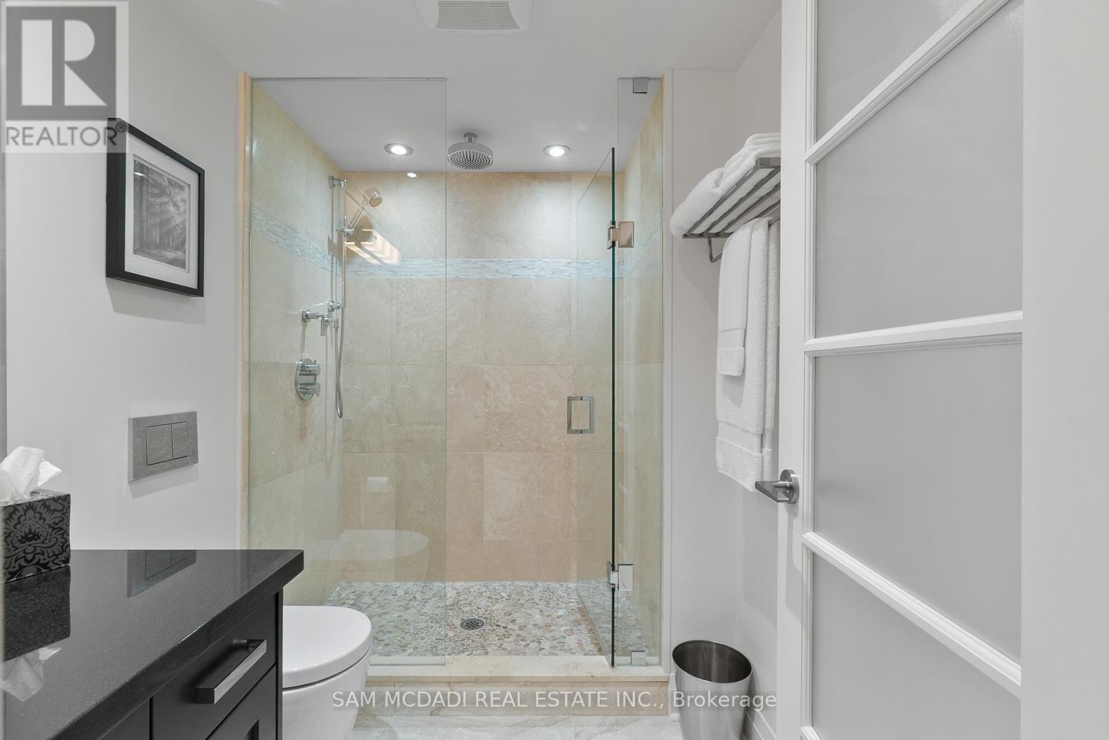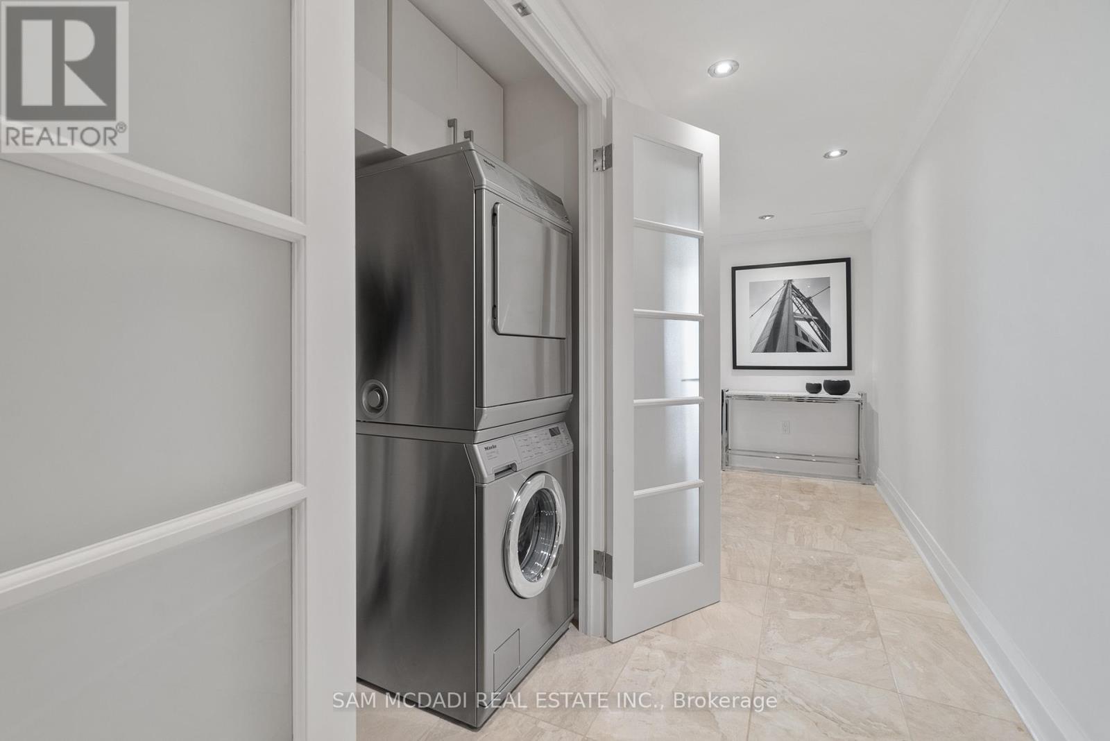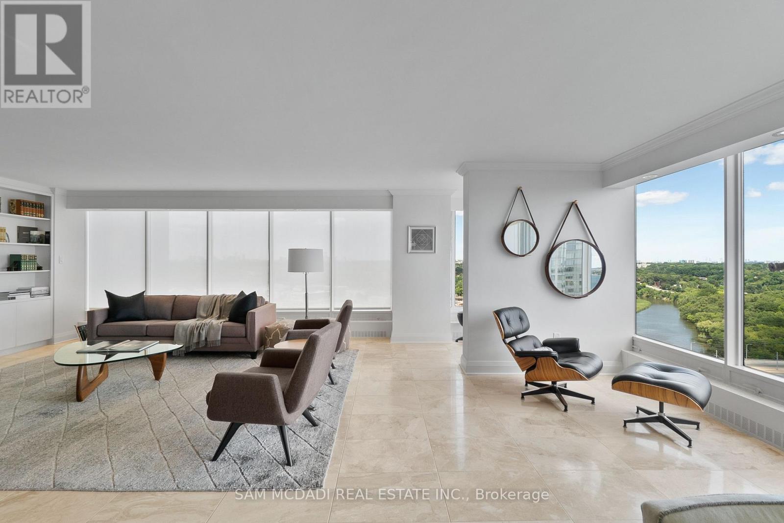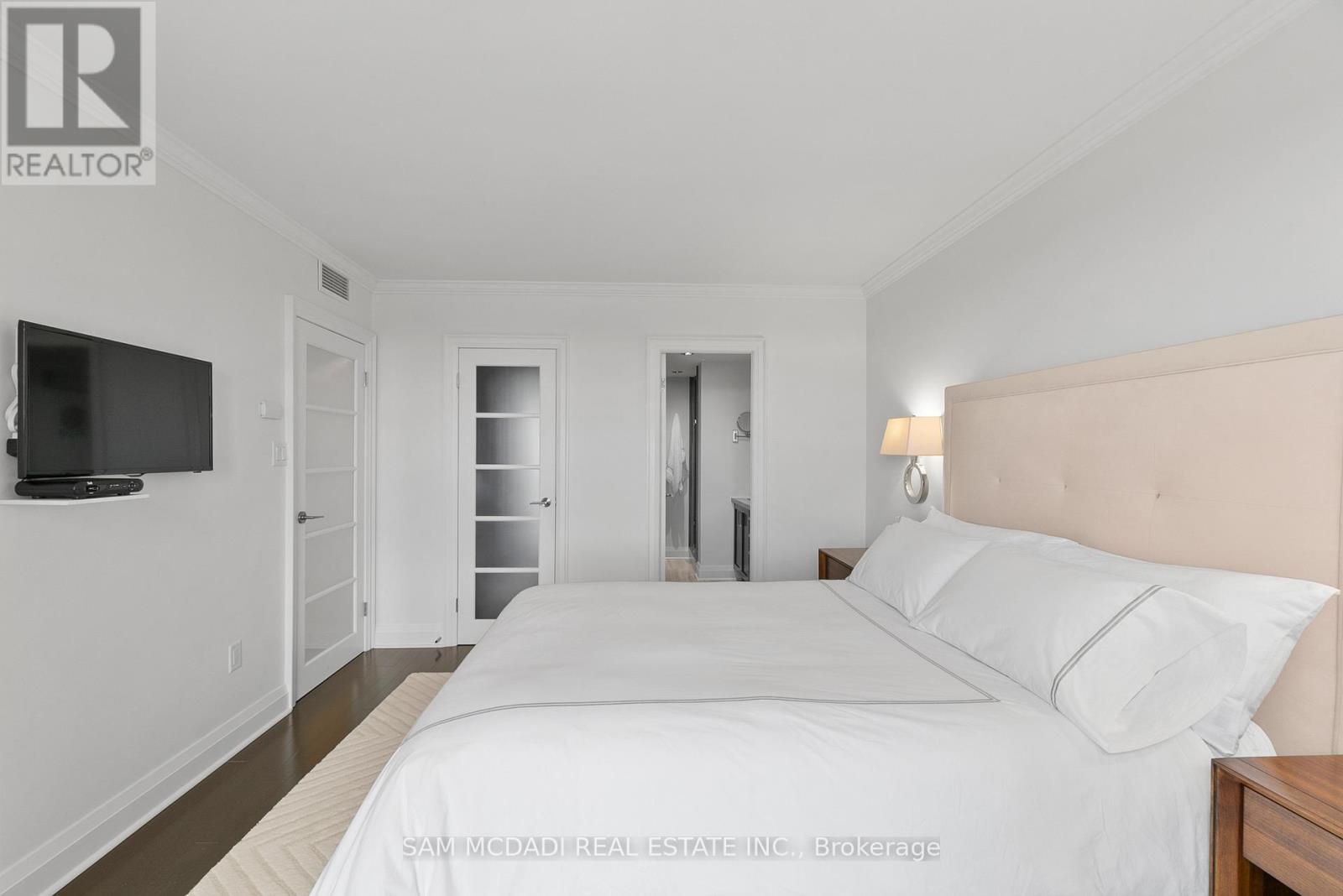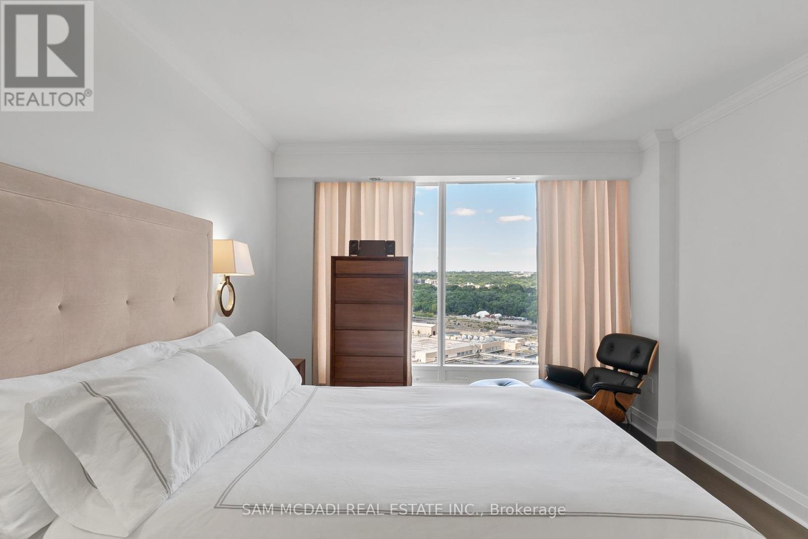 Welcome to Suite 2212 in the iconic Palace Pier. This stunning 2 Bed 2 Bath suite is meticulously renovated. It offers an uninterrupted, forever view, of the downtown skyline to the east and the natural beauty of High Park and the Humber River to the north. No detail was spared in the redesign, with custom millwork and cabinetry built specifically for the kitchen, living room, bathrooms, bedrooms, closets, and ensuite. High-end materials elevate every space, including marble floors, countertops and showers. Unique among the buildings stack is the open concept kitchen, dining room and living room layout. The chefs kitchen is outfitted with premium Miele appliances, including a 30 convection oven with temperature probe, induction cooktop, exhaust fan, dishwasher, and built-in coffee machine. A Sub-Zero fridge with an integrated icemaker adds to the high-performance setup. The laundry closet, relocated from the kitchen to the hallway to improve functionality and add storage to the suite, hosts a professional series Miele stainless steel washer and dryer. The bathrooms and kitchen feature Gingers plumbing fixtures, including high-end faucets and luxurious rain shower heads, and two Duravit WCs. The bathrooms also feature heated floors and the ensuite shower includes a built-in teak bench. Elte- lighting fixtures in the primary bedroom further reflect the homes exceptional quality. A 40-foot-long foyer offers a gallery-like entrance for displaying art or photography. (id:4555)
