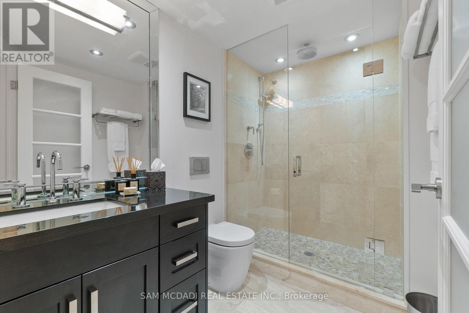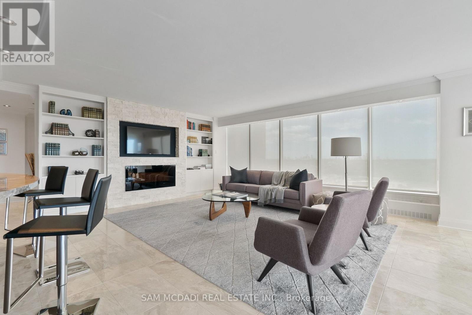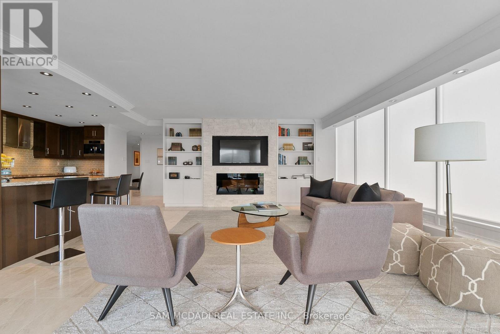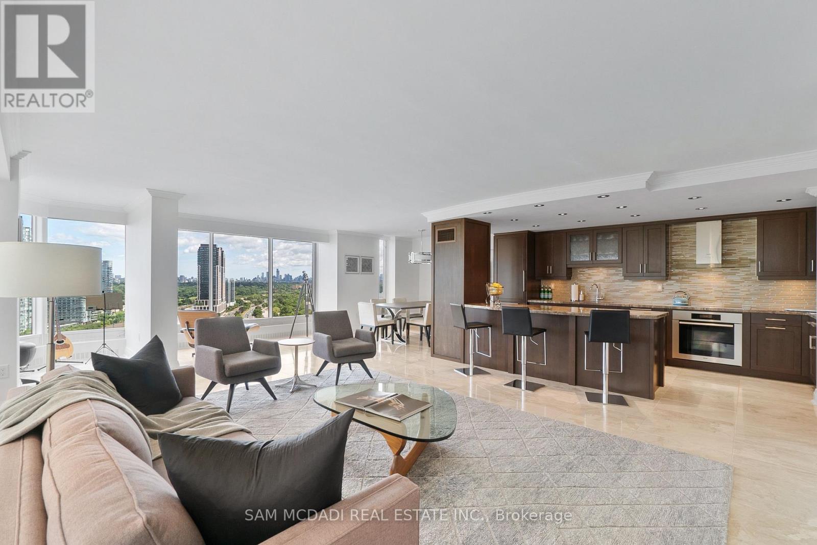 Welcome to Suite 2212 in the iconic Palace Pier. This stunning 2 Bed 2 Bath suite is meticulously renovated. It offers an uninterrupted, forever view, of the downtown skyline to the east and the natural beauty of High Park and the Humber River to the north. No detail was spared in the redesign, with custom millwork and cabinetry built specifically for the kitchen, living room, bathrooms, bedrooms, closets, and ensuite. High-end materials elevate every space, including marble floors, countertops and showers. Unique among the buildings stack is the open concept kitchen, dining room and living room layout. The chefs kitchen is outfitted with premium Miele appliances, including a 30 convection oven with temperature probe, induction cooktop, exhaust fan, dishwasher, and built-in coffee machine. A Sub-Zero fridge with an integrated icemaker adds to the high-performance setup. The laundry closet, relocated from the kitchen to the hallway to improve functionality and add storage to the suite, hosts a professional series Miele stainless steel washer and dryer. The bathrooms and kitchen feature Gingers plumbing fixtures, including high-end faucets and luxurious rain shower heads, and two Duravit WCs. The bathrooms also feature heated floors and the ensuite shower includes a built-in teak bench. Elte- lighting fixtures in the primary bedroom further reflect the homes exceptional quality. A 40-foot-long foyer offers a gallery-like entrance for displaying art or photography. (id:4555)