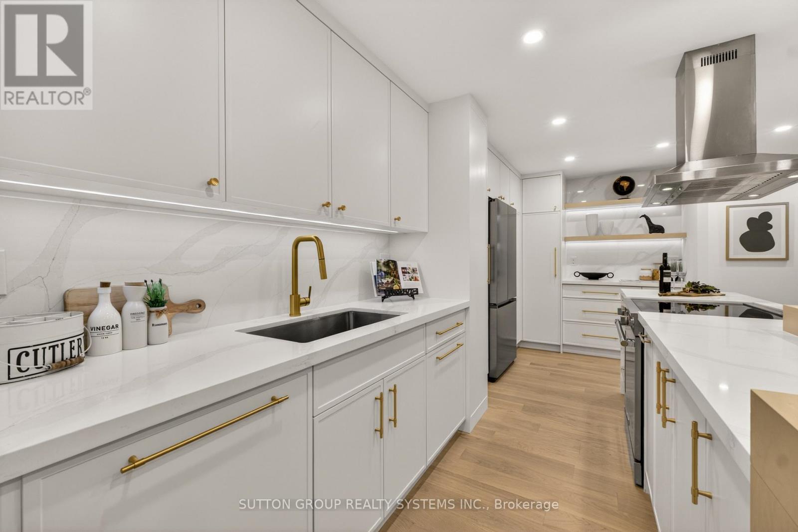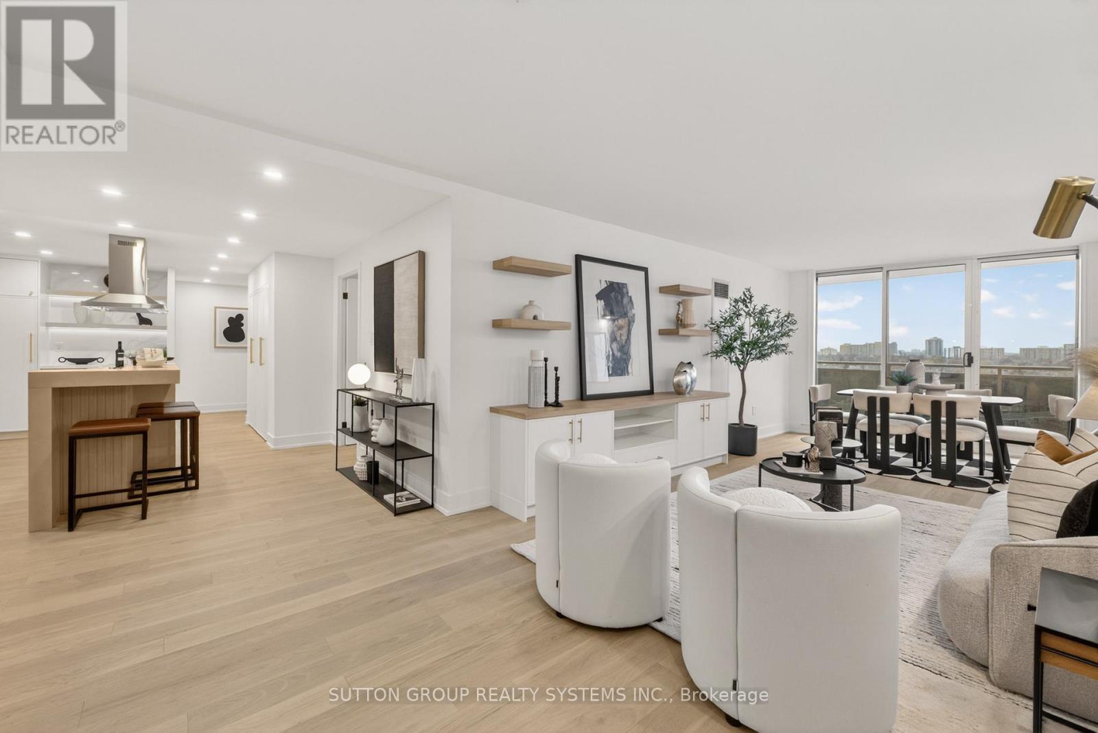 A Down-sizer's Dream!! Be the First to Live in This Stunning, Fully Renovated Unit! Turn-key, Professionally Designed with $$$ Spent on High-End Upgrades! This Bright & Spacious Approx. 1,270 Sq Ft 3 Bedroom, 2 Full Bath Suite Offers One of the Largest Floor Plans in the Building and Includes Rare 2 Parking Spots! - Delivering Exceptional Value! Featuring Natural Oak Engineered Hardwood Flooring Throughout, a Stunning Custom Modern Kitchen with Quartz Countertops, Oversized Waterfall Island with Matching Backsplash, High-End Stainless Steel Appliances, and a Custom Wood Extension of the Island for Bar Seating - Perfect for Entertaining. Enjoy Custom Built-In Closets in Every Bedroom, a Custom Built-In Closet in the Foyer, Brand New Trims & Doors, Smooth Ceilings, Pot Lights, and Luxurious Fully Renovated Bathrooms. The Functional Layout Includes Multiple Walkouts to an Oversized Balcony, Creating Seamless Indoor-Outdoor Living. Additional Highlights Include a Large Ensuite Locker - Ideal for Extra Storage, and All-Inclusive Maintenance Fees Covering Rogers Cable + High-Speed Unlimited Internet. Your Clients Will Love It - Just Move In and Enjoy! **MUST BE SEEN IN PERSON - PHOTOS DO NOT DO IT JUSTICE** (id:4555)