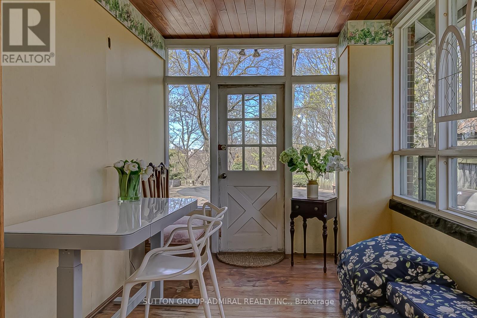 Don't miss this amazing opportunity in the coveted Baby Point area! This beautiful 2.5 story home is set on an impressive 75 by 380 ft RAVINE LOT, perfectly situated in this prestigious enclave, close to the Baby Point Club and many amenities, yet still peaceful & tucked away from the busier neighbouring streets offering a Muskoka-like scenery within the city. This lovely well maintained home retains plenty of the beautiful original character & charm, including unspoiled wood trim, high baseboards, wood-panelled walls and oak floors, wood-burning fireplace & stunning leaded glass windows.**This home boasts approximately 4,000 sq ft of living space across the four finished levels. ** Double car garage, extra parking in the private drive & an INGROUND POOL. **The main floor is designed for both entertaining & family life, featuring an exceptionally spacious formal living room that is anchored by a classic wood-burning fireplace and a gracious dining room, perfect for hosting family and friends. The big family room addition serves as the home's heart, boasting soaring 10-foot ceilings and wrap around floor-to-ceiling windows that frame the MAJESTIC PANORAMIC views. Five spacious bedrooms, including a huge primary bedroom, 4 bathrooms, main-floor office & sunroom. The renovated lower level is a true retreat, complete with a library, renovated bathroom and cedar sauna. The third floor offers lots of potential to create a primary bedroom retreat.** Short stroll to the Humber River trails, TTC, Old Mill or Jane St subway stations, excellent schools and the vibrant shops and restaurants of Bloor West Village. Join the Baby Point Club, which offers fabulous social and family activities, tennis, lawn bowling and much more. This is a rare opportunity for the discerning buyer, offering many possibilities, SPACE , PRIVACY AND PRESTIGE. (id:4555)
