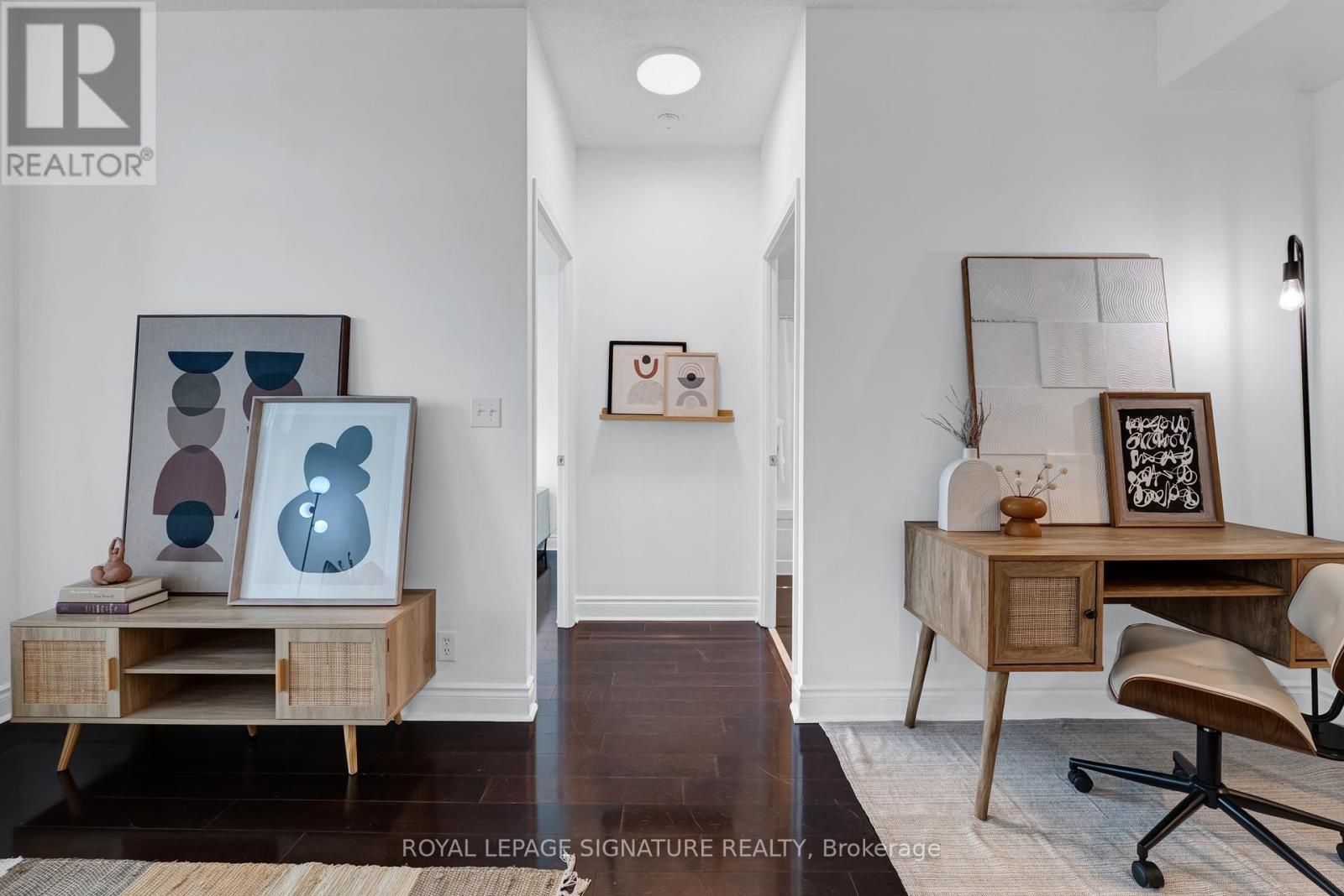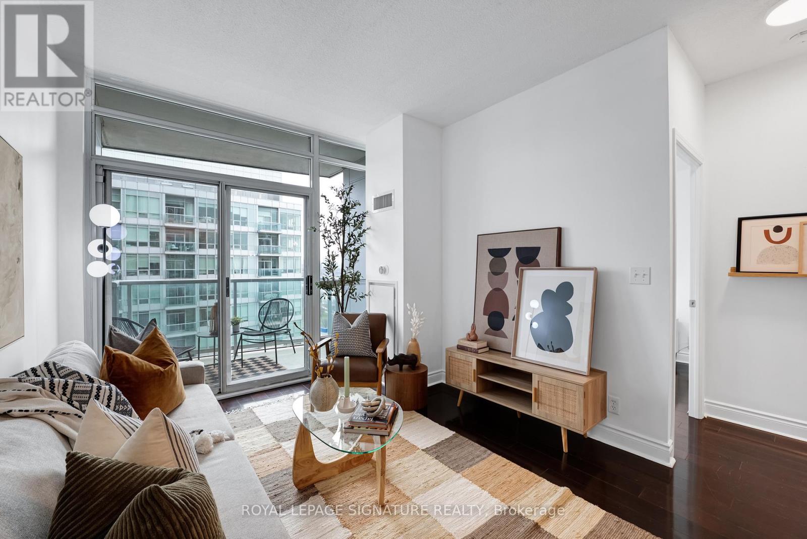 Welcome to this bright and airy lower penthouse one bedroom, one bathroom suite offering a highly functional, open-concept layout with no wasted space. Soaring 10-foot ceilings and floor-to-ceiling windows with southeast views in both the living room and bedroom flood the space with natural light. Take in a stunning blend of views, city skyline to the east, sparkling lake vistas to the south, and the serene greenery of High Park to the north. The modern upgraded kitchen is designed for both style and function, featuring stainless steel appliances, stone countertops, and ample cupboards for storage. Rich dark hardwood floors add warmth and sophistication throughout with space for a dining area, a work from home set-up, and a comfortable living room. A true move-in-ready home, offering the perfect canvas for your personal touches! Ideally located just steps from Sunnyside Beach, High Park, and the Martin Goodman Trail, this address delivers the best of nature and urban convenience. Enjoy easy access to multiple TTC routes, including the 24-hour Queen streetcar, or a quick 15-minute drive to Union Station. Residents benefit from premium amenities including a 24-hour concierge, fitness centre, yoga and ping-pong room, cards and billiards lounge, meeting and party rooms, and a rooftop serenity garden complete with BBQs, picnic areas, and visitor parking. (id:4555)