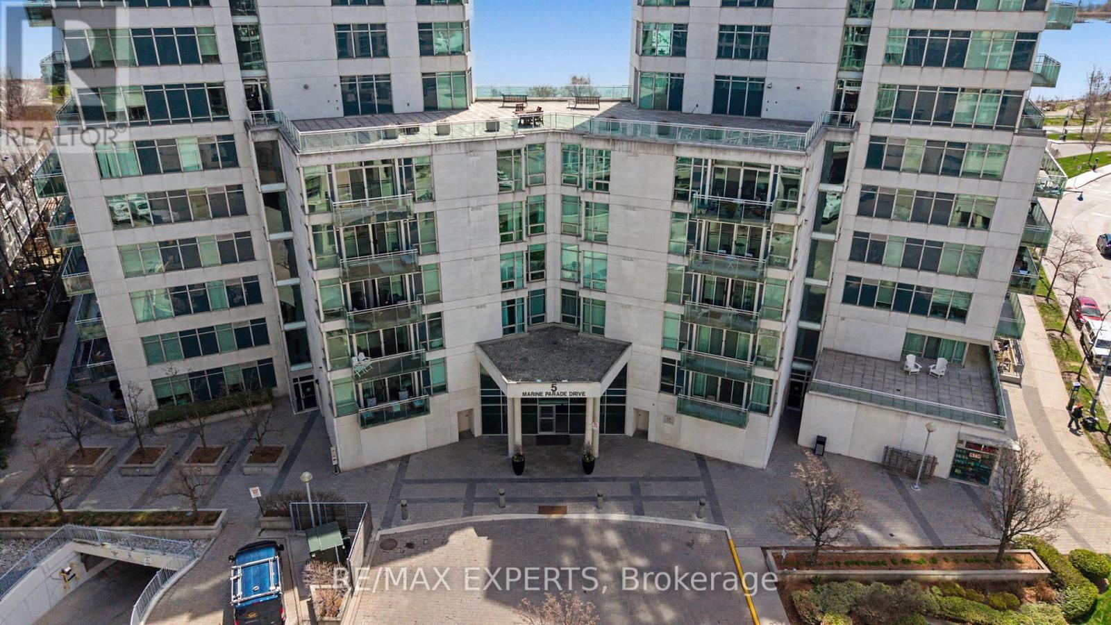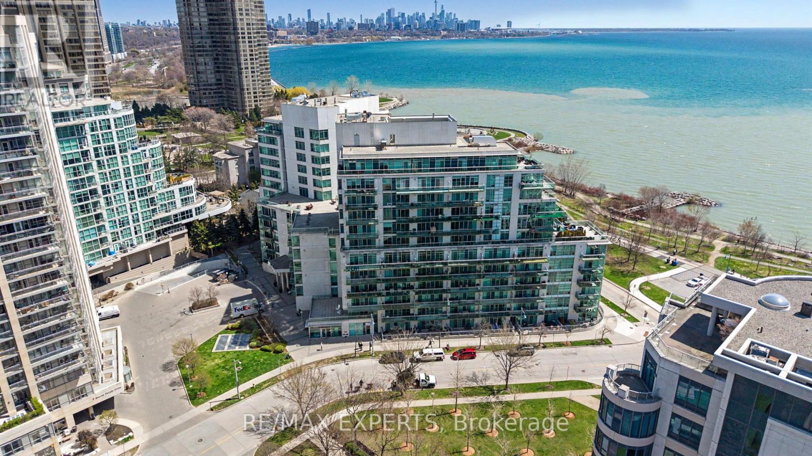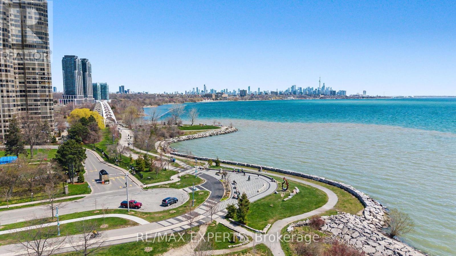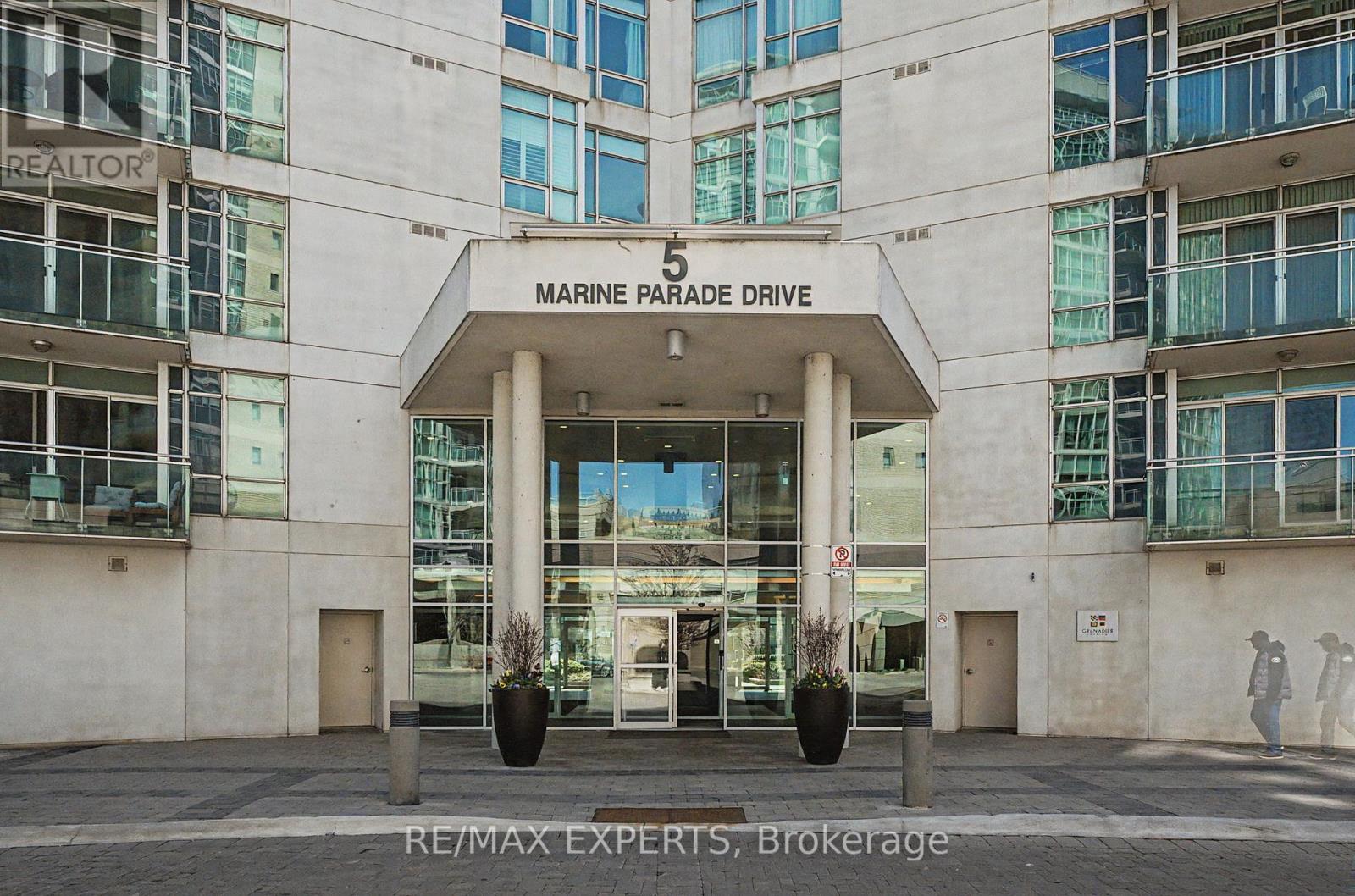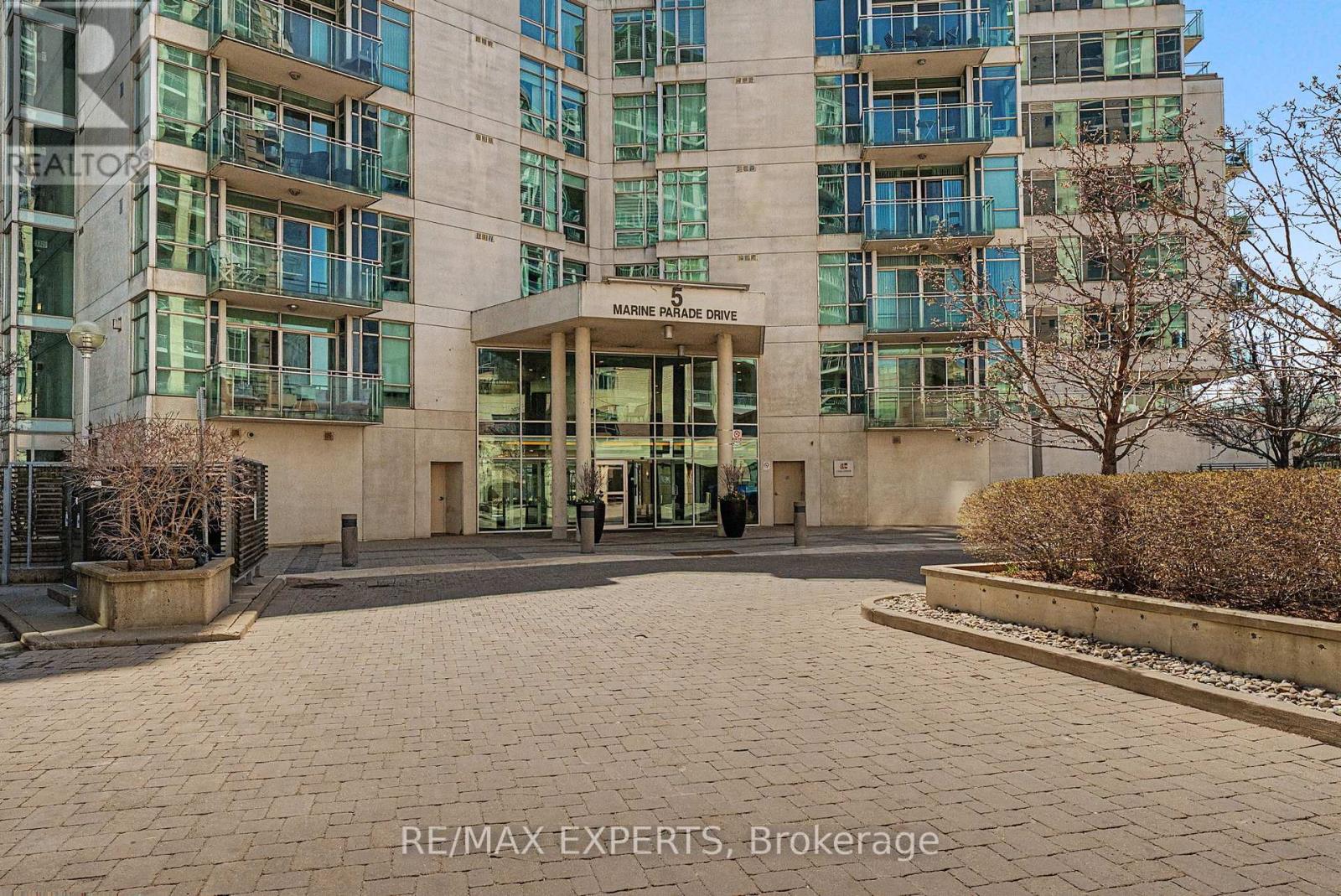 Welcome To Waterfront Living At Its Finest In The Heart Of Humber Bay Shores. This Beautifully Updated 1 Bedroom + Den, 1 Bathroom Suite At 5 Marine Parade Dr Offers A Peaceful Lakeside Lifestyle With Stunning Lake Views And A Bright, Functional Layout Perfect For End Users, Downsizers Or Professionals Seeking A Quiet Escape Minutes From The City. The Open Concept Living/Dining Area Flows Seamlessly With Luxury Laminate Flooring, Creating A Warm And Modern Feel Throughout. The Kitchen Features Professionally Painted Cabinetry, Quartz Countertops, Stainless Steel Appliances And A Clean Contemporary Finish. The Bathroom Has Also Been Enhanced With Quartz Countertops, Adding To The Suite's Polished Design. The Spacious Den Offers Excellent Flexibility For A Home Office, Reading Nook Or Guest Space. Major Updates Include Luxury Laminate Flooring, Quartz Counters In Kitchen & Bath, Stainless Steel Appliances, Professionally Painted Cabinets And A New HVAC Unit With Upgraded Ecobee Thermostat. Enjoy Morning Coffee Or Evening Sunsets With Lake Ontario As Your Backdrop. Steps To The Waterfront, Humber Bay Shores Park, Martin Goodman Trail, Cafes, Restaurants, Grocery, Transit, Parks And Scenic Walking/Biking Trails. Quick Access To The Gardiner, Lakeshore, Downtown Toronto, Mimico GO, TTC And The Best Of Etobicoke's Waterfront Community. A Rare Opportunity To Own A Serene Lakeside Suite With Urban Convenience At Your Doorstep. (id:4555)