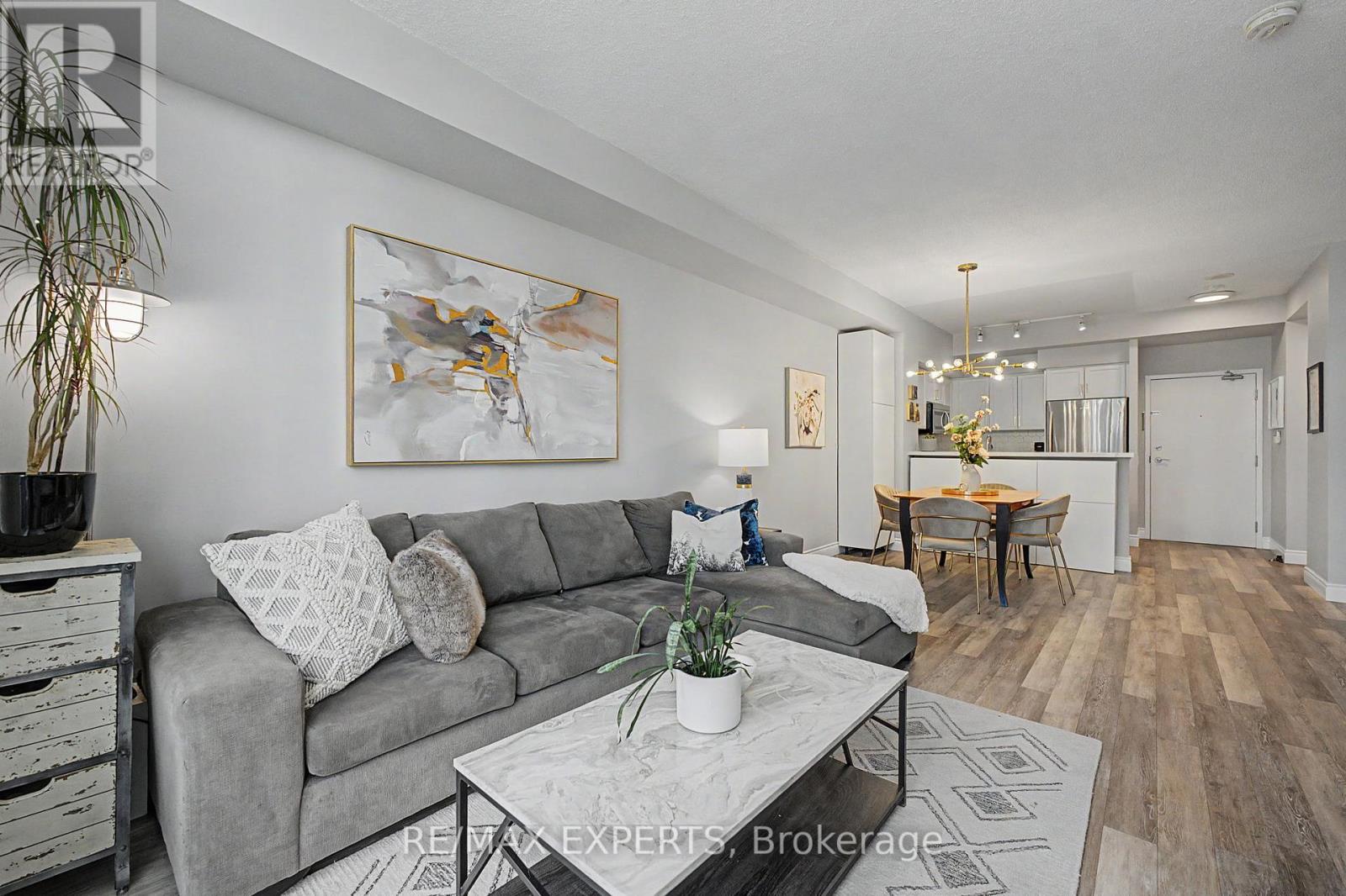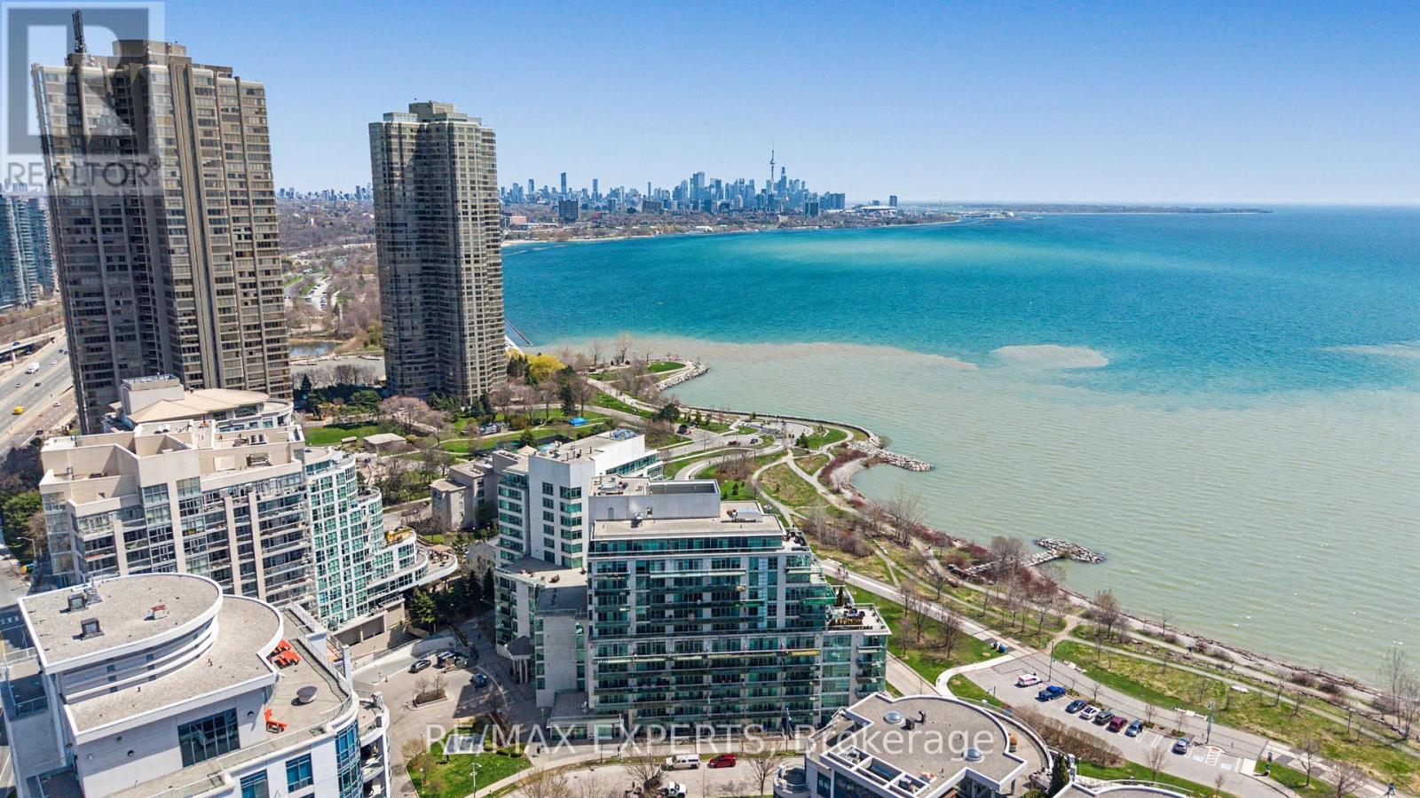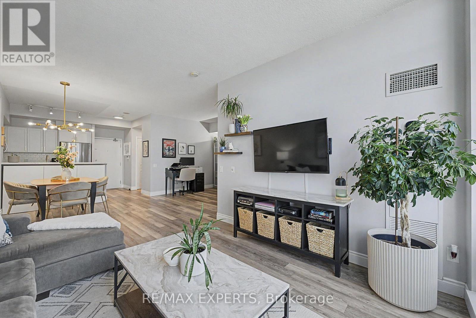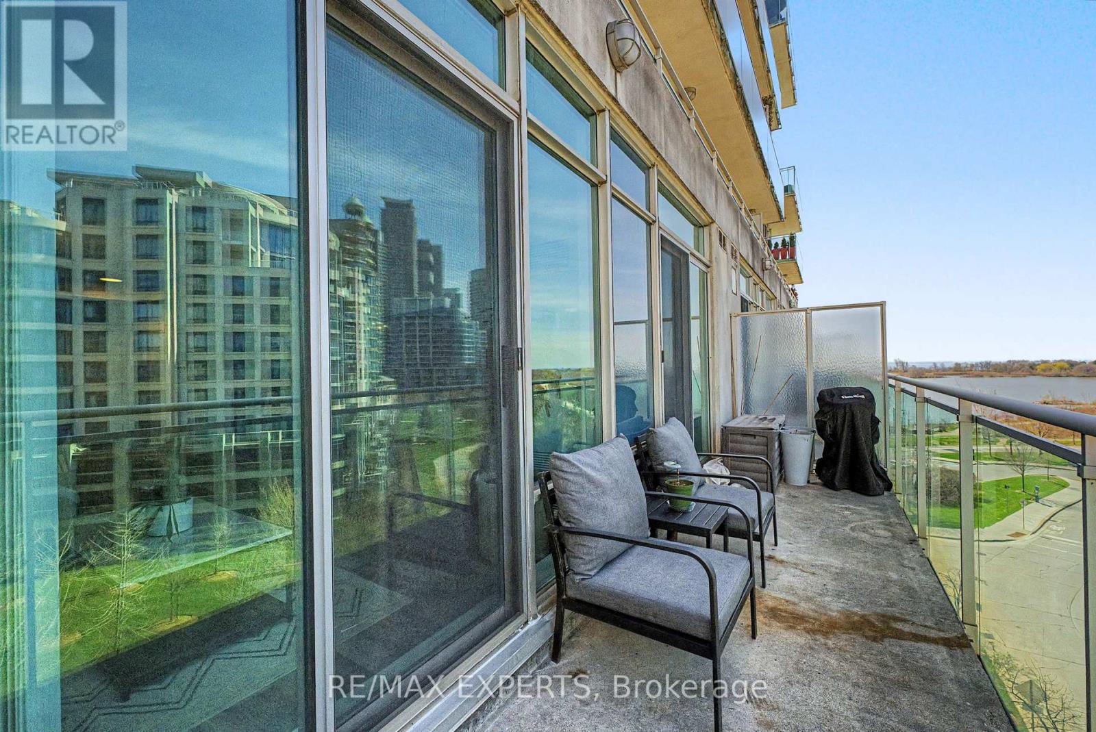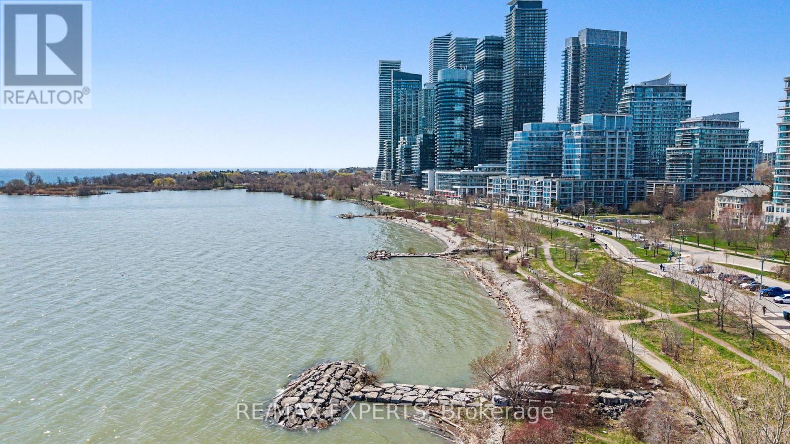 Welcome To Waterfront Living At Its Finest In The Heart Of Humber Bay Shores. This Beautifully Updated 1 Bedroom + Den, 1 Bathroom Suite At 5 Marine Parade Dr Offers A Peaceful Lakeside Lifestyle With Stunning Lake Views And A Bright, Functional Layout Perfect For End Users, Downsizers Or Professionals Seeking A Quiet Escape Minutes From The City. The Open Concept Living/Dining Area Flows Seamlessly With Luxury Laminate Flooring, Creating A Warm And Modern Feel Throughout. The Kitchen Features Professionally Painted Cabinetry, Quartz Countertops, Stainless Steel Appliances And A Clean Contemporary Finish. The Bathroom Has Also Been Enhanced With Quartz Countertops, Adding To The Suite's Polished Design. The Spacious Den Offers Excellent Flexibility For A Home Office, Reading Nook Or Guest Space. Major Updates Include Luxury Laminate Flooring, Quartz Counters In Kitchen & Bath, Stainless Steel Appliances, Professionally Painted Cabinets And A New HVAC Unit With Upgraded Ecobee Thermostat. Enjoy Morning Coffee Or Evening Sunsets With Lake Ontario As Your Backdrop. Steps To The Waterfront, Humber Bay Shores Park, Martin Goodman Trail, Cafes, Restaurants, Grocery, Transit, Parks And Scenic Walking/Biking Trails. Quick Access To The Gardiner, Lakeshore, Downtown Toronto, Mimico GO, TTC And The Best Of Etobicoke's Waterfront Community. A Rare Opportunity To Own A Serene Lakeside Suite With Urban Convenience At Your Doorstep. (id:4555)