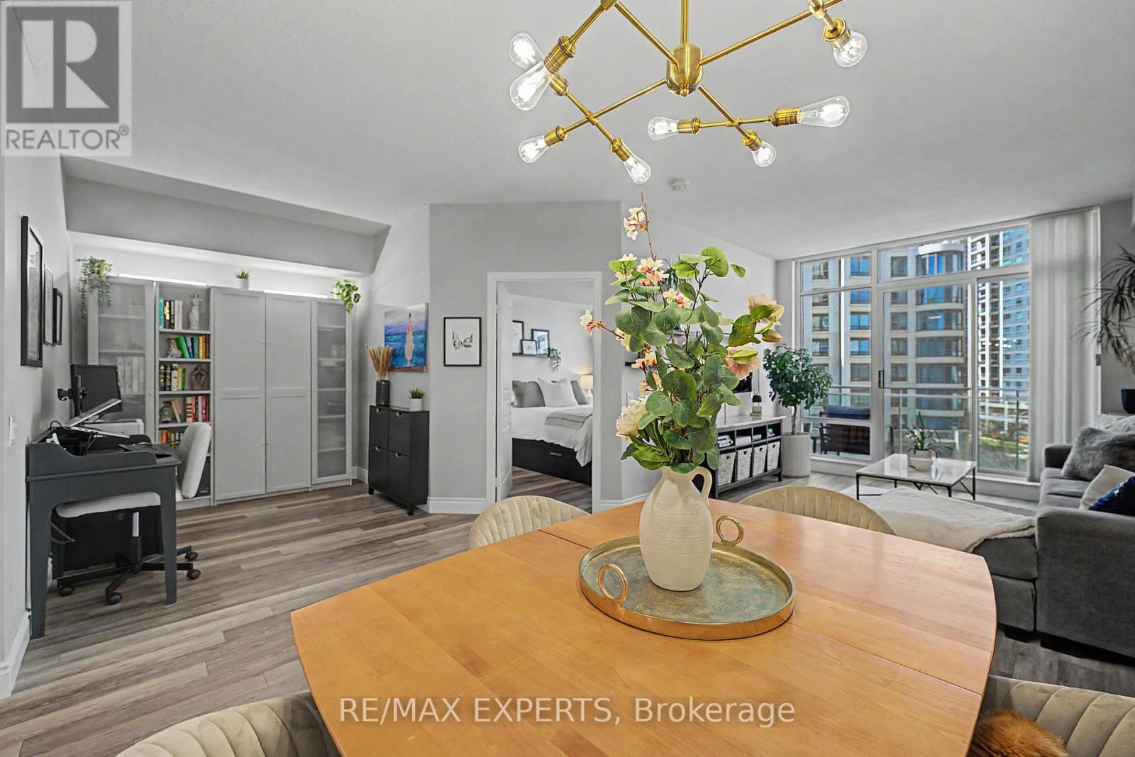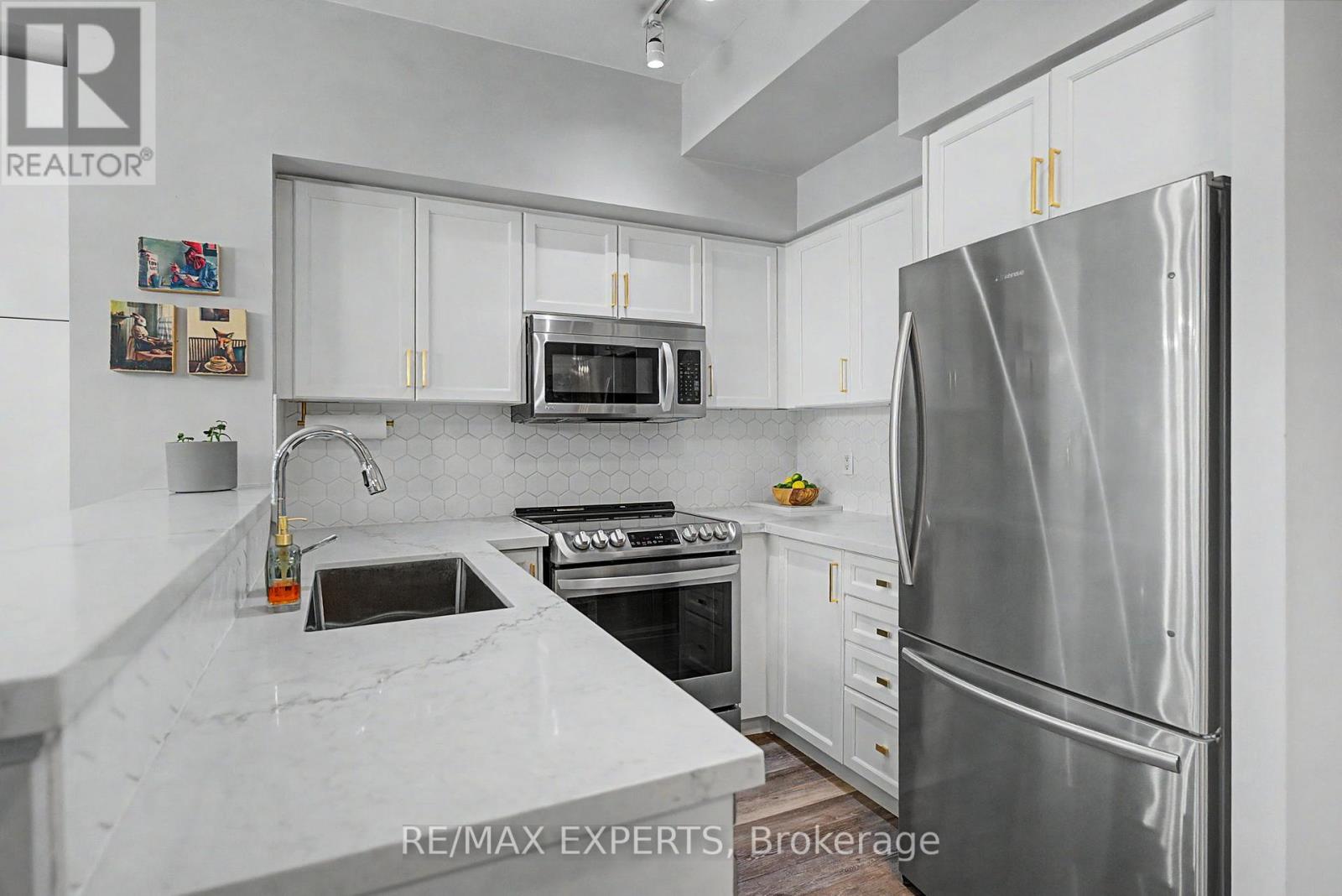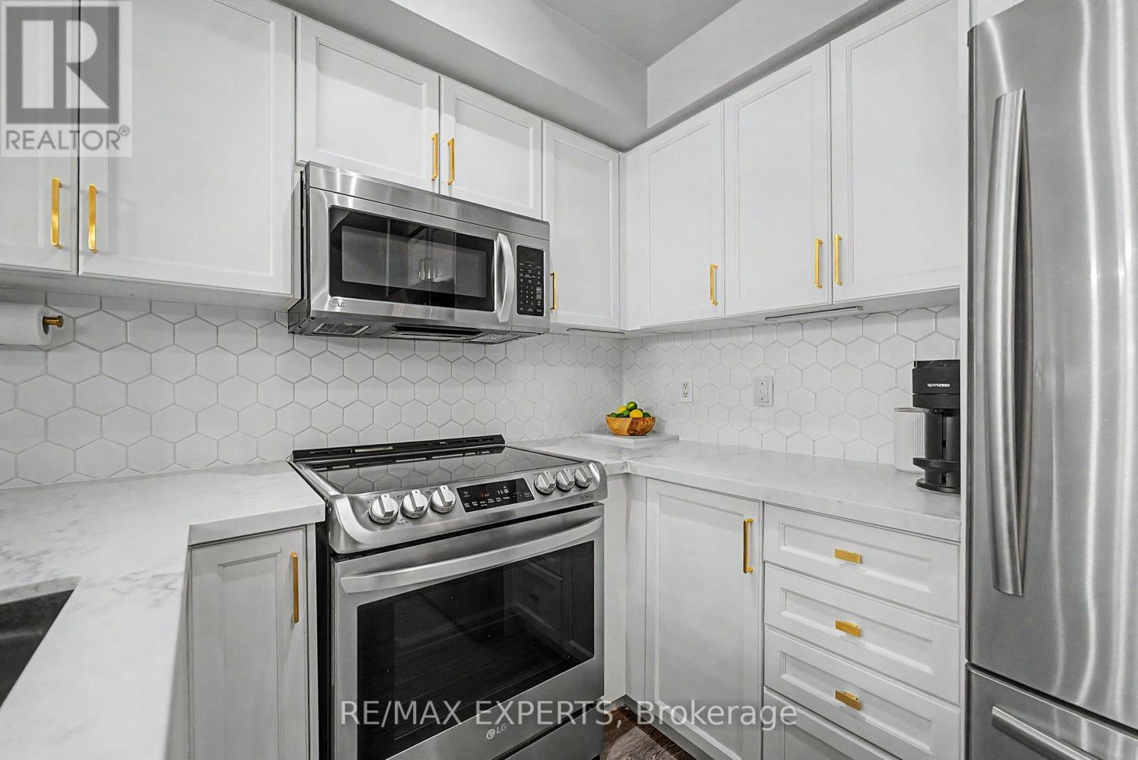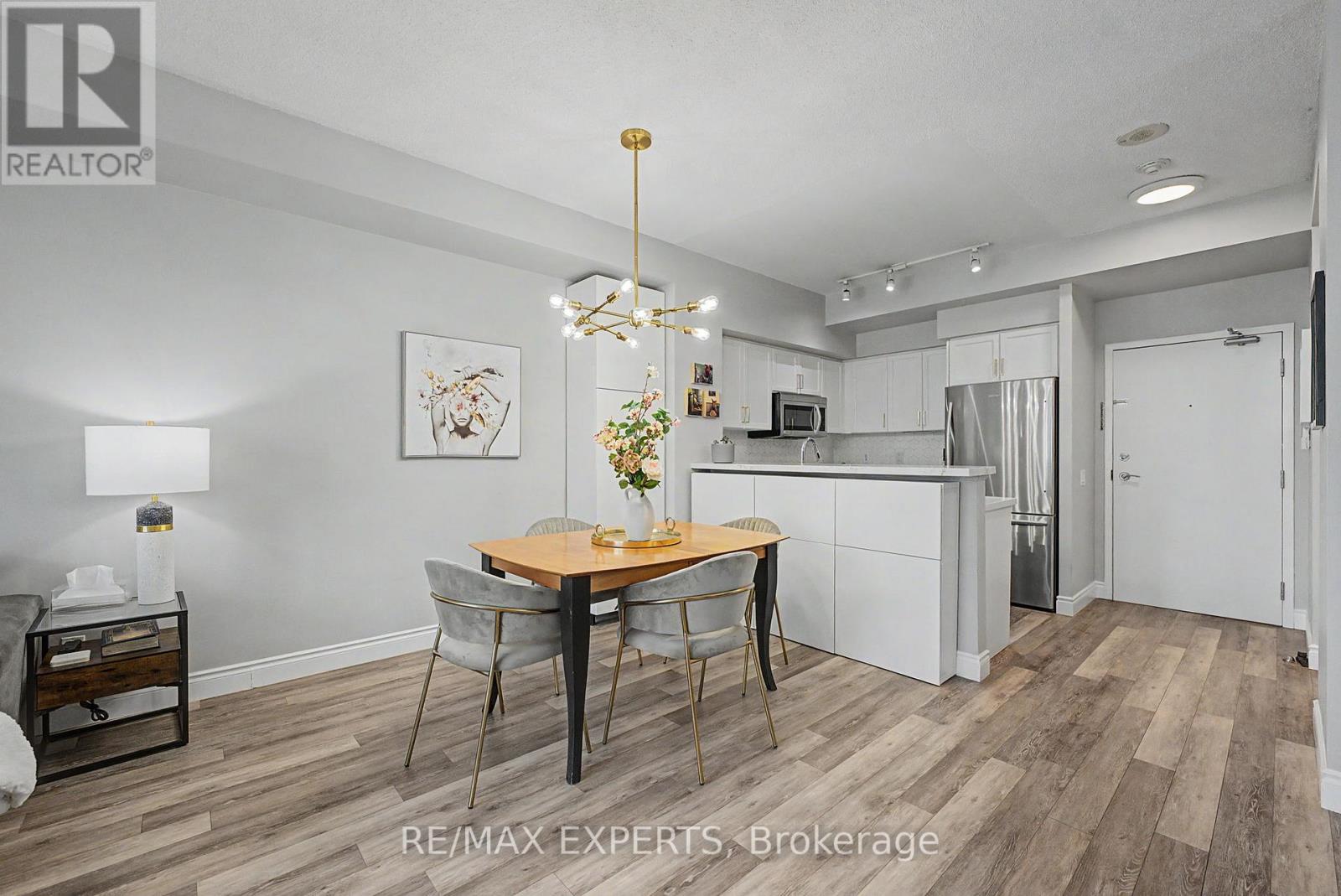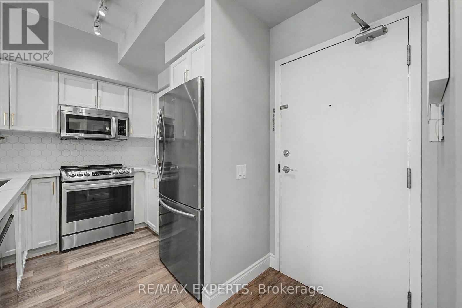 Welcome To Waterfront Living At Its Finest In The Heart Of Humber Bay Shores. This Beautifully Updated 1 Bedroom + Den, 1 Bathroom Suite At 5 Marine Parade Dr Offers A Peaceful Lakeside Lifestyle With Stunning Lake Views And A Bright, Functional Layout Perfect For End Users, Downsizers Or Professionals Seeking A Quiet Escape Minutes From The City. The Open Concept Living/Dining Area Flows Seamlessly With Luxury Laminate Flooring, Creating A Warm And Modern Feel Throughout. The Kitchen Features Professionally Painted Cabinetry, Quartz Countertops, Stainless Steel Appliances And A Clean Contemporary Finish. The Bathroom Has Also Been Enhanced With Quartz Countertops, Adding To The Suite's Polished Design. The Spacious Den Offers Excellent Flexibility For A Home Office, Reading Nook Or Guest Space. Major Updates Include Luxury Laminate Flooring, Quartz Counters In Kitchen & Bath, Stainless Steel Appliances, Professionally Painted Cabinets And A New HVAC Unit With Upgraded Ecobee Thermostat. Enjoy Morning Coffee Or Evening Sunsets With Lake Ontario As Your Backdrop. Steps To The Waterfront, Humber Bay Shores Park, Martin Goodman Trail, Cafes, Restaurants, Grocery, Transit, Parks And Scenic Walking/Biking Trails. Quick Access To The Gardiner, Lakeshore, Downtown Toronto, Mimico GO, TTC And The Best Of Etobicoke's Waterfront Community. A Rare Opportunity To Own A Serene Lakeside Suite With Urban Convenience At Your Doorstep. (id:4555)