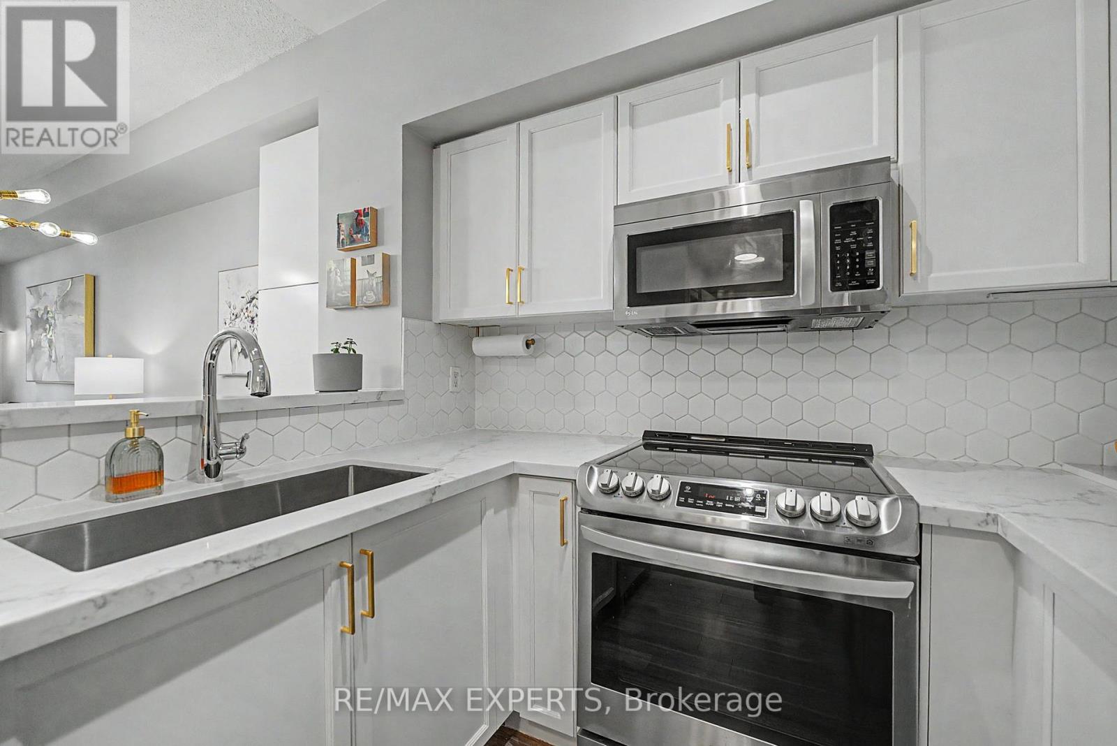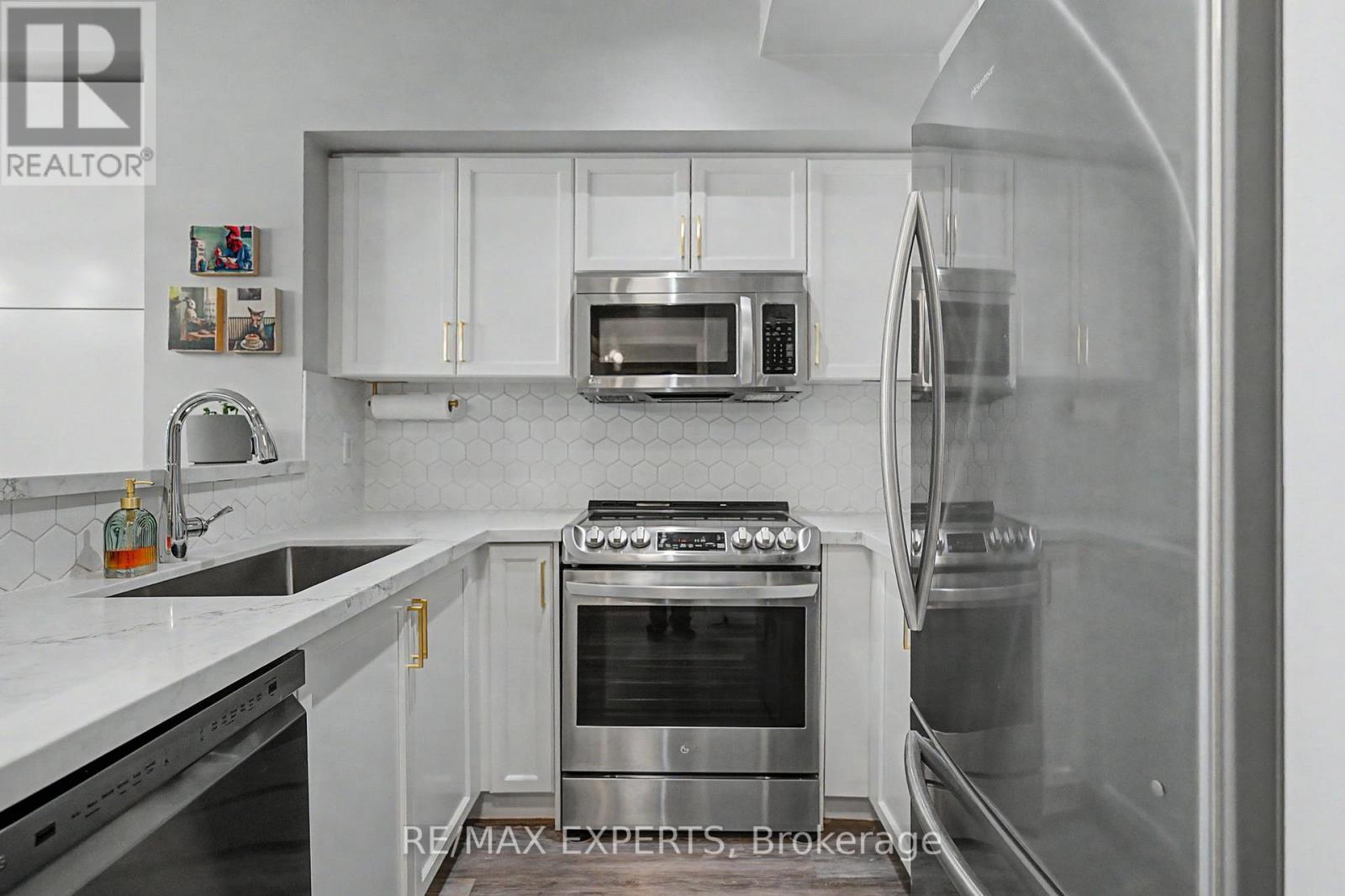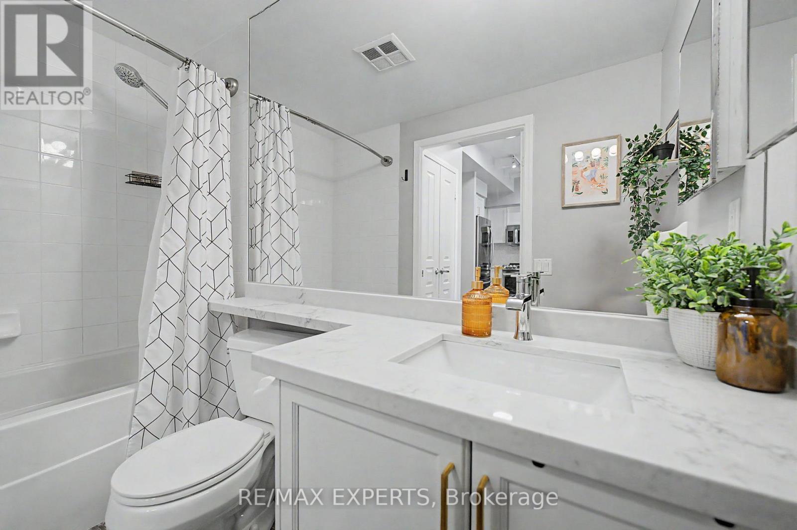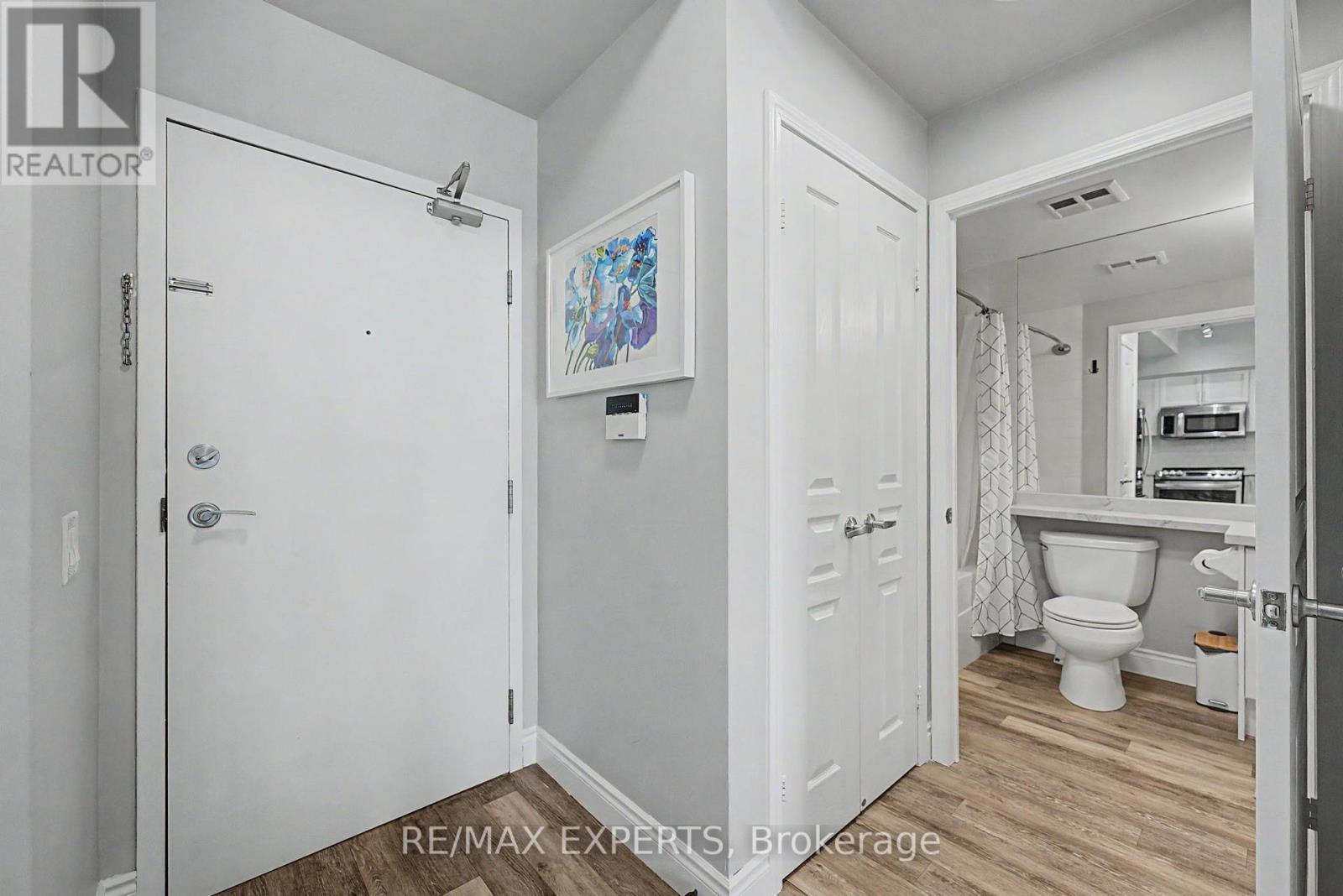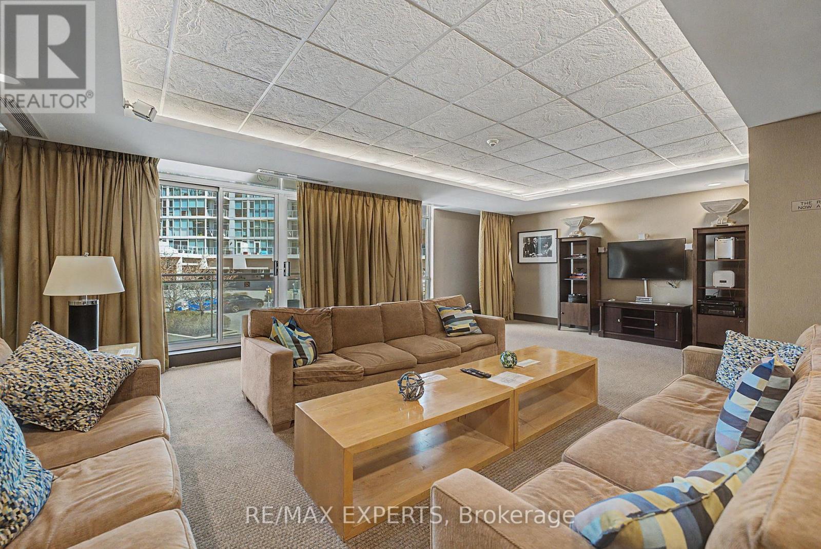Welcome To Waterfront Living At Its Finest In The Heart Of Humber Bay Shores. This Beautifully Updated 1 Bedroom + Den, 1 Bathroom Suite At 5 Marine Parade Dr Offers A Peaceful Lakeside Lifestyle With Stunning Lake Views And A Bright, Functional Layout Perfect For End Users, Downsizers Or Professionals Seeking A Quiet Escape Minutes From The City. The Open Concept Living/Dining Area Flows Seamlessly With Luxury Laminate Flooring, Creating A Warm And Modern Feel Throughout. The Kitchen Features Professionally Painted Cabinetry, Quartz Countertops, Stainless Steel Appliances And A Clean Contemporary Finish. The Bathroom Has Also Been Enhanced With Quartz Countertops, Adding To The Suite's Polished Design. The Spacious Den Offers Excellent Flexibility For A Home Office, Reading Nook Or Guest Space. Major Updates Include Luxury Laminate Flooring, Quartz Counters In Kitchen & Bath, Stainless Steel Appliances, Professionally Painted Cabinets And A New HVAC Unit With Upgraded Ecobee Thermostat. Enjoy Morning Coffee Or Evening Sunsets With Lake Ontario As Your Backdrop. Steps To The Waterfront, Humber Bay Shores Park, Martin Goodman Trail, Cafes, Restaurants, Grocery, Transit, Parks And Scenic Walking/Biking Trails. Quick Access To The Gardiner, Lakeshore, Downtown Toronto, Mimico GO, TTC And The Best Of Etobicoke's Waterfront Community. A Rare Opportunity To Own A Serene Lakeside Suite With Urban Convenience At Your Doorstep. (id:4555)