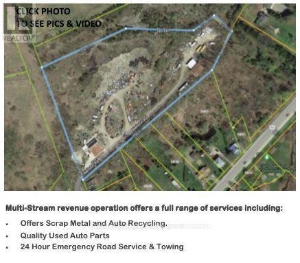 Family owned and operate 6.5 Acre home with potential for development or continue the recycling and salvage operation. This turnkey recycling business has been servicing Northumberland region since 1984. Property has 6.5 Acres with 3 buildings totaling approx 7,000 of covered sq ft, M1 Zoning (recycling uses) great opportunity for new home or automotive wrecking, salvage, auto repair, pound and towing users. Resdential home on property can be used as rental income or converted into office space. 100 ton weight scale, 5,000 lb indoor scale, Hitachi 220 excavator, 8000 lb forklift, 6000 lb forklift, 160 ton capacity scrap presser, 170 New Holland skid steer, Ford f-350 tow truck many more items included in retirement sale. **EXTRAS** Vendor will train and show trade secrets upon completion for 2 weeks. Sale of land 6.5 Acres with Multiple Structies. only recycling yard within 40-50 KM . Seller lives on property in the home. Do not approach property without appointment. (id:4555)