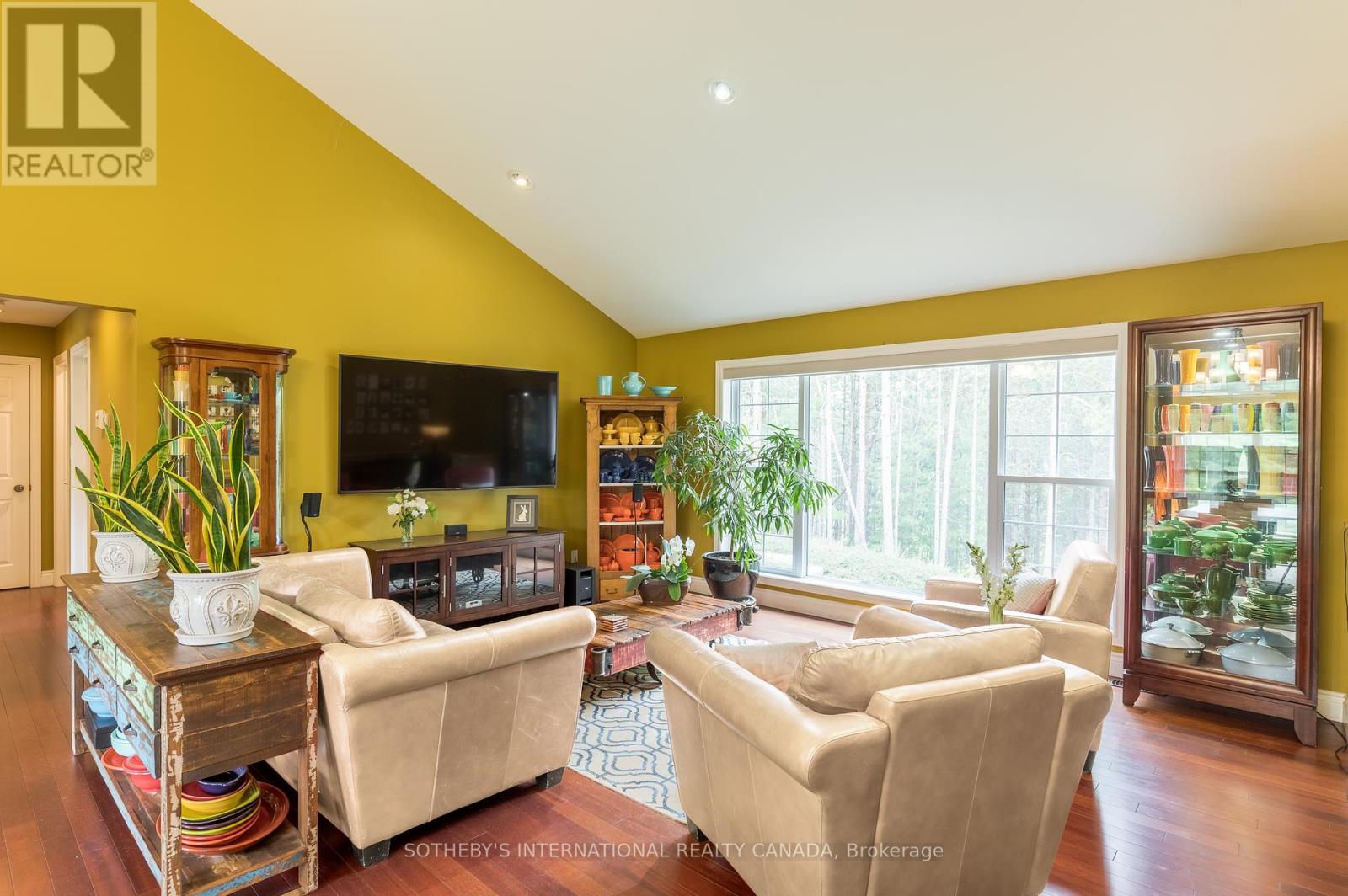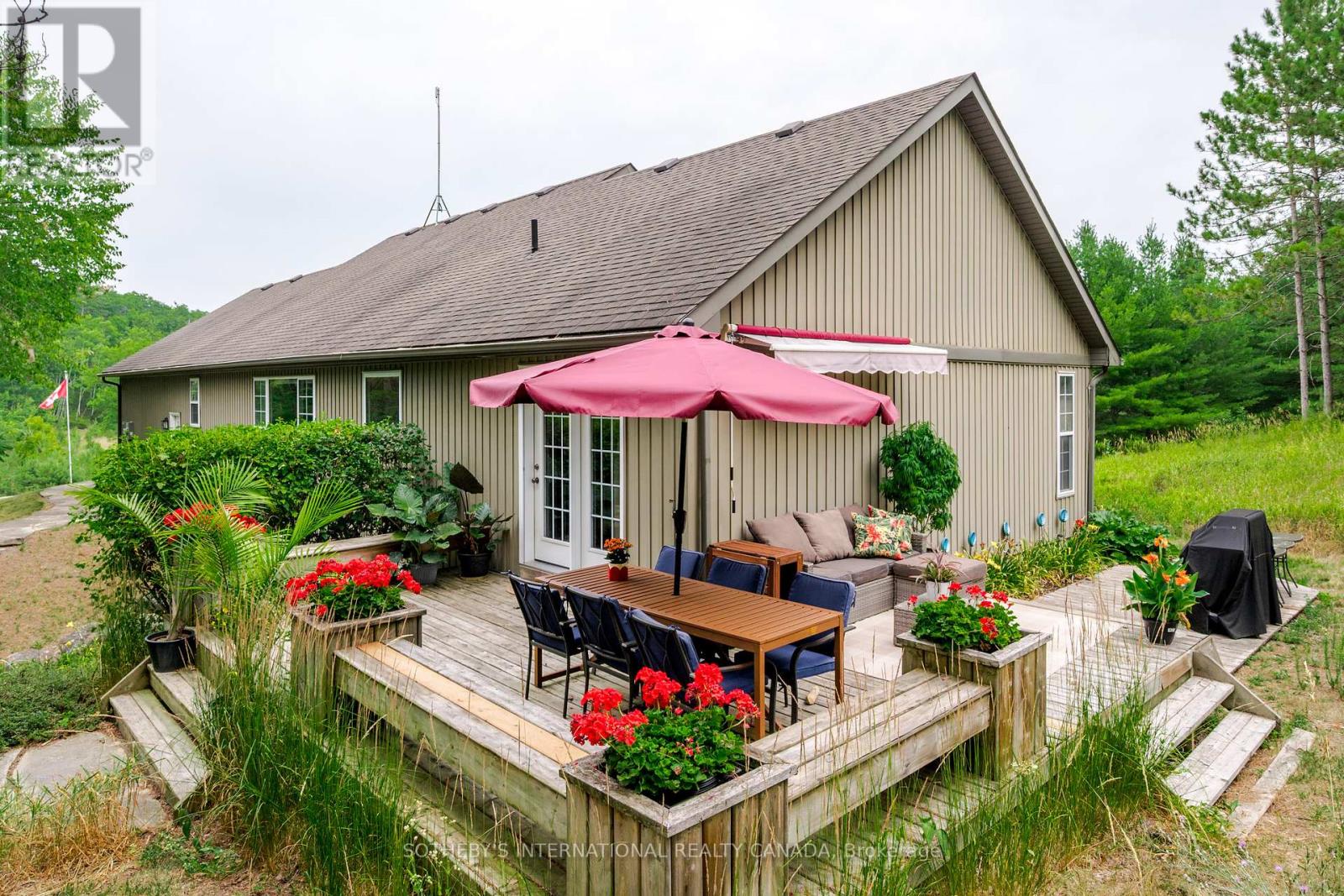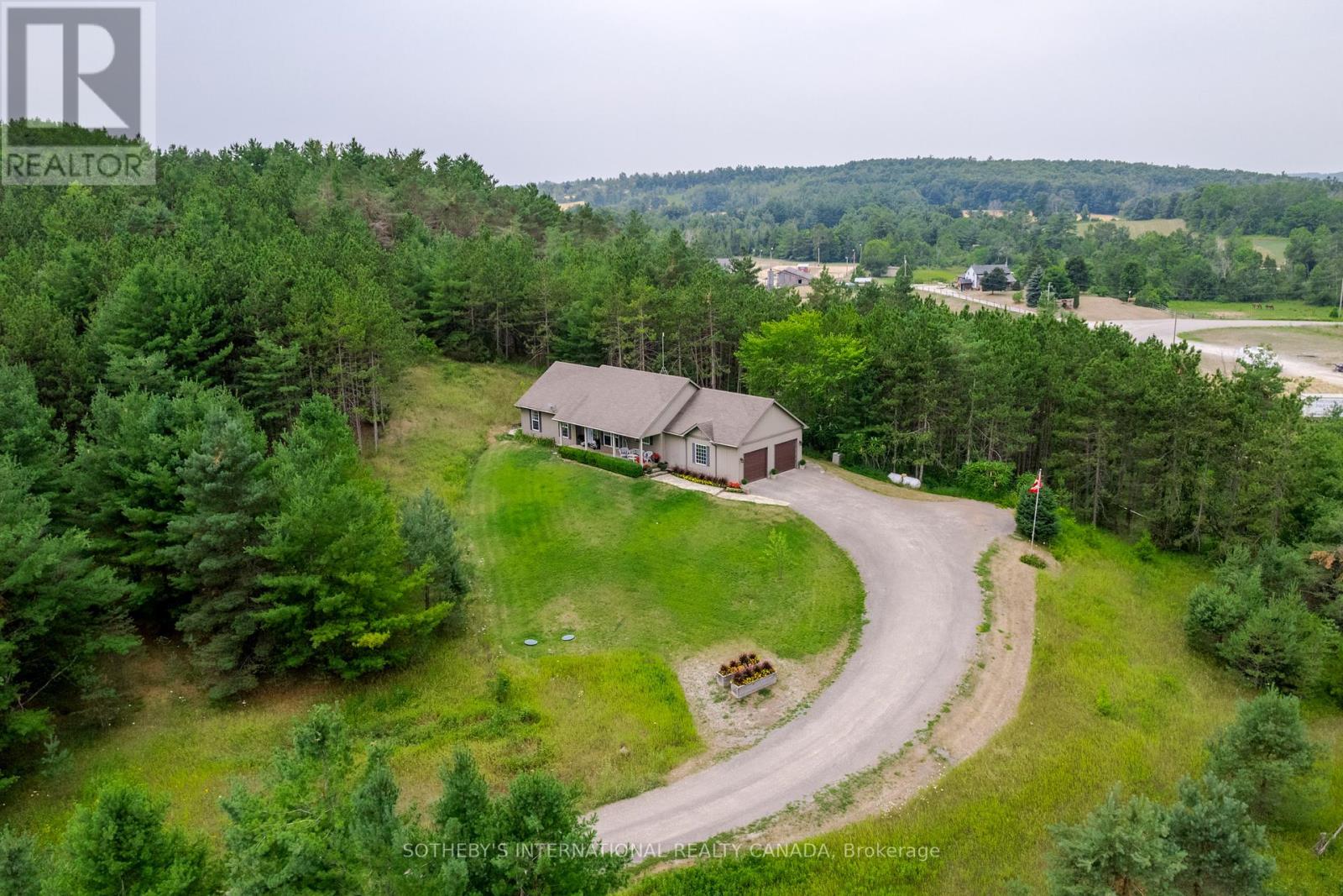 Combining the convenience of modern design with the allure of country living, this beautifully designed, quality-built custom bungalow with a lower level walk-out is situated on 6.7 private acres surrounded by pastoral and forest views, just outside the popular Village of Warkworth. Almost 3000 sq ft of living space, the home is ideal for families seeking space or for couples wanting a turnkey rural oasis. There's also potential for an in-law suite. The expansive open-plan living and dining room with soaring vaulted ceilings and oversized picture window draws in the forest views and invites natural light. The chef-ready kitchen features custom cabinetry, long granite countertops, stainless steel appliances - and can be cleverly closed off by frosted glass pocket doors. The large primary bedroom contains a spa-like ensuite with heated floor, soaker tub and separate shower along with a walk-out to the deck. Two extra bedrooms (or office), powder room and laundry complete the main floor, with interior access to the double garage. The lower level, with its heated floor, has a comfortable living area with direct access to stone walkways, attractively landscaped, leading to a sweeping sundeck - perfect for weekend relaxation or entertaining. There's also an extra guest room, office, 3-piece bathroom and utility/storage rooms. A fully integrated back-up generator ensures uninterrupted power. Pride of ownership is evident in this immaculate home. Minutes to Warkworth for shops, cafes, restaurants, galleries and golf. A short drive to Campbellford for hospital and full services. 30 minutes to Cobourg for VIA Rail and about 90 minutes to Toronto. Experience the Magic of Warkworth! (id:4555)