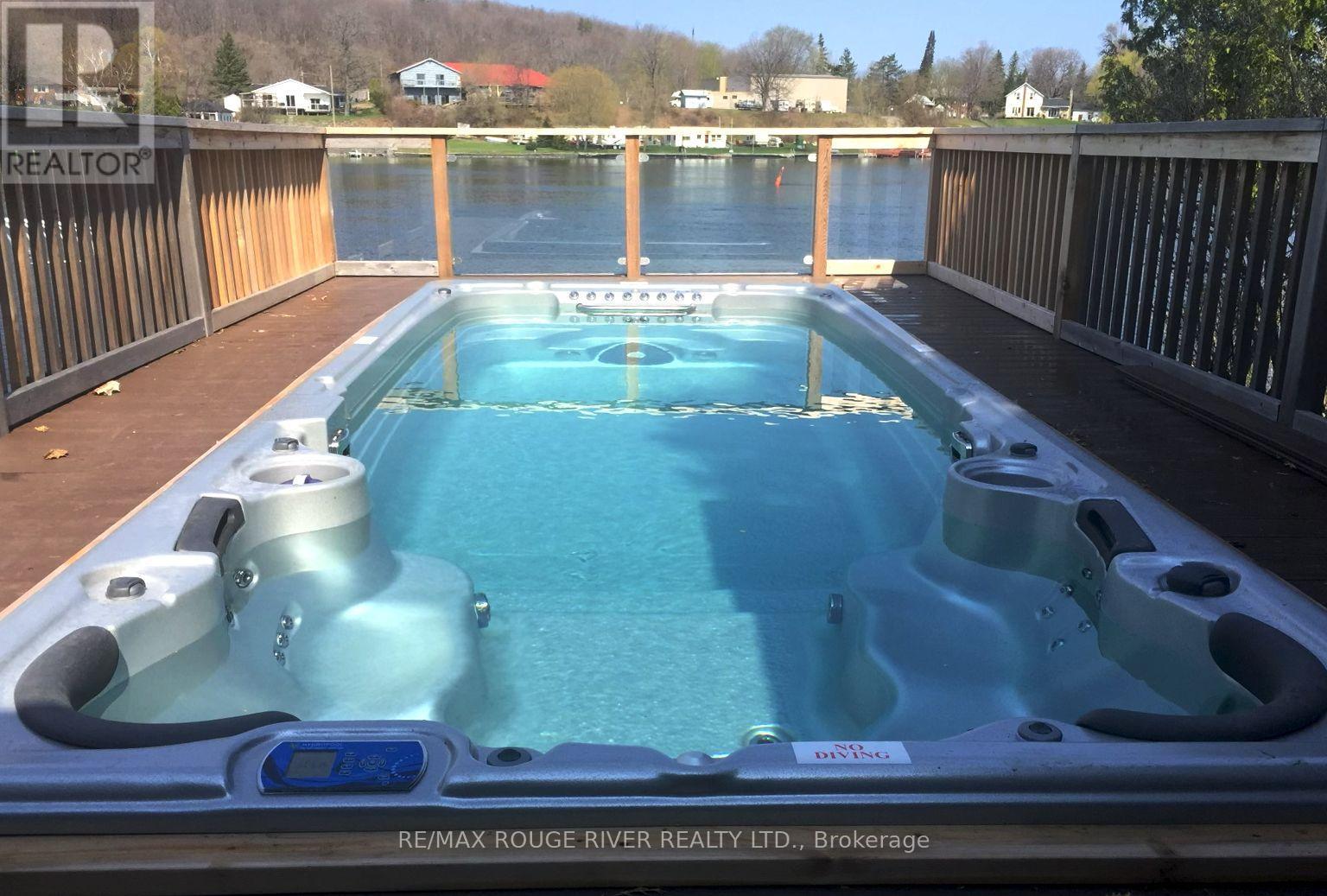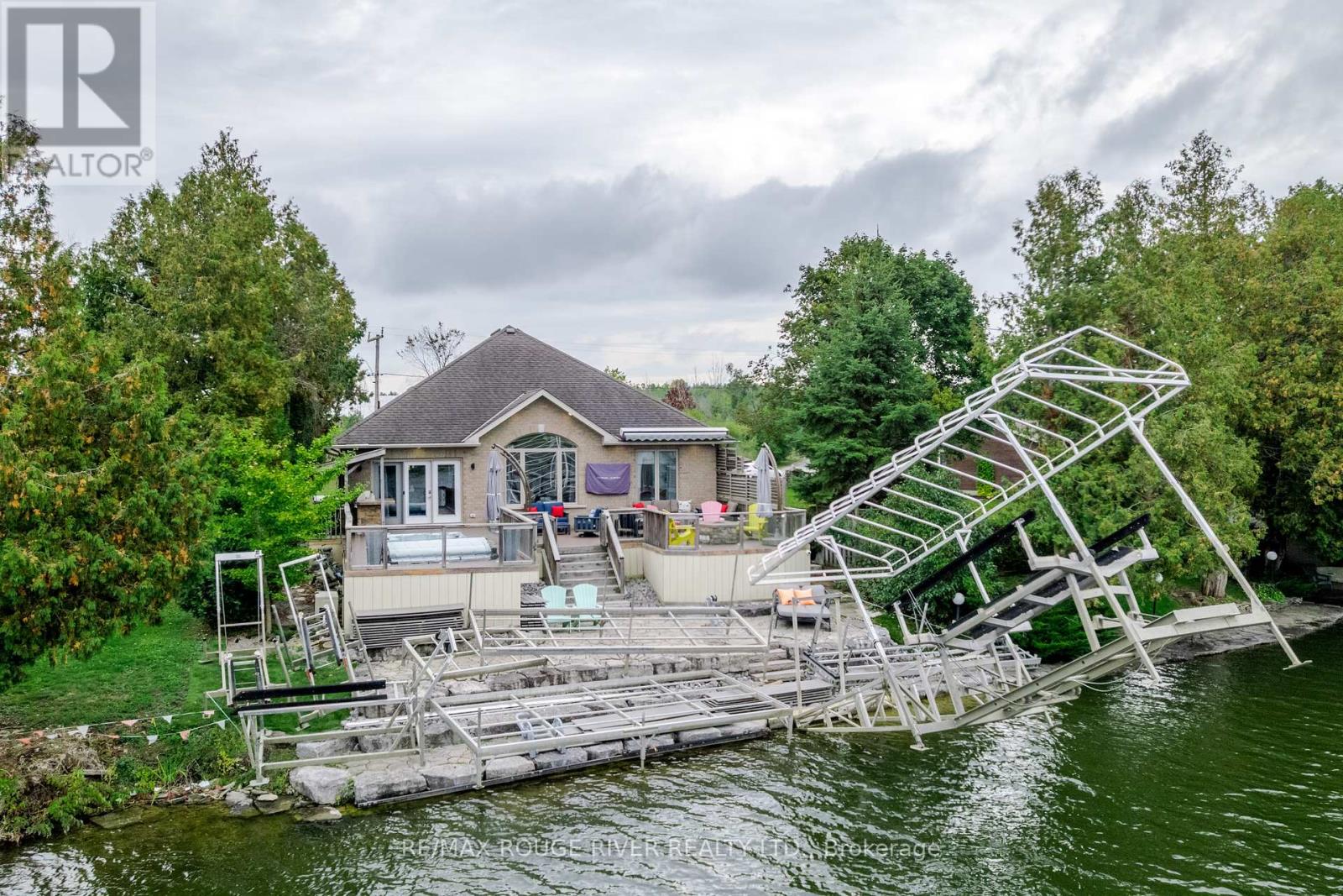 Waterfront living on municipal services - best of both worlds! Beautifully maintained & upgraded 2008 Brick/Stone bungalow on the Trent River, enjoy miles & miles of lock free boating on the Trent Severn Waterway between Hastings & Peterborough and some of the most sought after fishing areas on the TSW! This thoughtfully designed property is super low maintenance allowing you more time to enjoy boating/swimming/fishing/water sports & the many amenities nearby - hop on the Trans Canada Trail or head over to Hastings Field House around the corner for a workout, tennis +++. Extra large deck overlooking the water features a built in firepit table, built in motorized awning, built in BBQ, as well as a large SwimSpa - perfect for swimming in the summer or relaxing use as a hot tub in the winter. Enjoy the sunsets or watch the game on your outdoor TV as well! Aluminum dock, armour stone at the shoreline, stone patio, trex deck surface, and stunning roadside landscaping as well with beautiful pavers, armour stone & artificial grass, exterior soffit lighting all the way around the home - no detail overlooked! Inside you'll find a spacious foyer, large kitchen with island, formal dining area, great room with vaulted ceiling with potlights - all designed to maximize water views. Spacious primary bedroom with ensuite & walk-in closet as well as a large second bedroom, 2 full baths, the convenient laundry/mud room goes through to the garage where you'll even find an EV Charger already installed! Clean insulated concrete crawl space for extra storage/utility. Forced air natural gas furnace, central air, central vac. Gorgeous home & property offering a relaxing lifestyle with all amenities right there and super easy Hwy access! (id:4555)