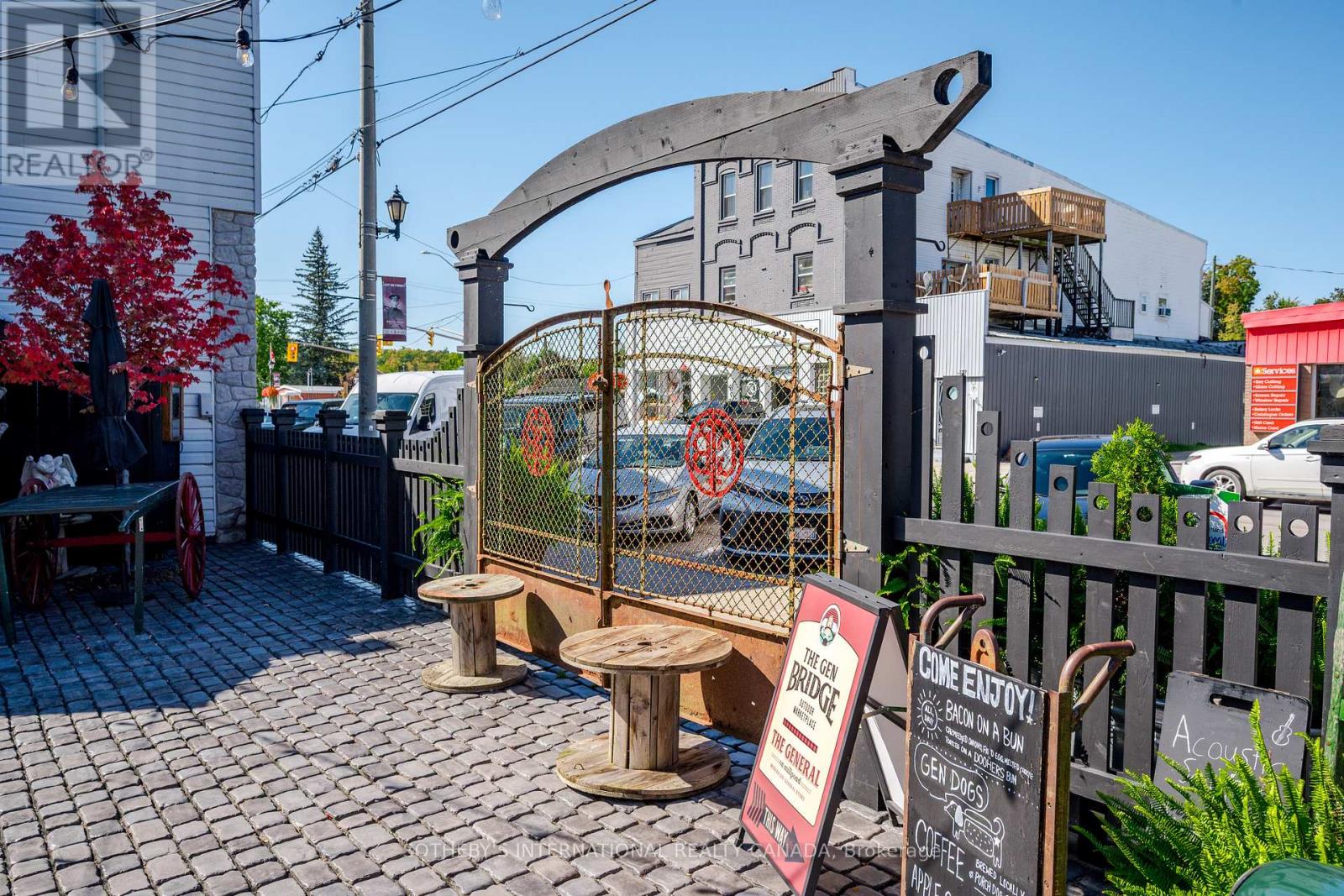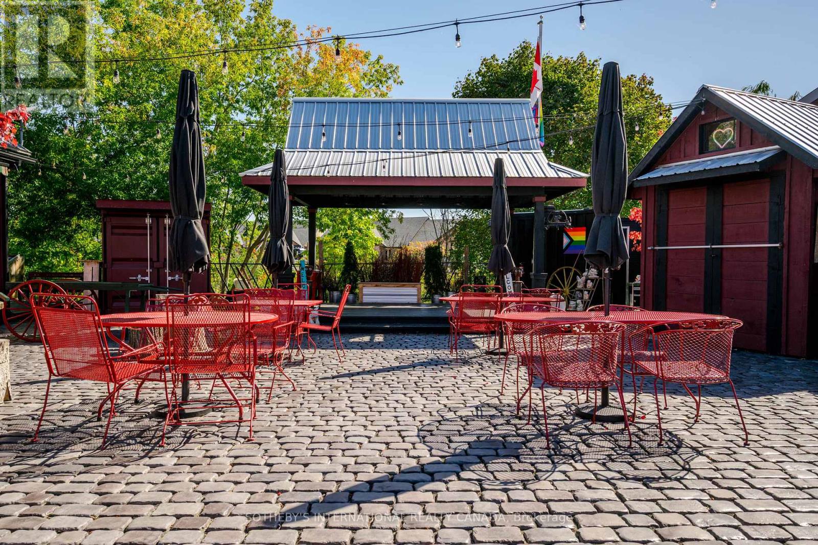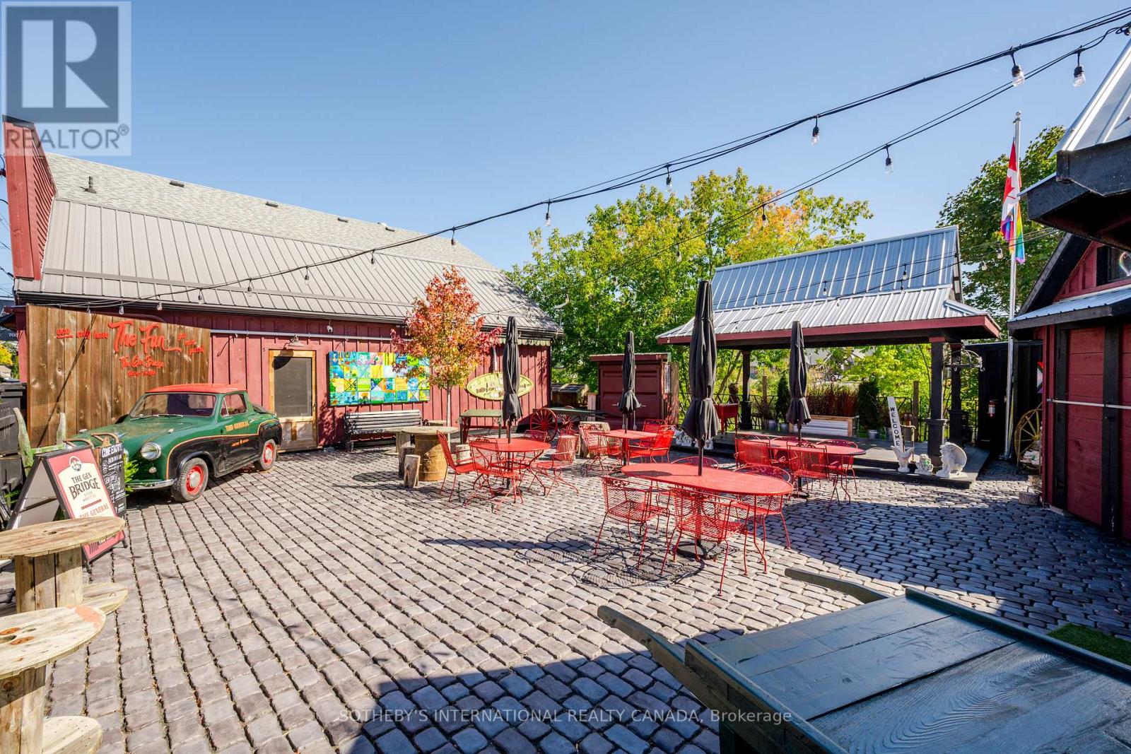 Owners Retiring! Unique commercial waterfront property ideal for multiple uses located in a prime location in the heart of the thriving Village of Hastings in beautiful Trent Hills. Currently an established and popular retail store with an amazing large cobblestone terrace fronted by antique iron gates (perfect for events!) and containing a raised, covered gazebo; 3 sheds (for additional merchandise); and a luxury outdoor heated washroom trailer. The building has been thoroughly updated maintaining many original features and can be expanded. Plenty of street parking available. Backing onto Mill Pond - part of the Trent Water System, and within walking distance to the municipal Hastings Marina. Approximately 1.5 hours from Toronto and 30 minutes from Cobourg or Peterborough and 10 minutes from Warkworth. The area is noted for restaurants, golfing, boating, fishing and swimming. A great opportunity for those looking to relocate or open their business in a desirable and developing area. NOTE: Buyers must perform their own "due diligence" with regard to all facets and aspects of the property, building and land, their intended use, feasibility of the site, financing, permitted uses and zoning. (id:4555)