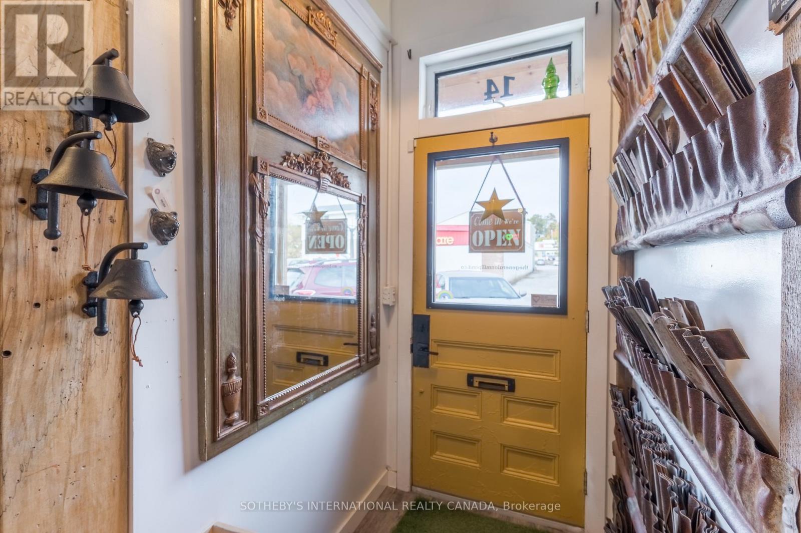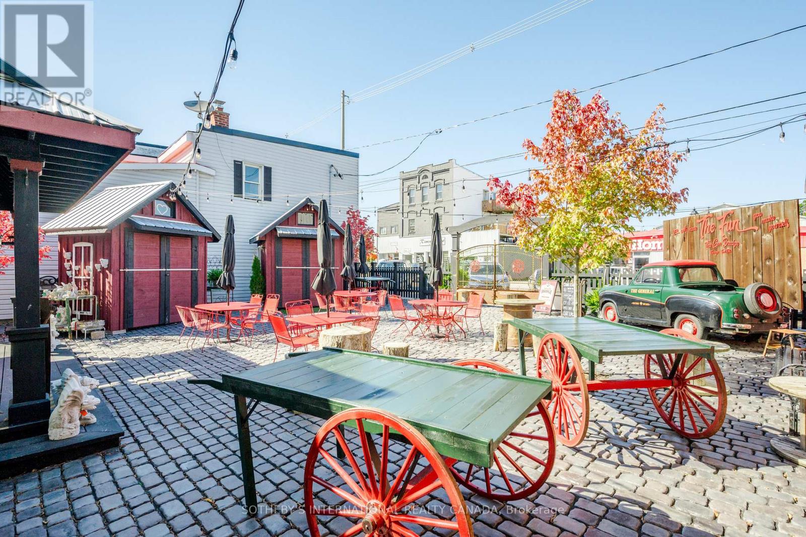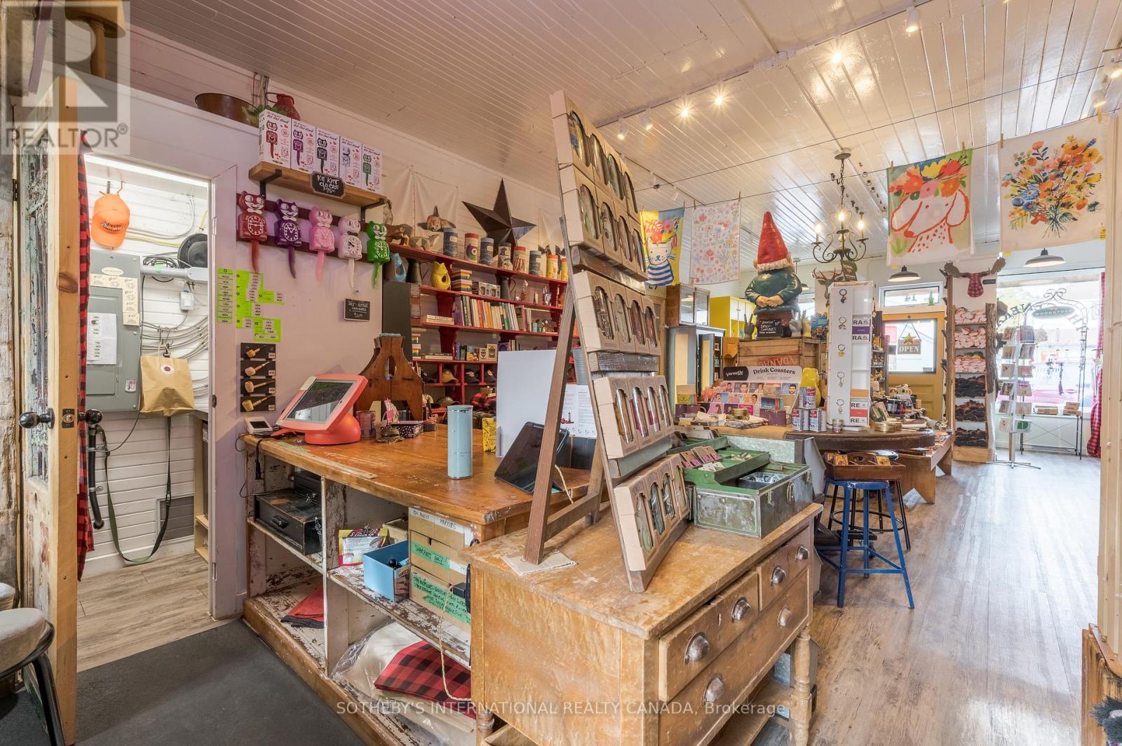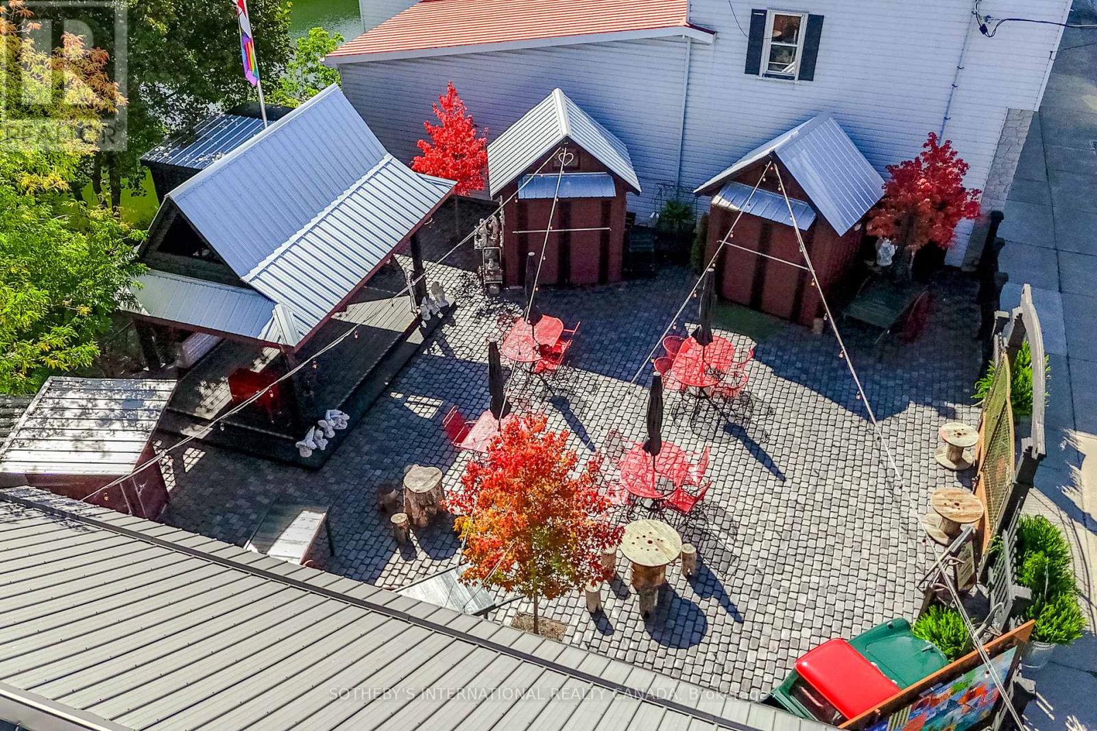 Owners Retiring! Unique commercial waterfront property ideal for multiple uses located in a prime location in the heart of the thriving Village of Hastings in beautiful Trent Hills. Currently an established and popular retail store with an amazing large cobblestone terrace fronted by antique iron gates (perfect for events!) and containing a raised, covered gazebo; 3 sheds (for additional merchandise); and a luxury outdoor heated washroom trailer. The building has been thoroughly updated maintaining many original features and can be expanded. Plenty of street parking available. Backing onto Mill Pond - part of the Trent Water System, and within walking distance to the municipal Hastings Marina. Approximately 1.5 hours from Toronto and 30 minutes from Cobourg or Peterborough and 10 minutes from Warkworth. The area is noted for restaurants, golfing, boating, fishing and swimming. A great opportunity for those looking to relocate or open their business in a desirable and developing area. NOTE: Buyers must perform their own "due diligence" with regard to all facets and aspects of the property, building and land, their intended use, feasibility of the site, financing, permitted uses and zoning. (id:4555)