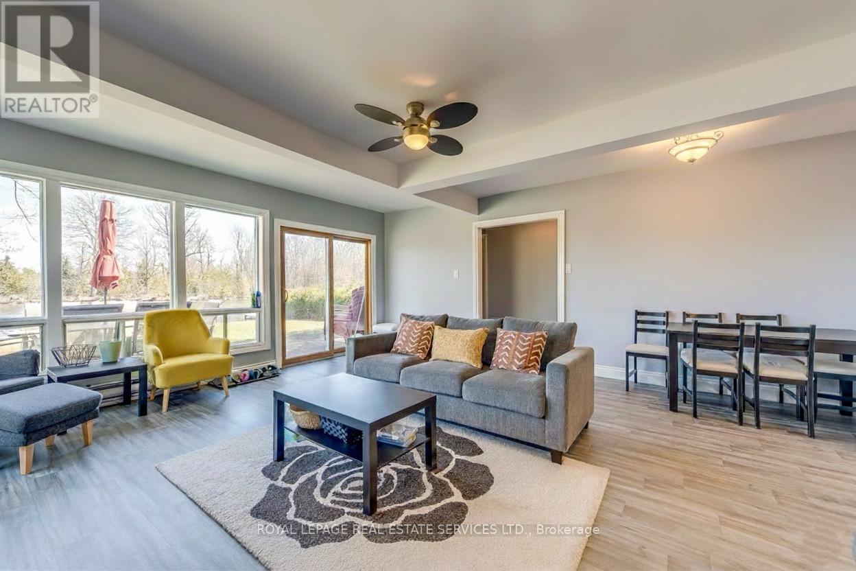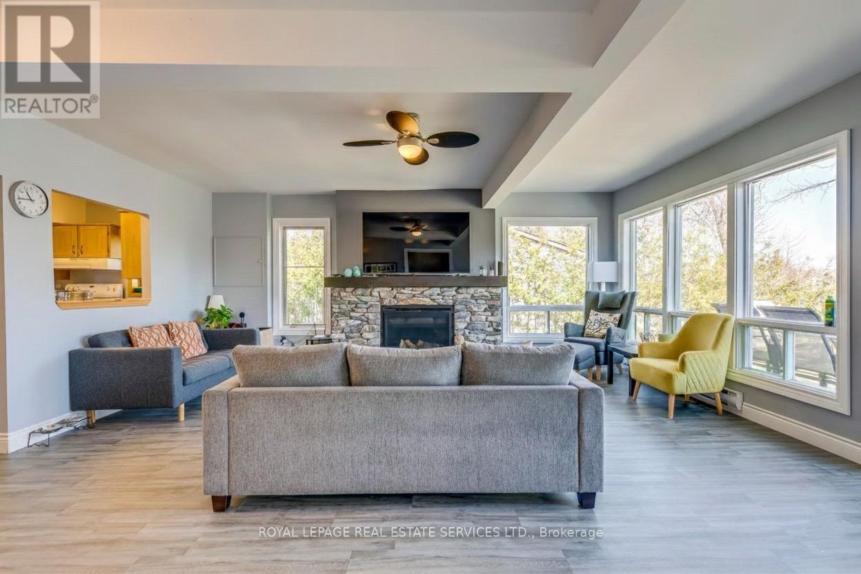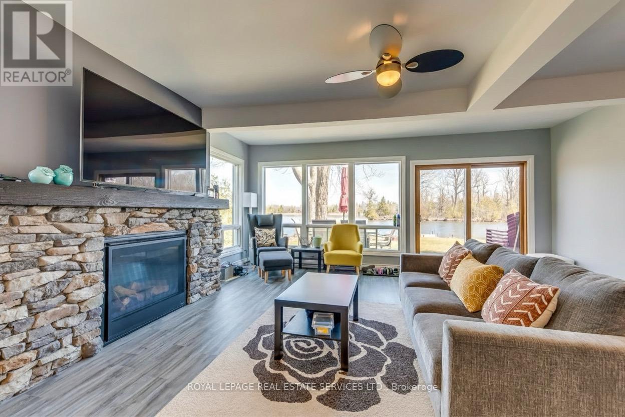 Amazing 4 season cottage with 3 bdrm + den, 2 bath. Bright and Open Dining and Living area with sliding glass doors to the lakeside deck. Enjoy expansive views of the water while relaxing each night by the comfort of the beautifully constructed propane fireplace. Kitchen offers Oak cupboards, dishwasher, double sink, fridge & stove. Baseboard electric heaters keep the cottage cozy & warm all year round.. Fully winterized. Drilled well & holding tank. Detached single car garage and 2 car parking out back. Strong WiFi & cell phone capabilities.50 feet of shoreline along the Trent Severn Waterway offering excellent kayaking, canoeing, swimming, fishing & boating. Very nice level lot with mature trees & privacy hedges along a municipally maintained road with garbage & recycling pick-up. A turn-key Waterfront Property You don't want to Miss! (id:4555)